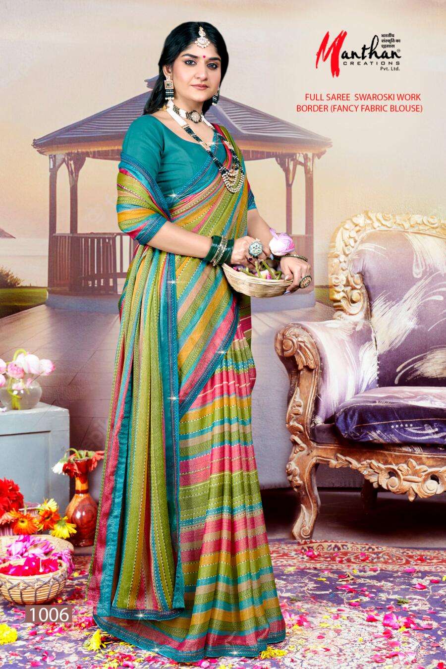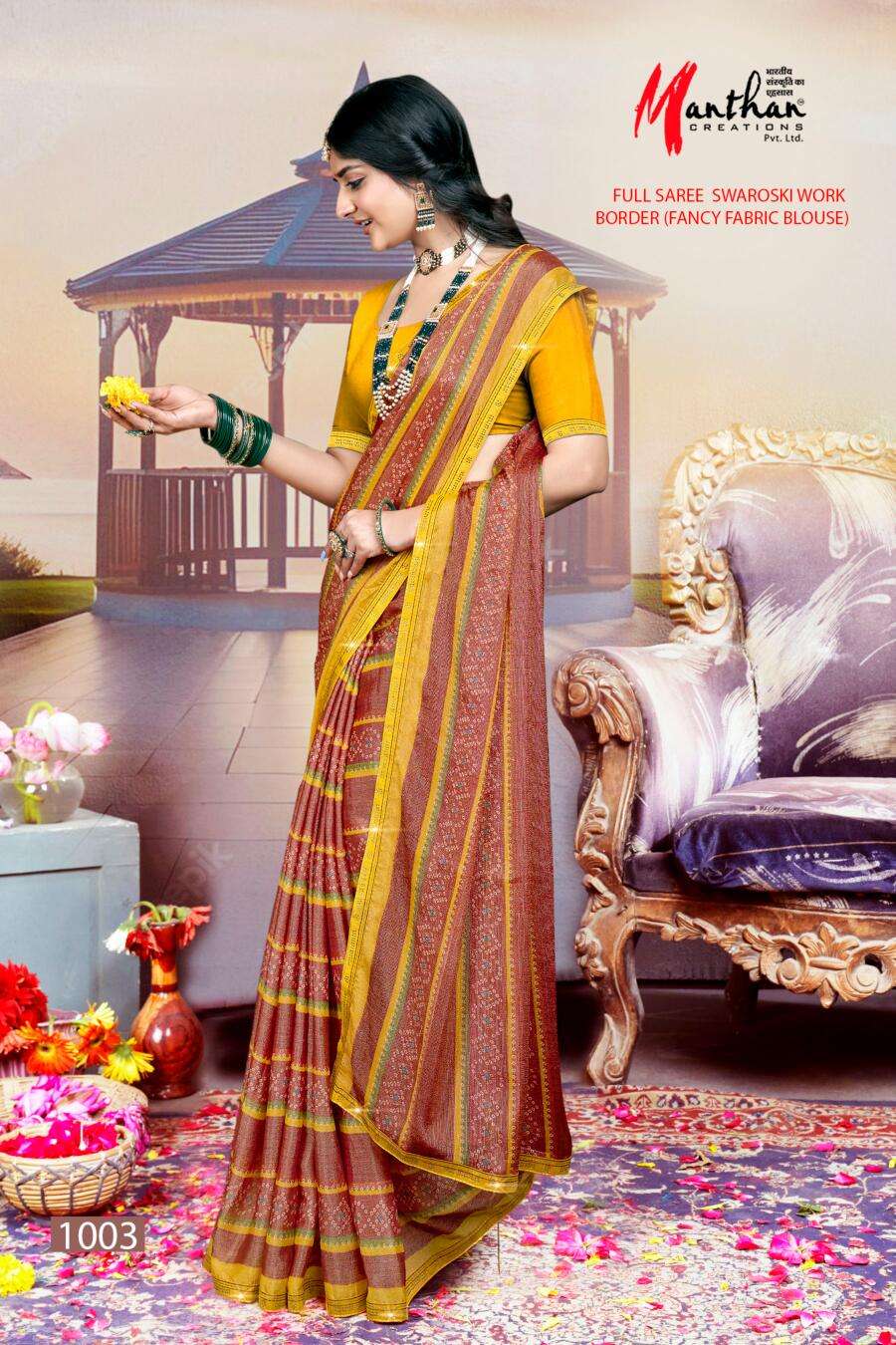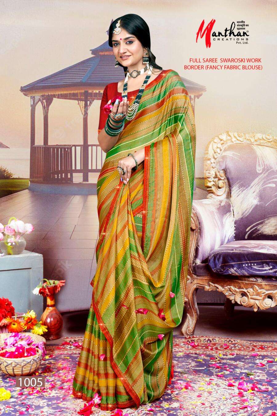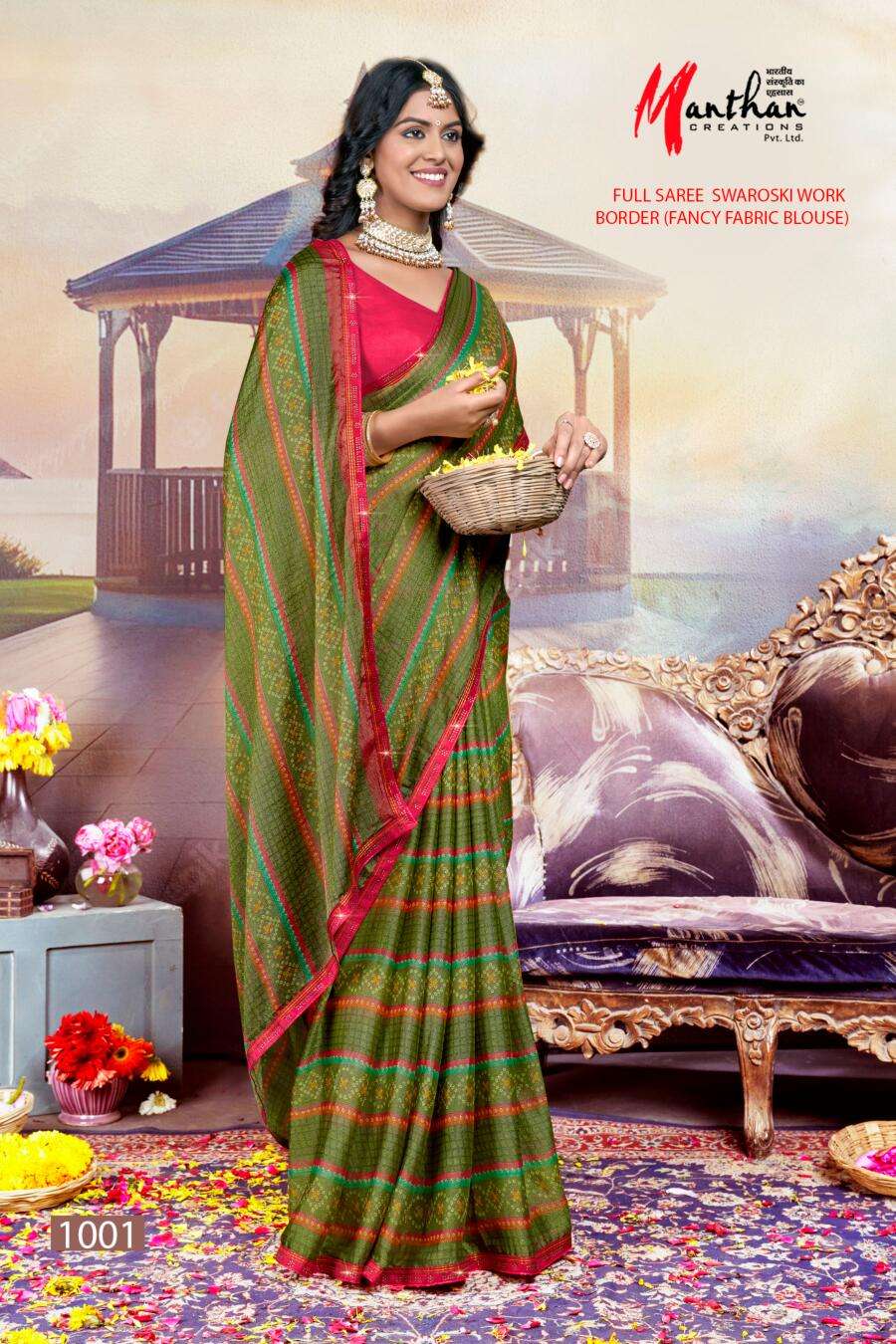 manthan creation anandi beautiful chiffon brasso casual wear sarees supplier