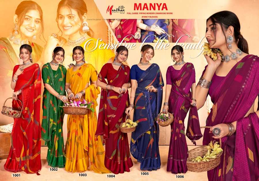 manthan creation manya beautiful georgette saree with fancy blouse trader