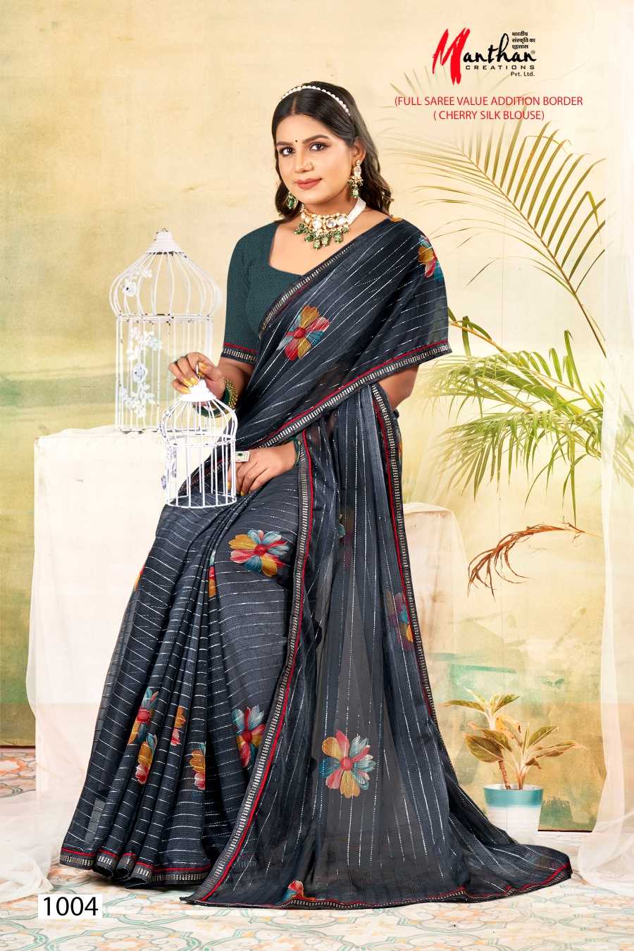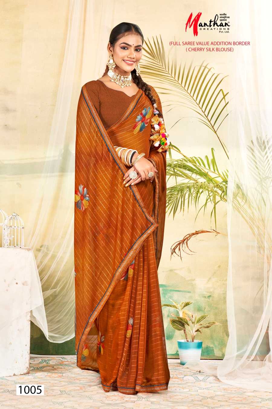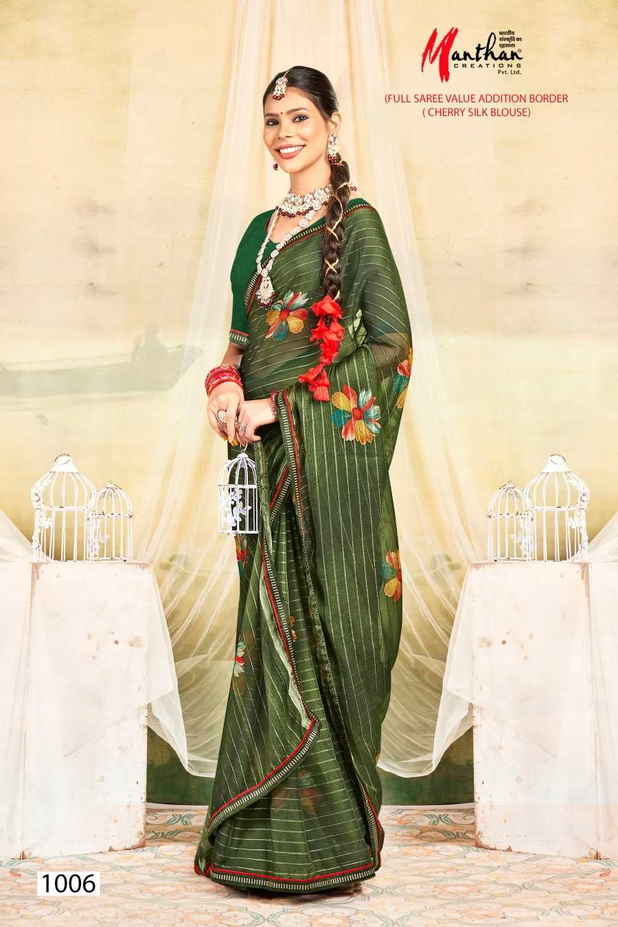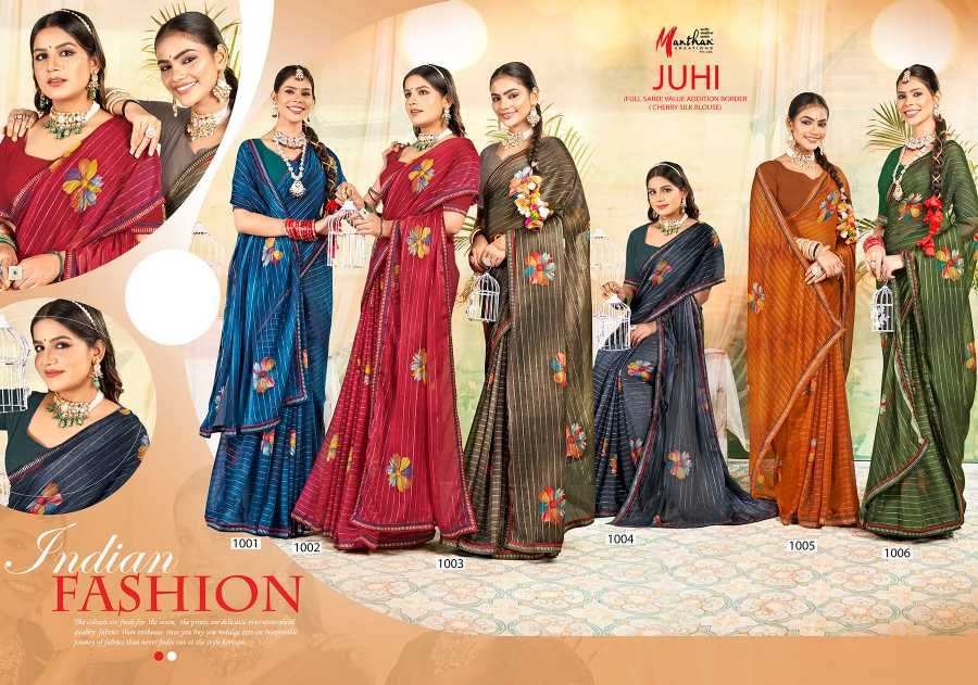 manthan juhi 1001-1006 regular wear fancy saree catalog