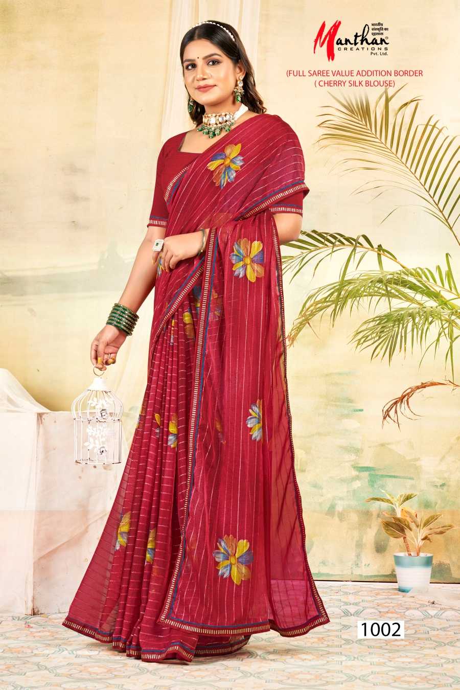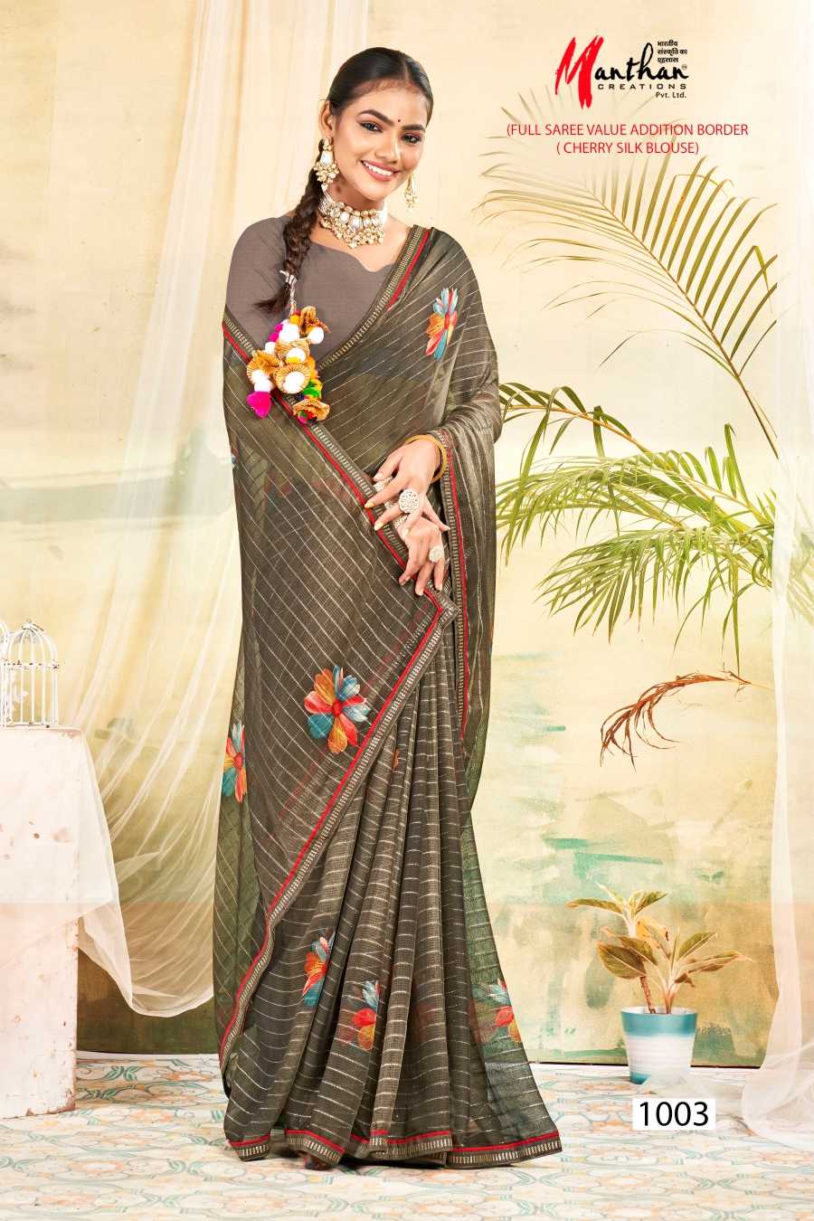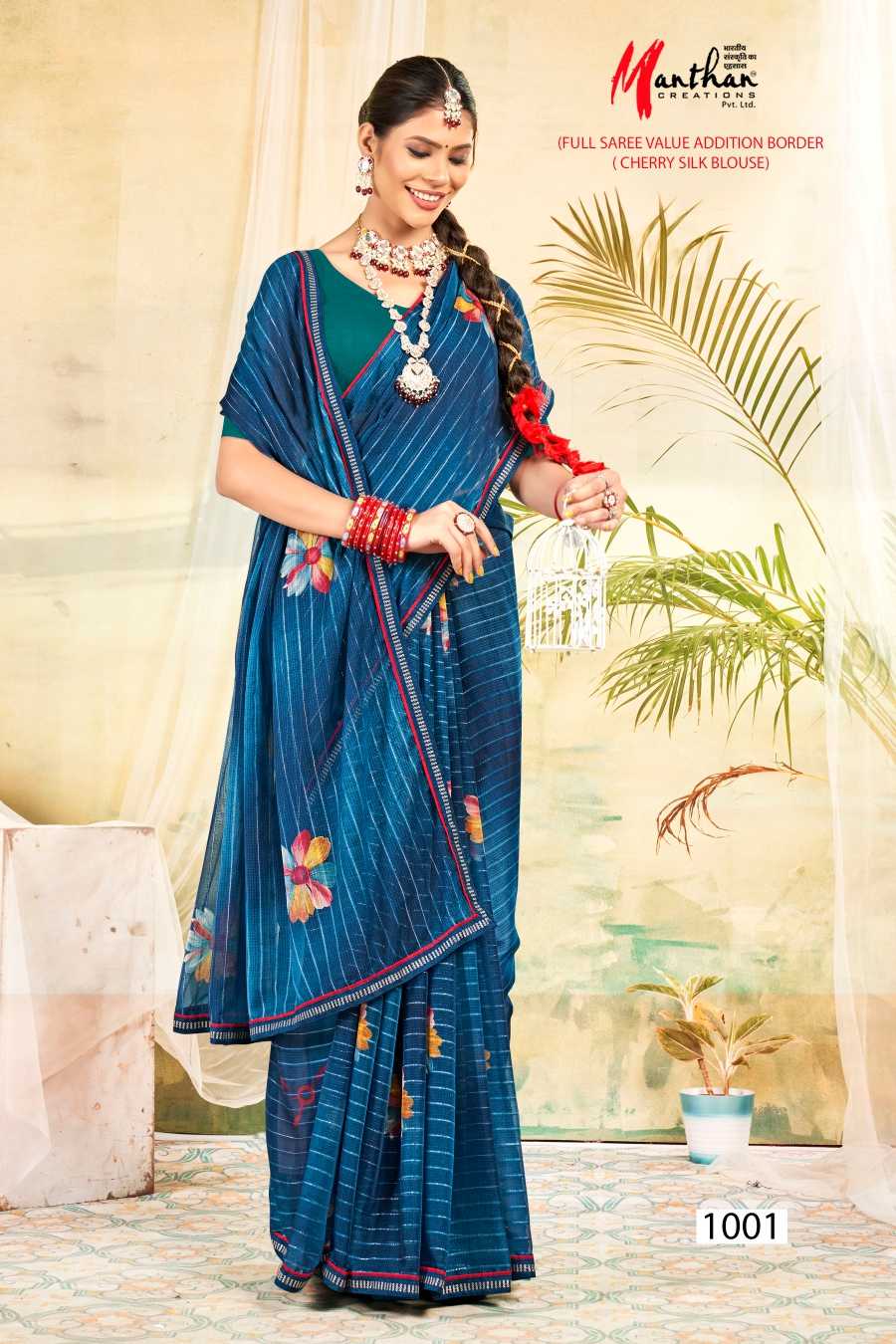 manthan juhi 1001-1006 regular wear fancy saree catalog