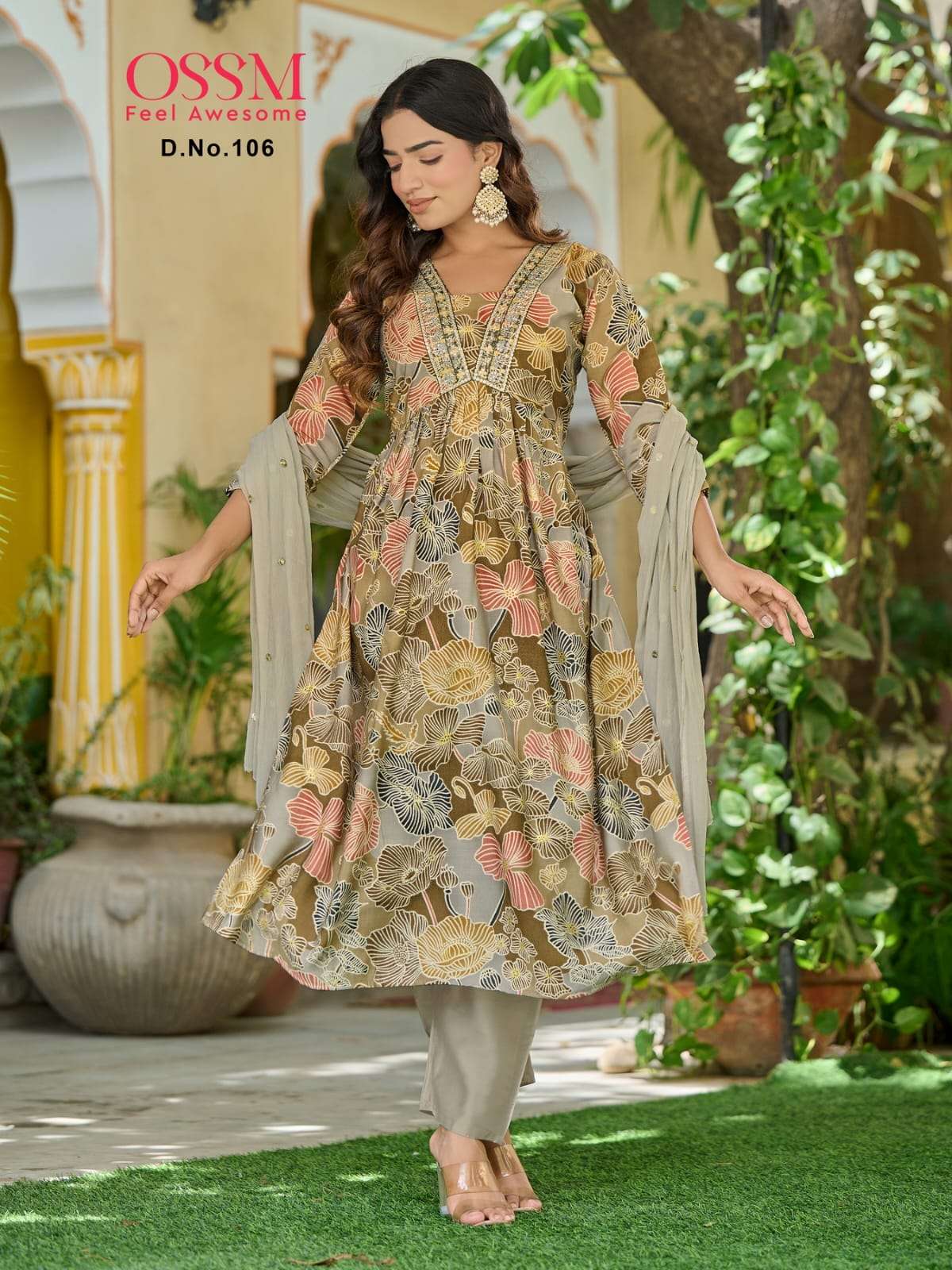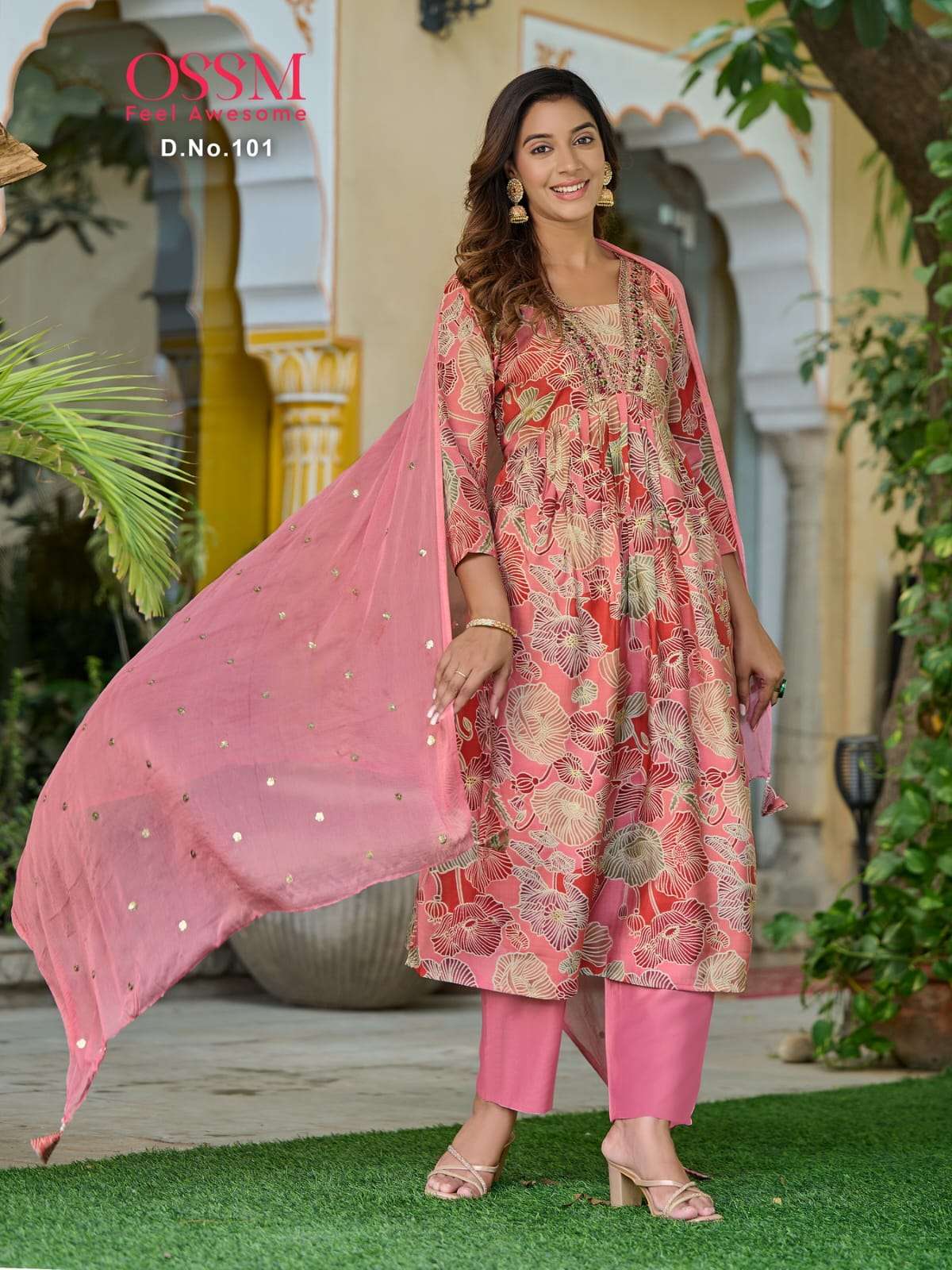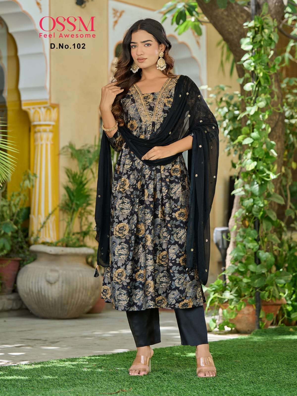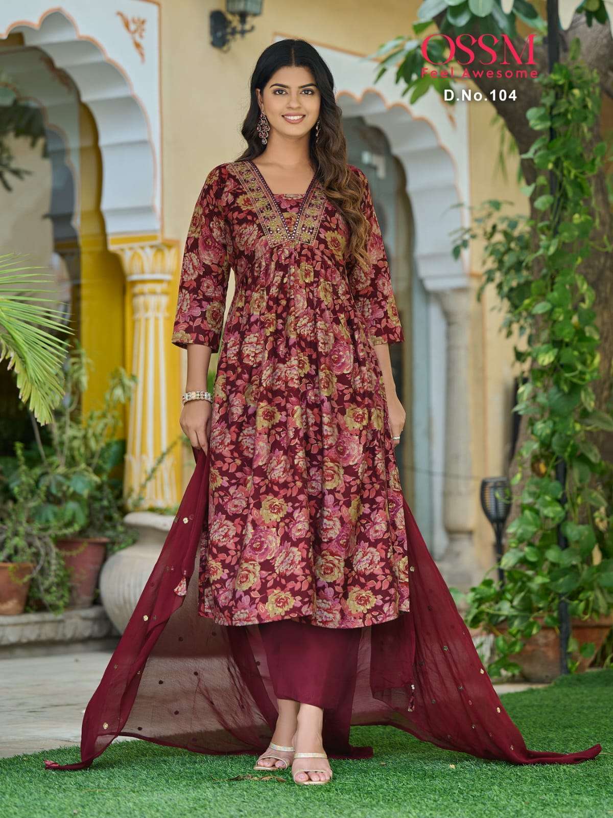 OSSM Catalouge : 💃 MANTRA 💃 ALIA V neck Collection Fabric in Top : Premium Chanderi Modal Foil Print Sleeves type : 3/4th Rate : 925 + GST 5%