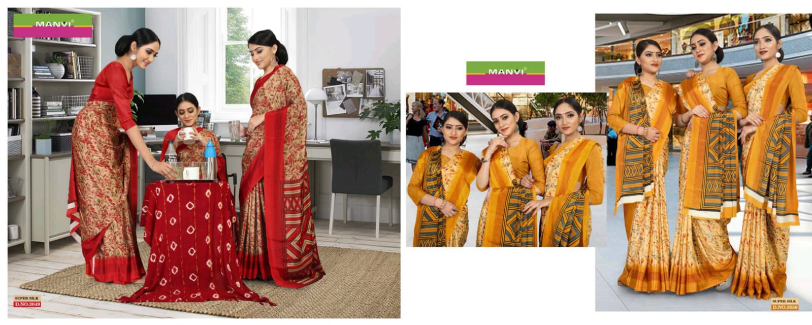 MANVI UNIFORM SPECIAL SUPER SILK VOL 30 SERIES ~ 3025-3050 Catalog 26 PC TURKEY SILK CUT - 6.00 APRO RATE ~ 340/-₹ |