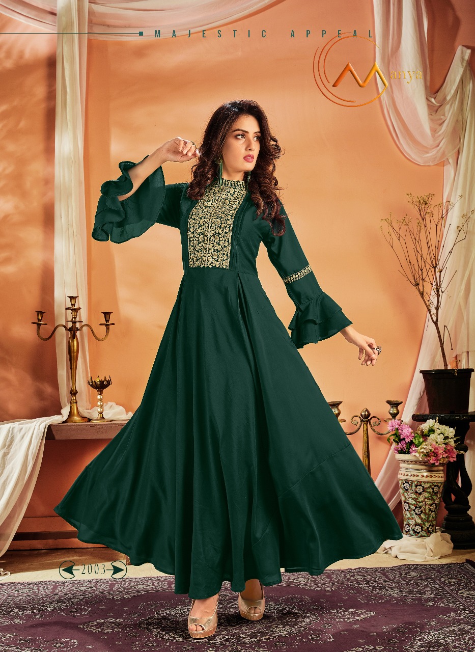 MANSI FASHION presents Latest Collection LUXURIOUS. Launched on February 25,2020.Presenting beautiful collection of 4 Gowns. Brand :- MANYA Catloug :- LUXURIOUS Fabric :- CHIMIMI SILK Design :-4 Size :- M(38), L(40), XL(42), 2XL(44), 3XL(46) Rate :- 995/- + 5%GST |