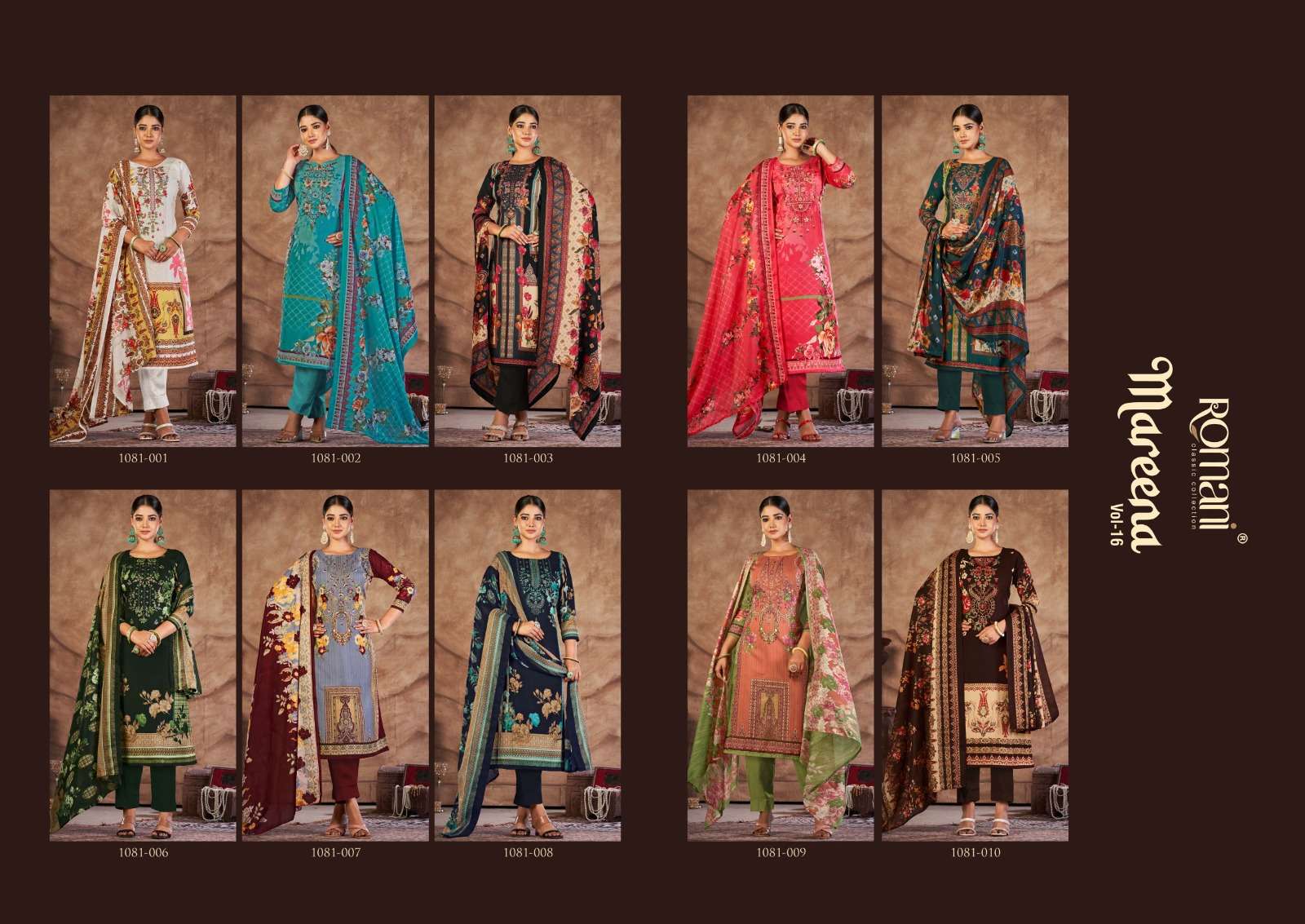 mareena vol 16 by romani digital print soft cotton pakistani suits wholesaler