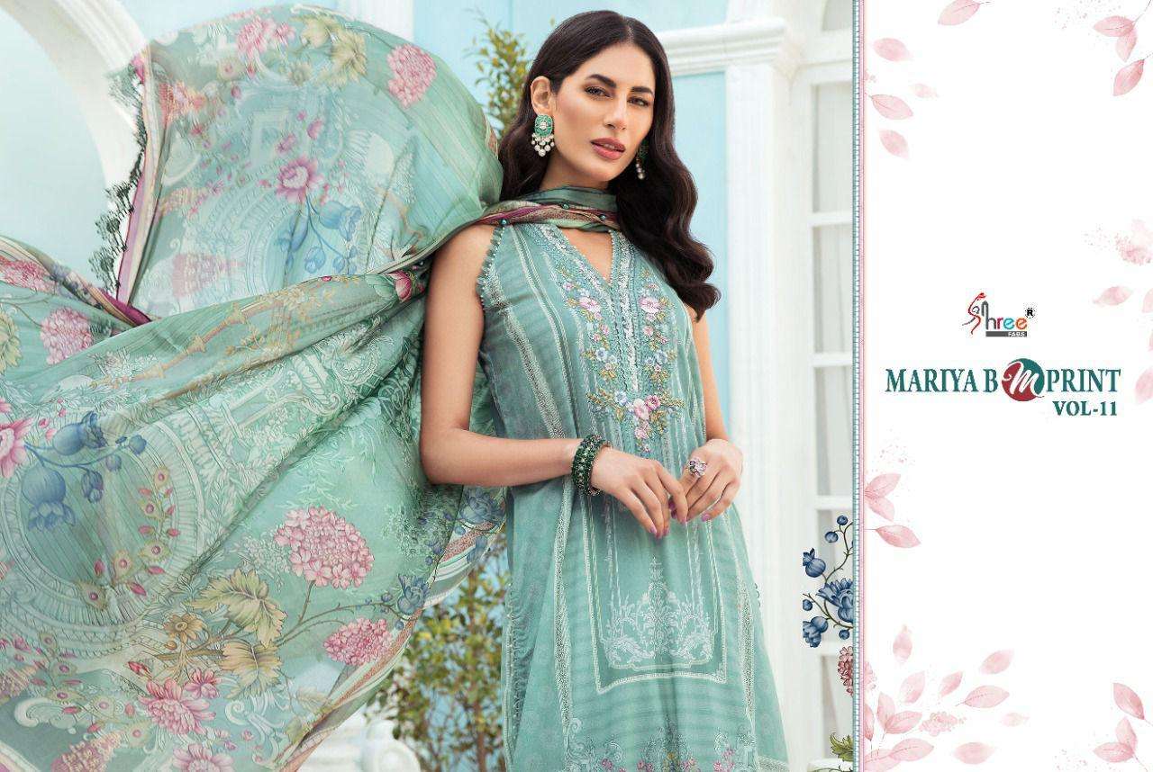 MARIAB M PRINT VOL-11 TOP PURE COTTON PRINT WITH EXCLUSIVE EMBROIDERY BOTTOM SEMILAWN DUPPTA SIFFON / COTTON RATE 731 SIFFON DESIGNS 8 Shree fabs surat®️ |