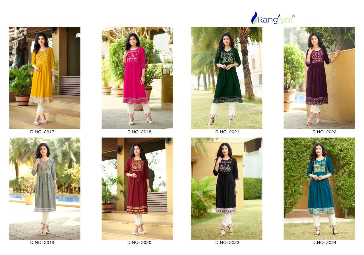 Rangjyot 🎗️ Launches it's hit series Maria With New Colors Chart, Print And Work.!! MARIA VOL-3 🏵️ 8 Pcs Beautiful Designs With New Colors And Multihead Embroidery And Handwork. 💥 ▪️Concept - Kurti With Pent Classy Designs Having Designer Concept. ▪️Designs - 8 Pcs. ▪️Fabric - 14 Kg Heavy Rayon ▪️Size - M to 3xl ▪️Rate - 685/- + 5% Gst. ▪️Dispatch - *Today Delivery 🚛 |