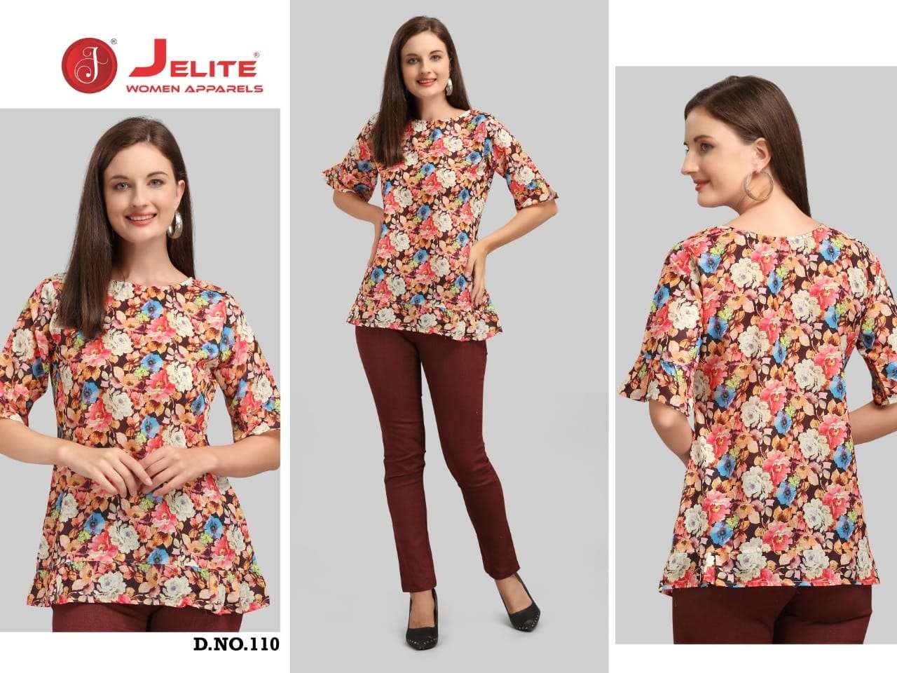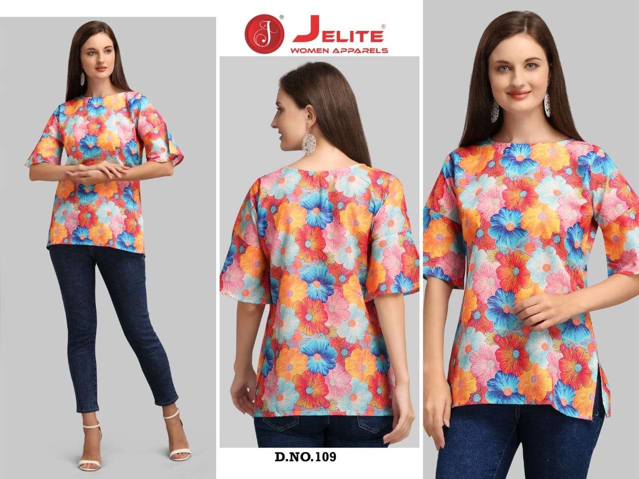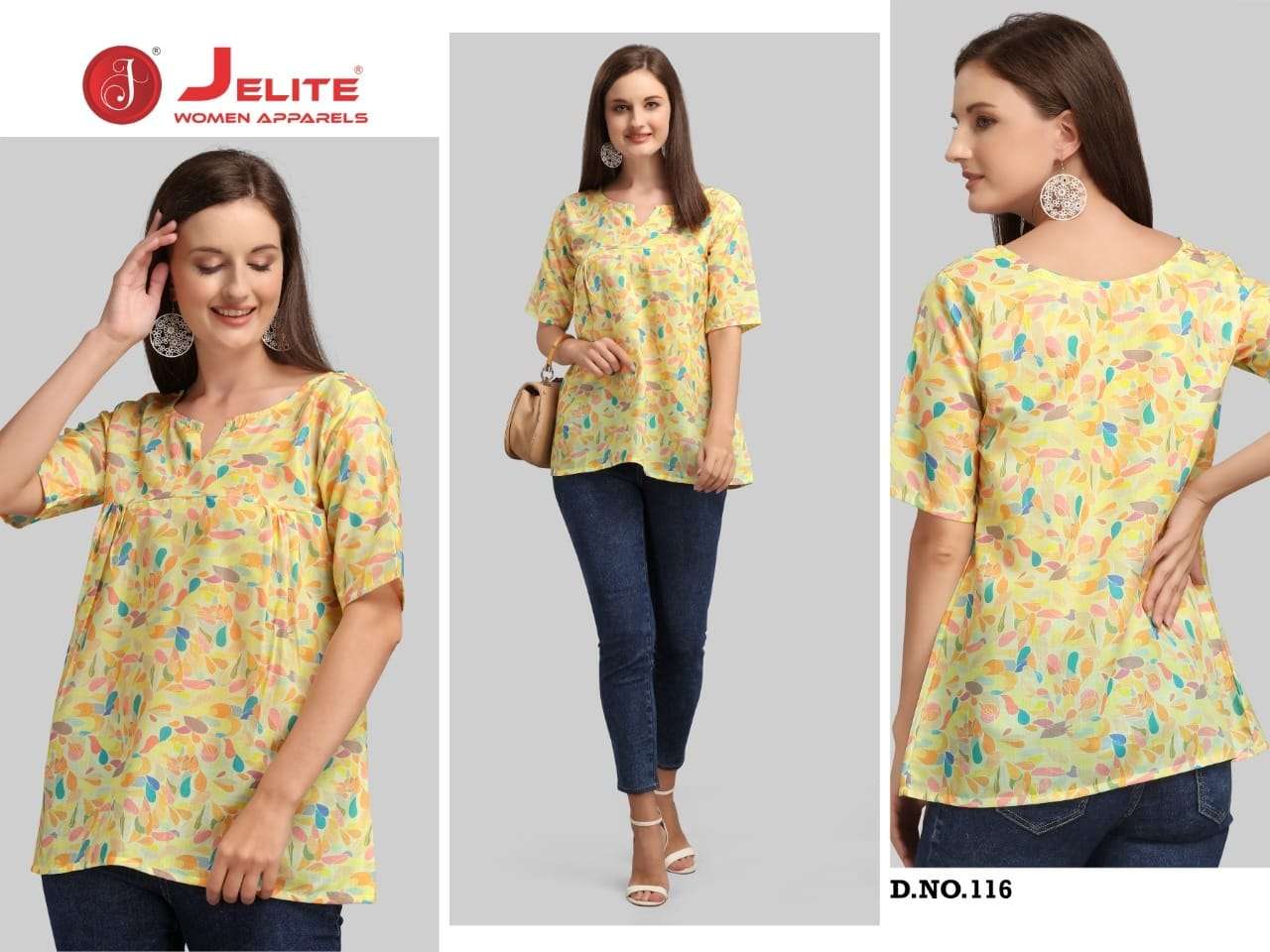JELITE presents MARIGOLD Volume 2 Featuring the latest in-season collection of TOPS that will boost your personal style. Get your hands on these extra comfortable high-fashion trending pieces of Jelite Tops now! Fabric : Cotton Digital printed Sizes : S, M, L & Xl, Xxl  (36, 38, 40, 42 & 44) Designs: Total 8 designs Price : 299/- per pc |