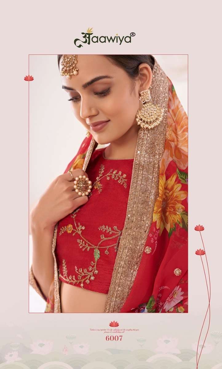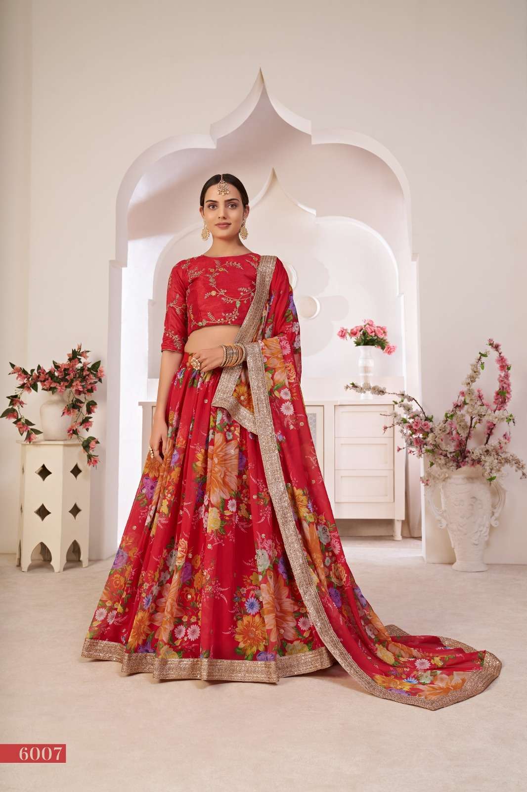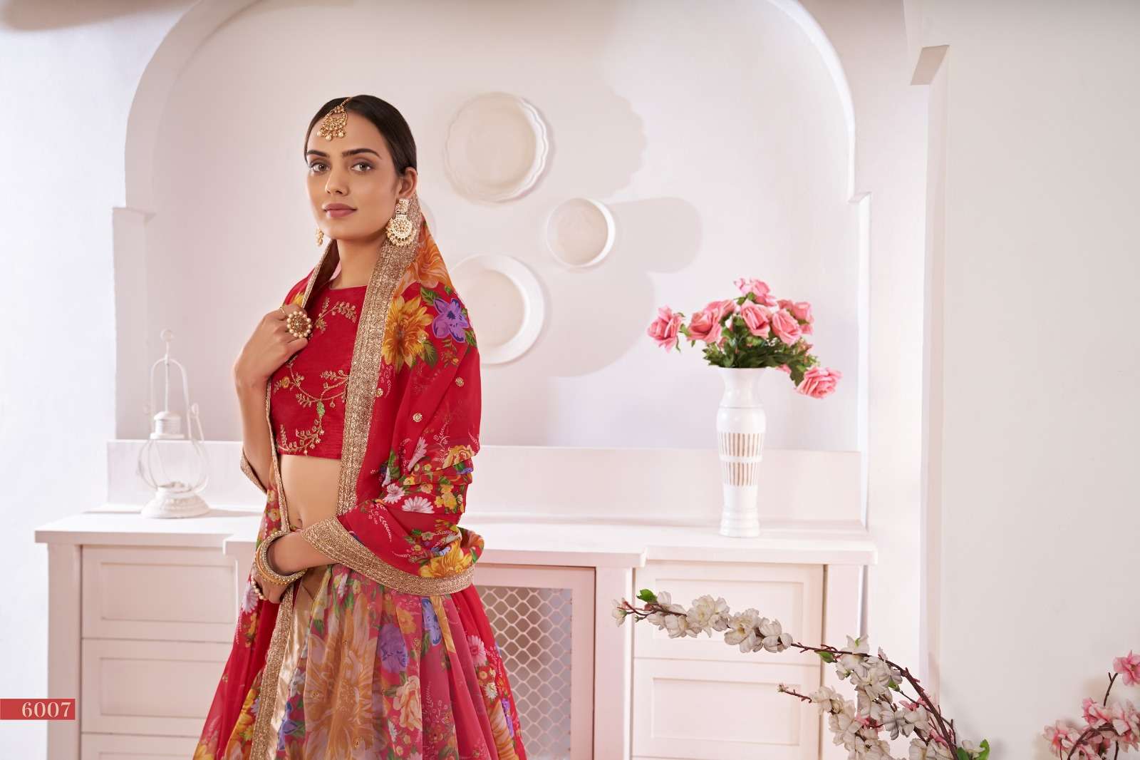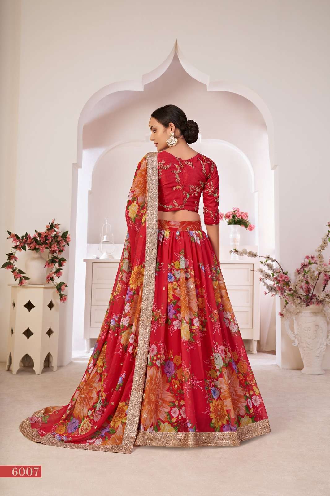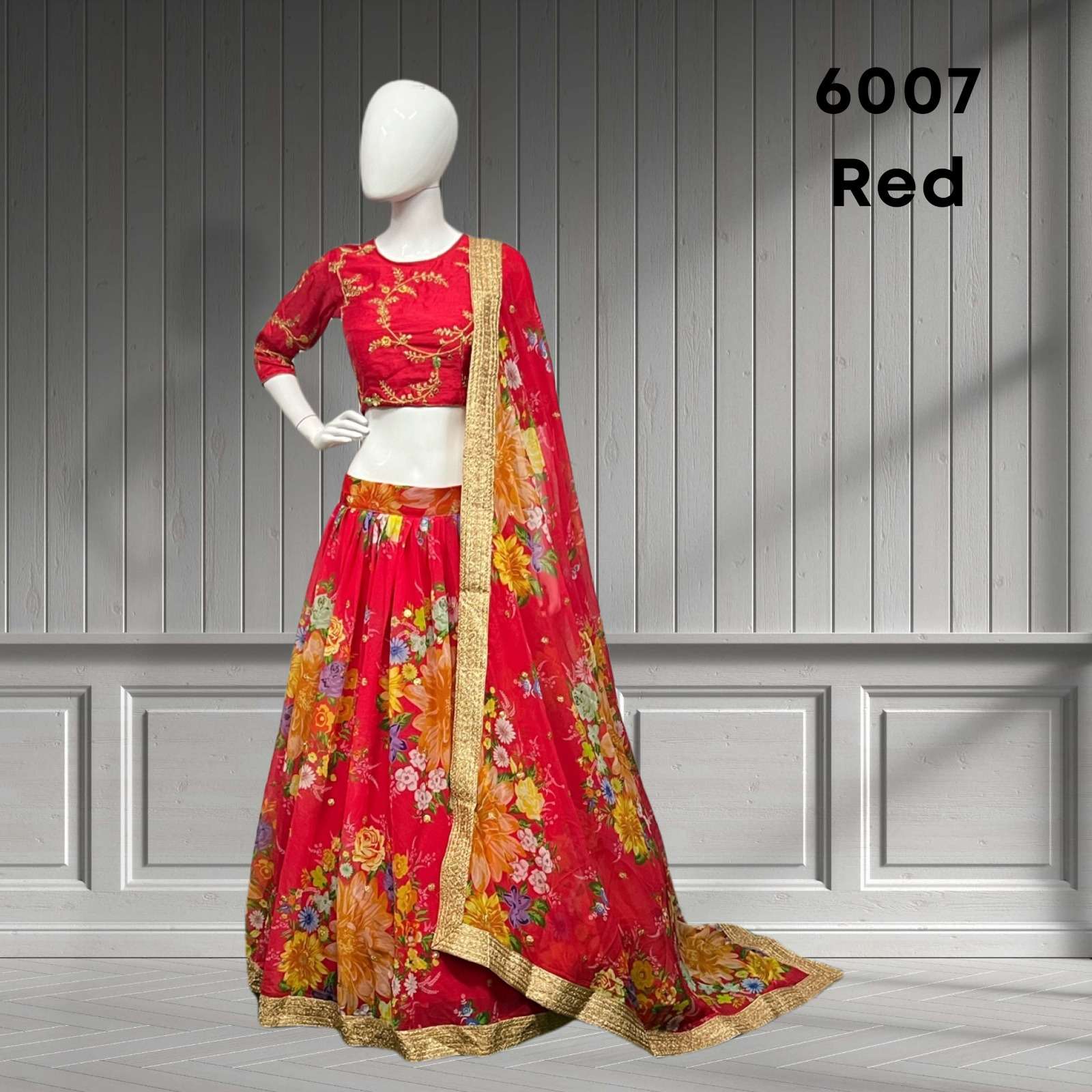 marvelous red color floral print single lehenga choli 6007 lotus vol 1 by aawiya