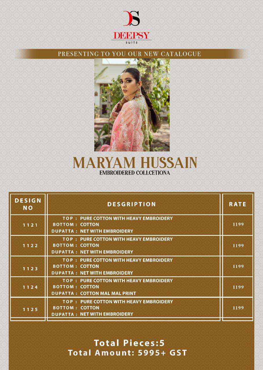 Maryam Hussain embroidered collcetion by DEEPSY SUITS Top - Pure Cotton       With Embroidery Bot - Cotton solid Dup - Net with heavy embroidery Rate: 1199+Gst Set to set. Delivery 4-5 days Quilted Fabric Used For best quality results |