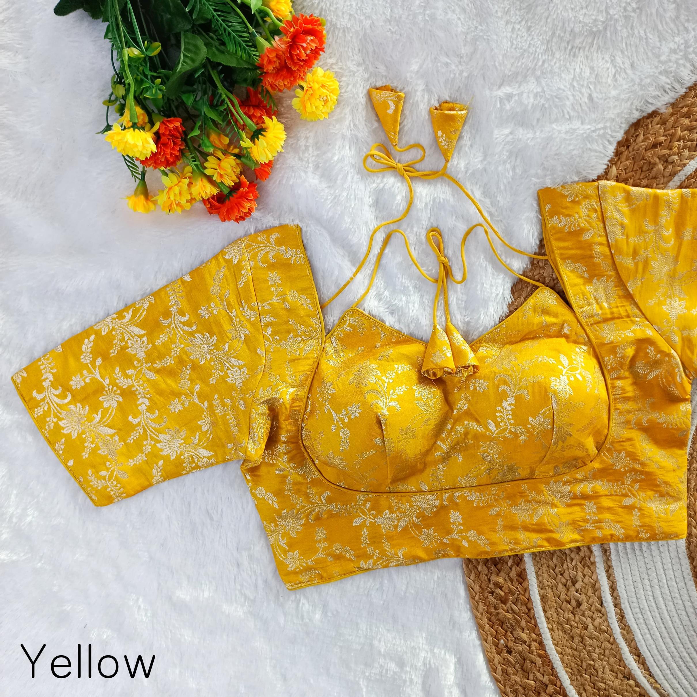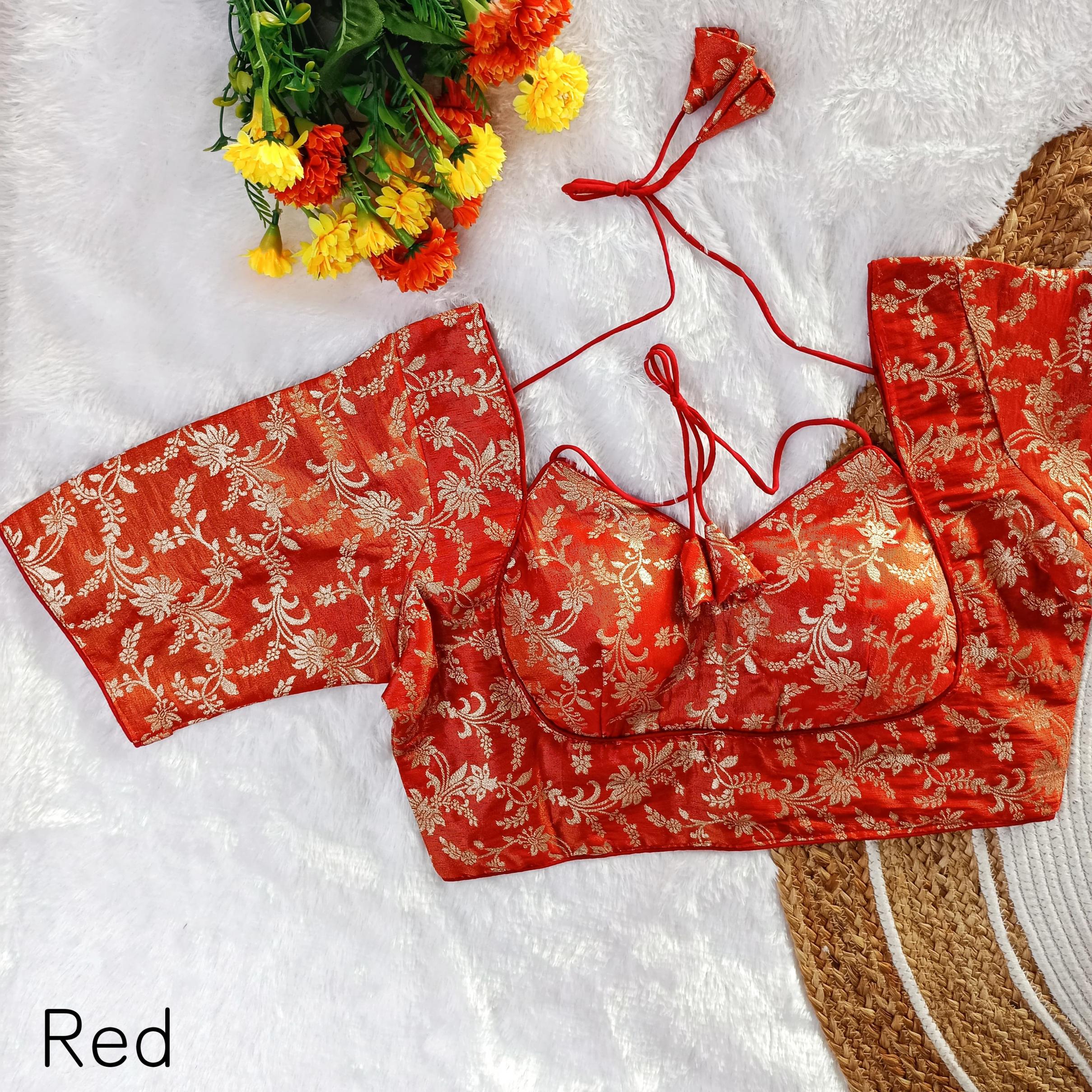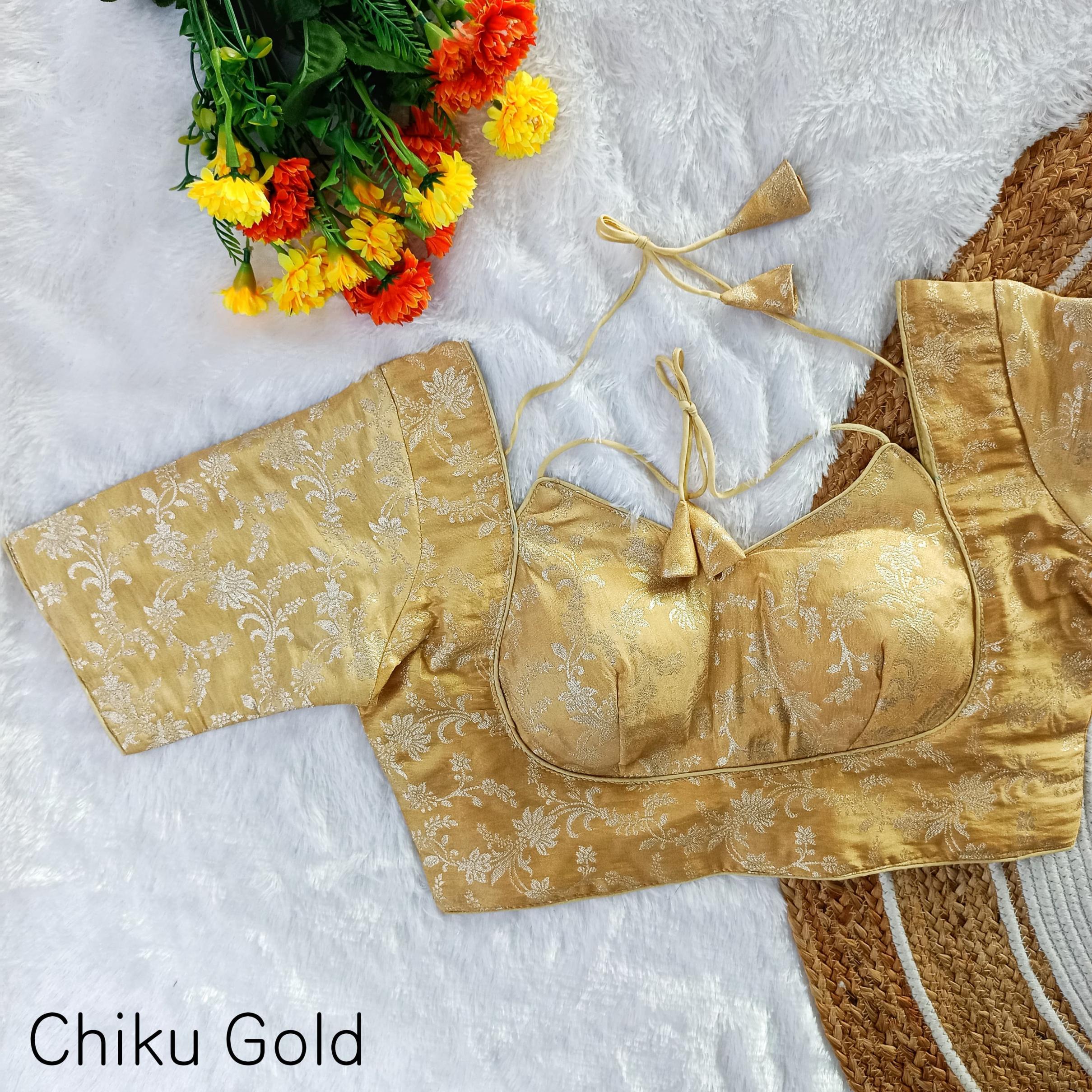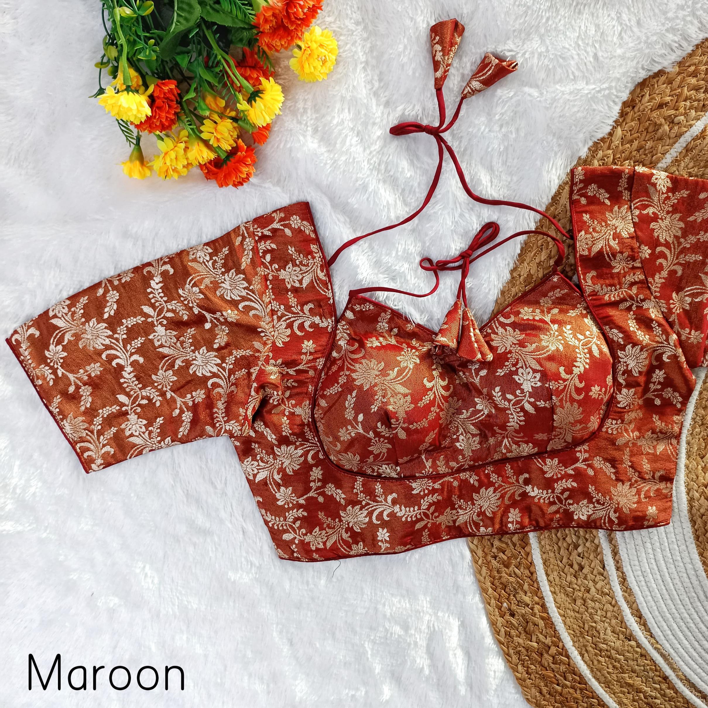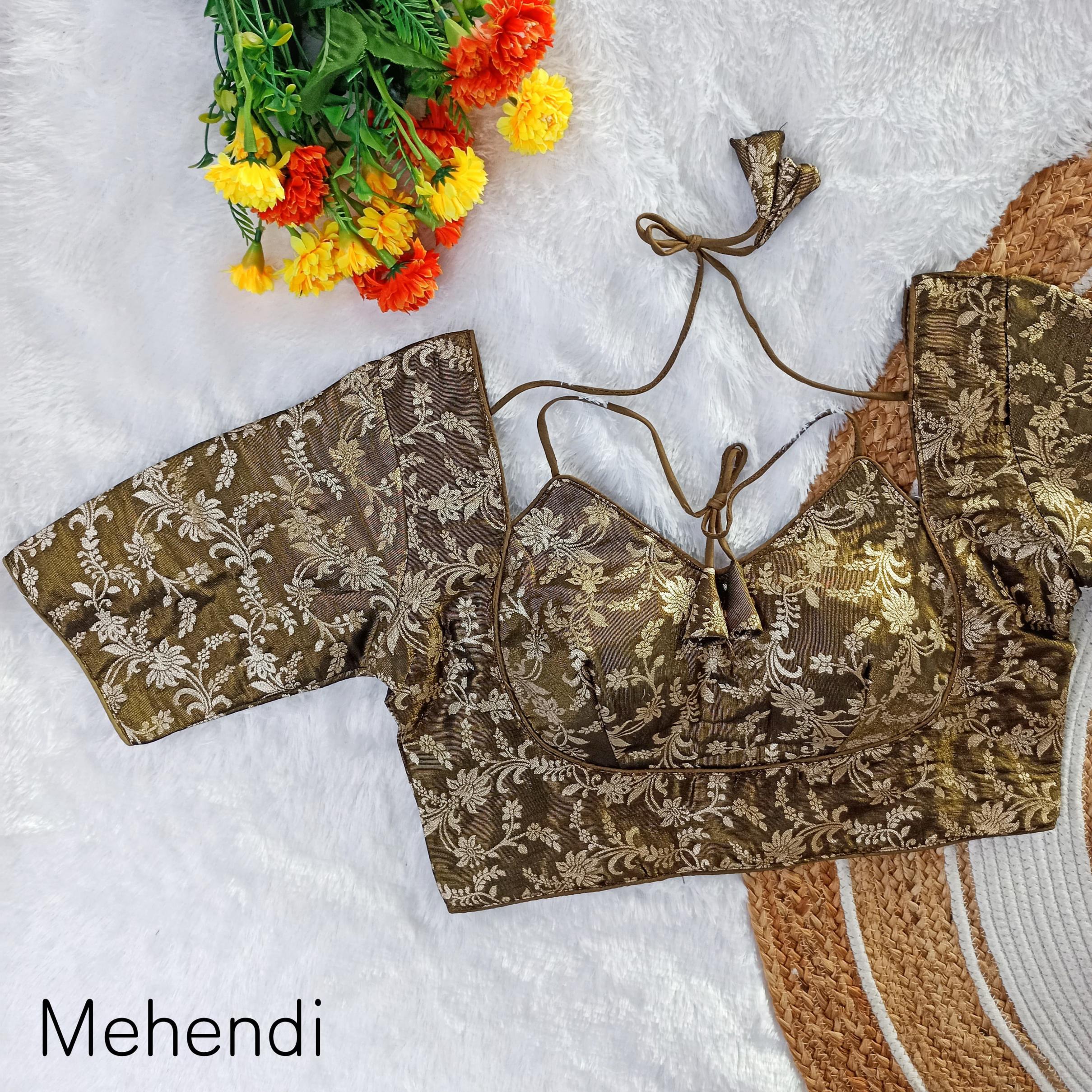 ➡️ EXCLUSIVE PARTYWEAR MASABA PATTERN WEAVING JARI JEQUARD FANCY BLOUSE ➡️Design- MASABA TISSUE-1 ➡️Fabric- Pure Simmer Tissue Jequard ➡️Inner- Cotton (Double Lining) ➡️Work- Exclusive Weaving Jari Jequard Work ➡️Pattern- MASABA PAN NEACK ➡️Quality- A1 ➡️Padded- Yes ➡️Size- Free Size 38 Ready ➡️Length- 14-15 Inch ➡️Open Type- Back Hook ➡️Sleev- Elbow Sleeves Atteched ➡️Colour:- (10 Colours Available) 🖤💛🧡❤️🩷️💙💜🤍🤎 ➡️Price- 420/- ➡️SHIPPING EXTRA ➡️ BOOK FAST READY STOCK |