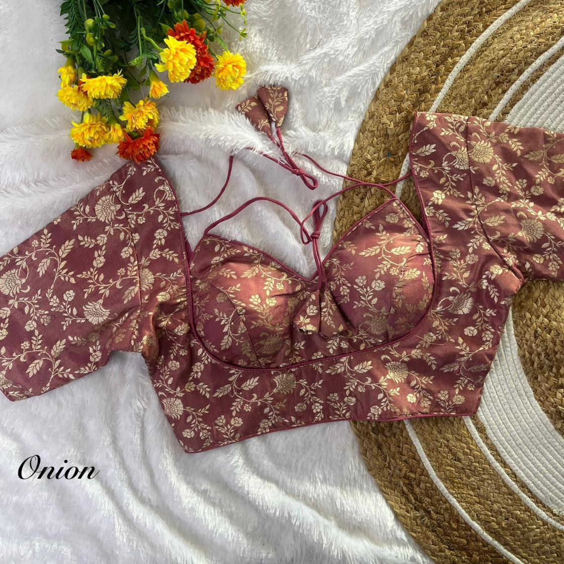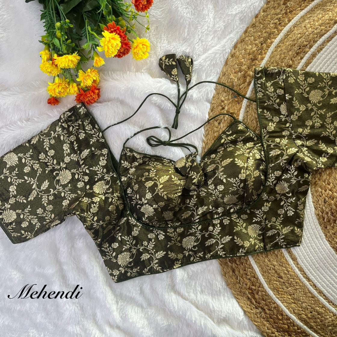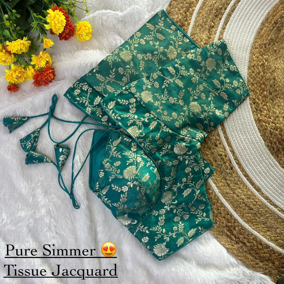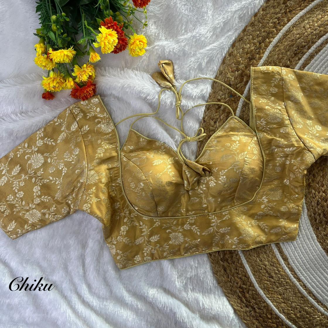➡️ EXCLUSIVE PARTYWEAR MASABA PATTERN WEAVING JARI JEQUARD FANCY BLOUSE ➡️Design- MASABA TISSUE-2 ➡️Fabric- Pure Simmer Tissue Jequard ➡️Inner- Cotton ➡️Work- Exclusive Weaving Jari Jequard Work ➡️Pattern- MASABA PAN NEACK ➡️Quality- A1 ➡️Padded- Yes ➡️Size- Free Size 38 Ready ➡️Length- 14-15 Inch ➡️Open Type- Back Hook ➡️Sleev- Elbow Sleeves Atteched ➡️Colour:- (10 Colours Available) 🖤💛🧡❤️🩷️💙💜🤍🤎 ➡️Price- 420/- ➡️SHIPPING EXTRA ➡️ BOOK FAST READY STOCK |