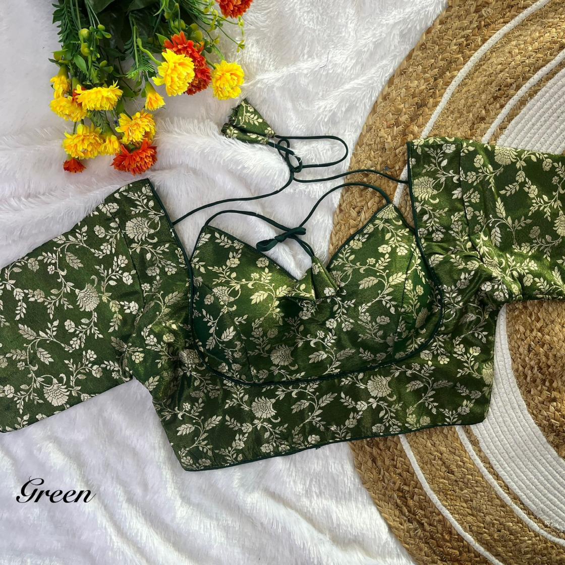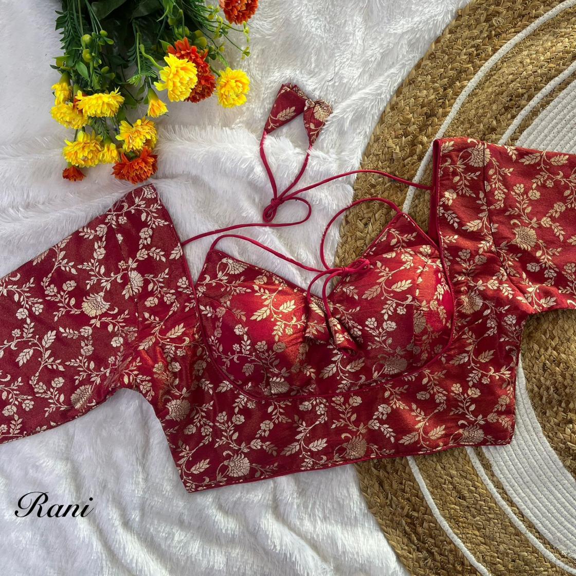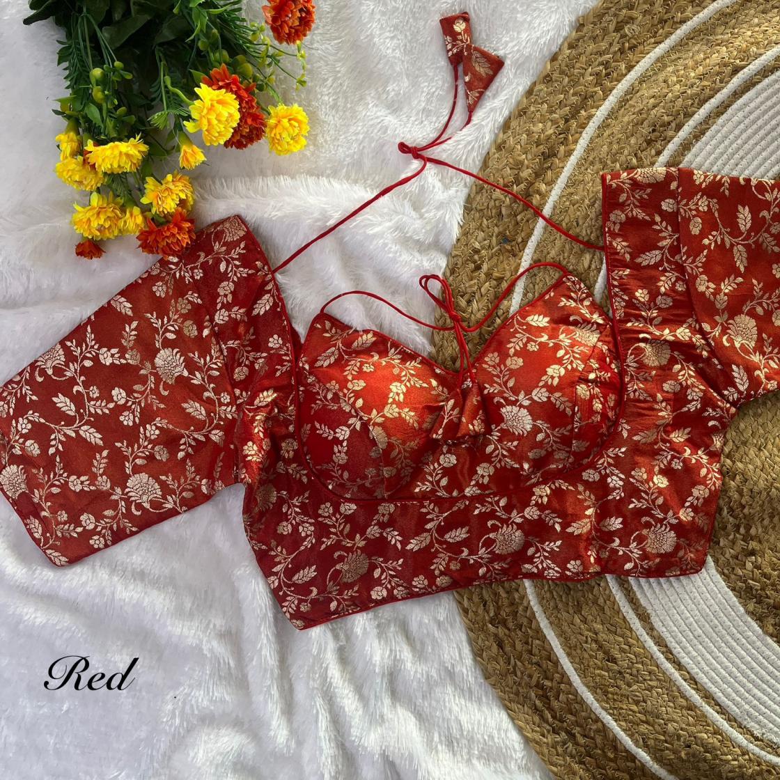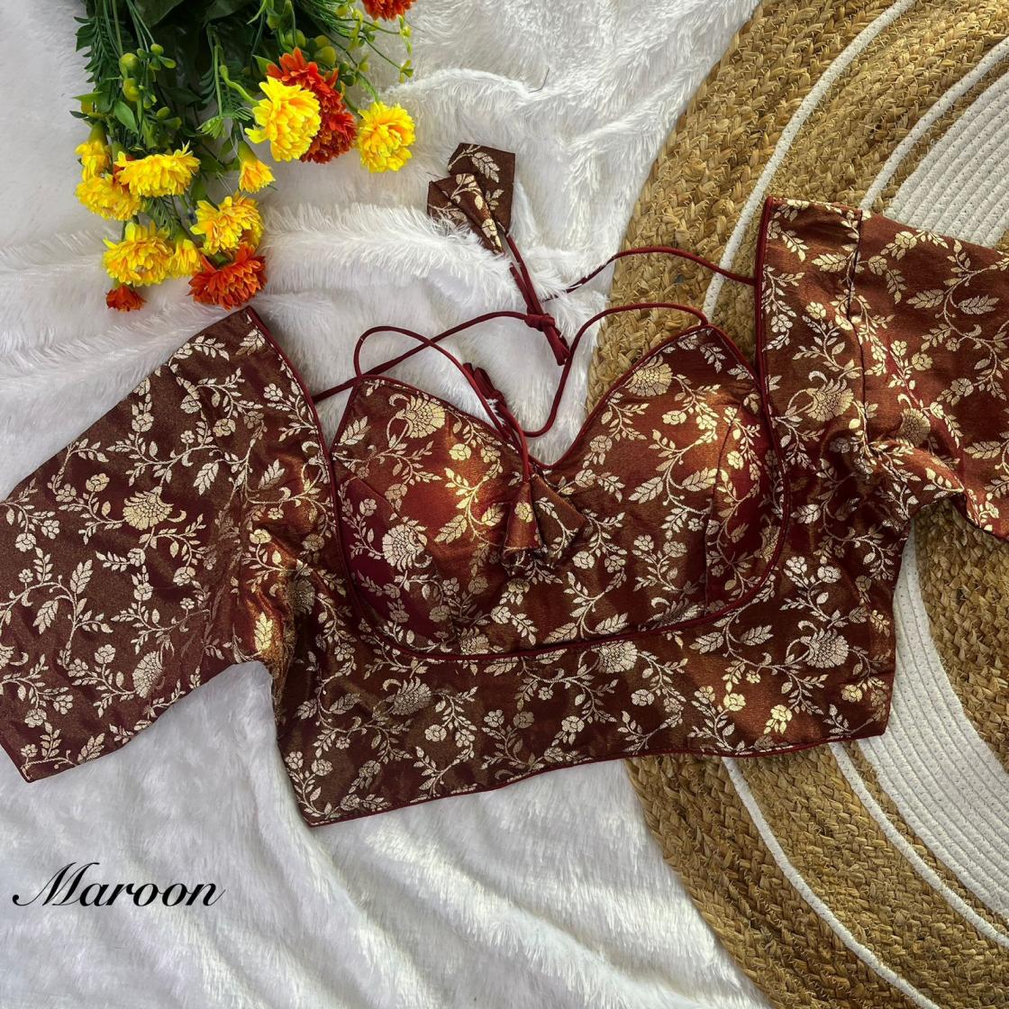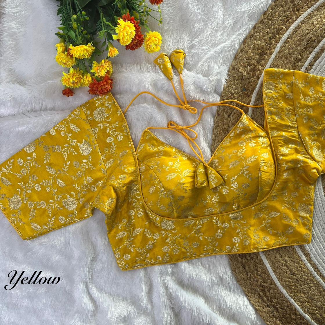 ➡️ EXCLUSIVE PARTYWEAR MASABA PATTERN WEAVING JARI JEQUARD FANCY BLOUSE ➡️Design- MASABA TISSUE-2 ➡️Fabric- Pure Simmer Tissue Jequard ➡️Inner- Cotton ➡️Work- Exclusive Weaving Jari Jequard Work ➡️Pattern- MASABA PAN NEACK ➡️Quality- A1 ➡️Padded- Yes ➡️Size- Free Size 38 Ready ➡️Length- 14-15 Inch ➡️Open Type- Back Hook ➡️Sleev- Elbow Sleeves Atteched ➡️Colour:- (10 Colours Available) 🖤💛🧡❤️🩷️💙💜🤍🤎 ➡️Price- 420/- ➡️SHIPPING EXTRA ➡️ BOOK FAST READY STOCK |