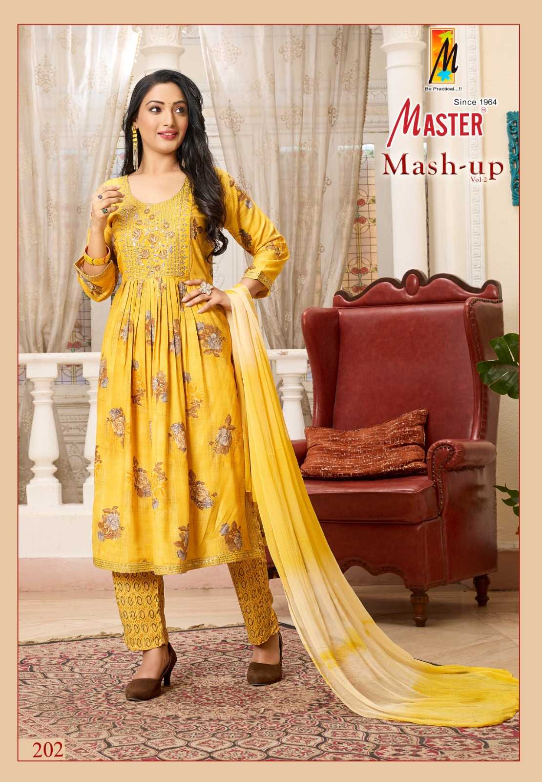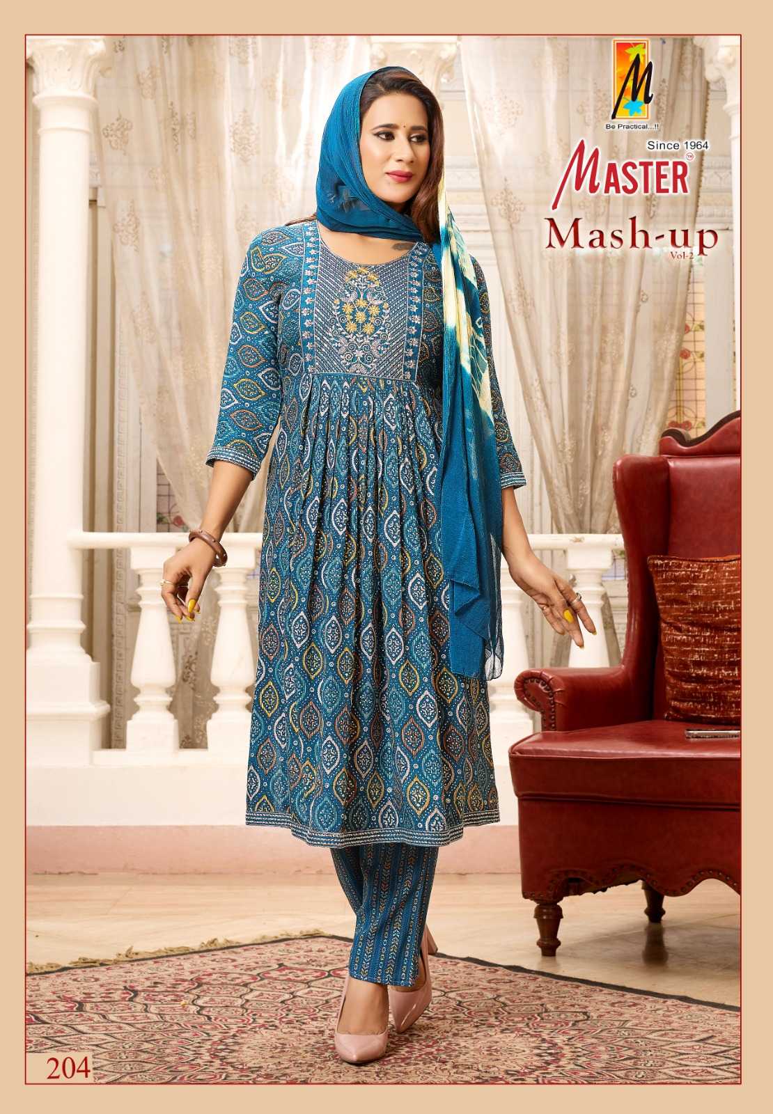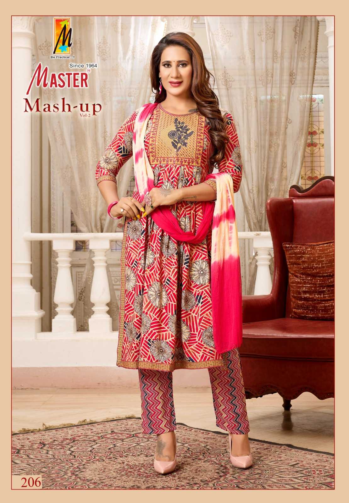 mashup vol 2 by master latest nayra cut rayon print elegant style full stitch salwar suit