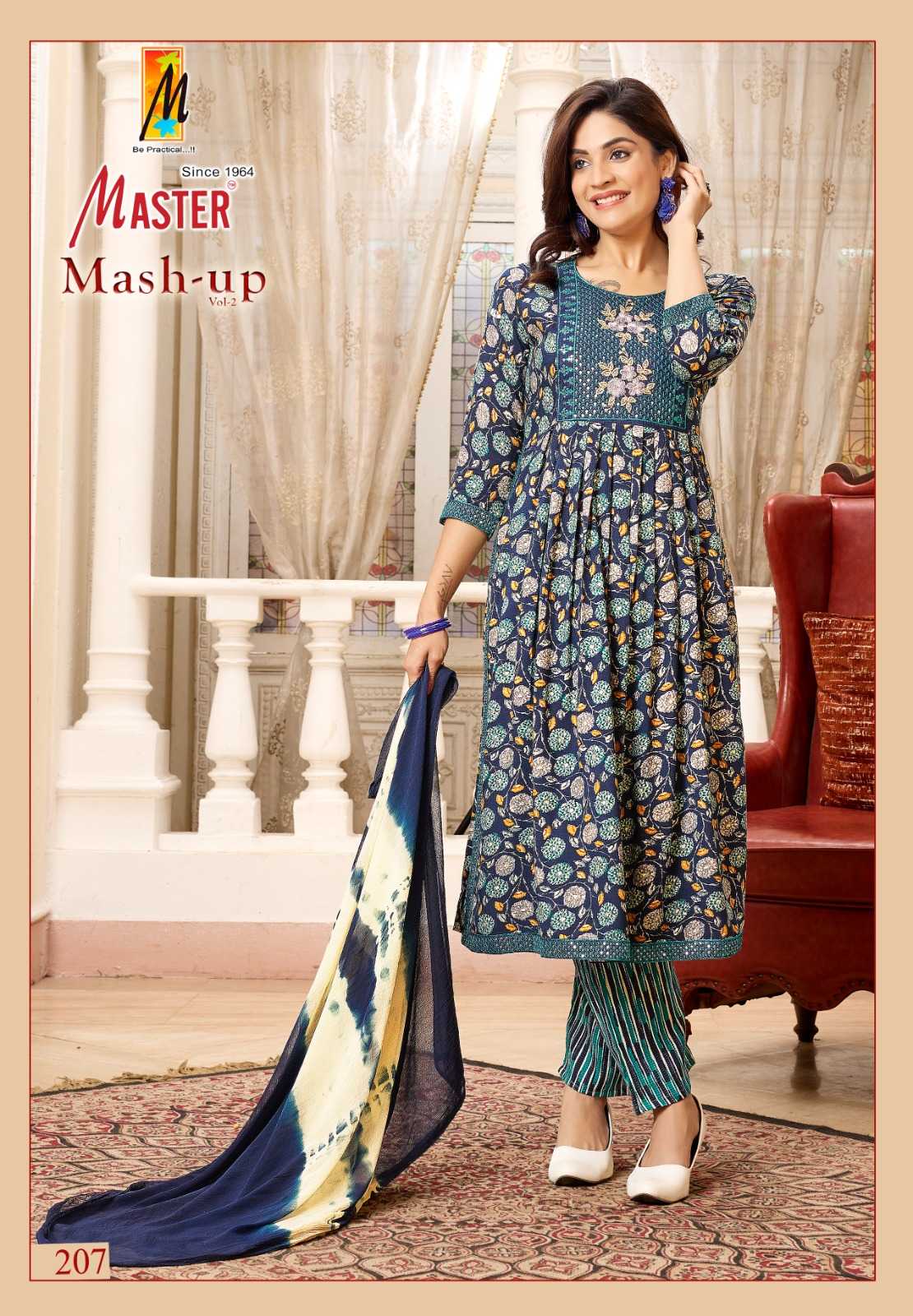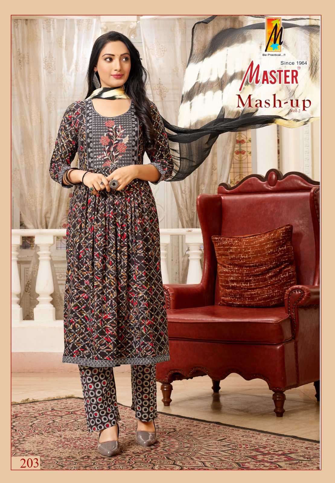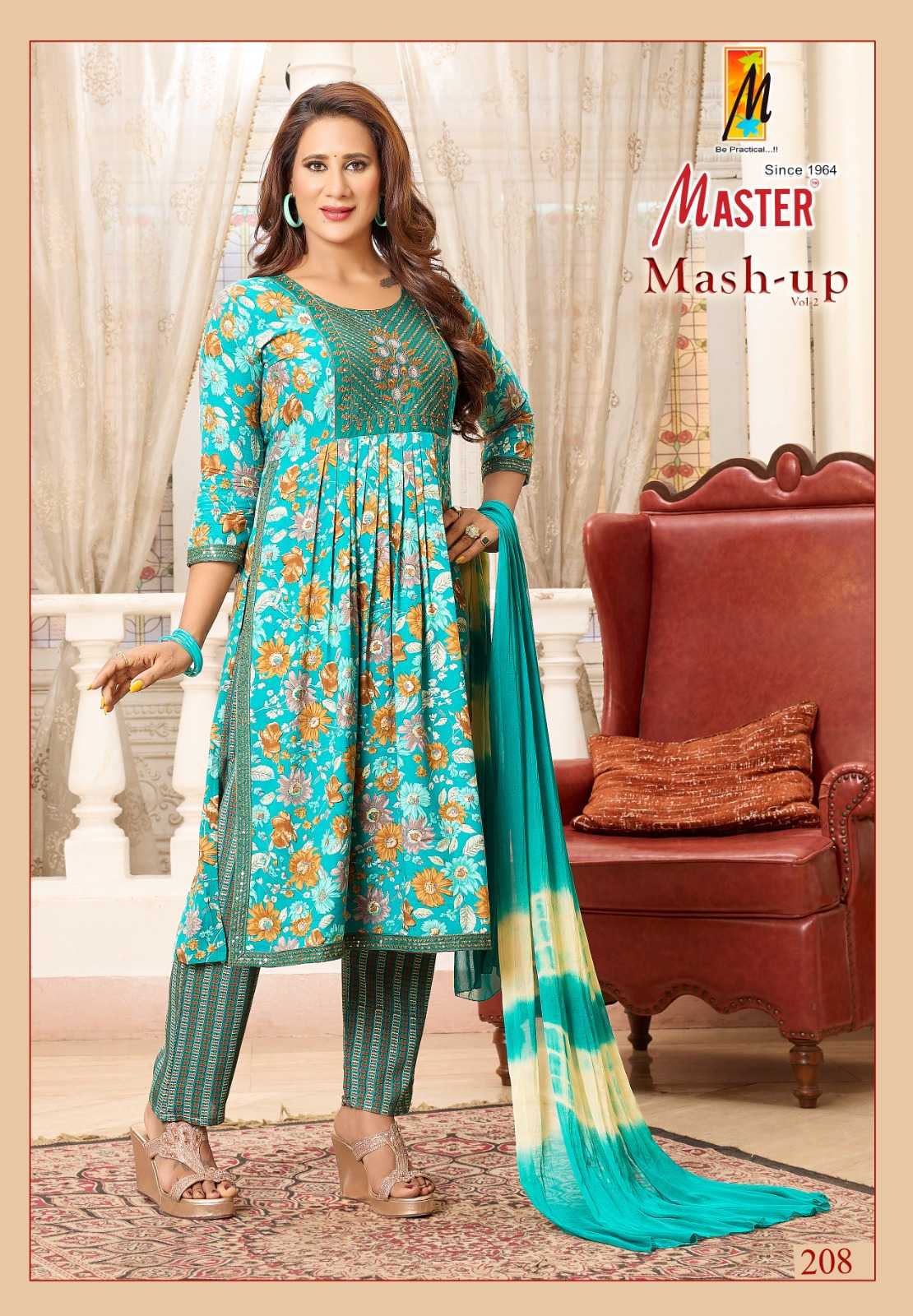 mashup vol 2 by master latest nayra cut rayon print elegant style full stitch salwar suit