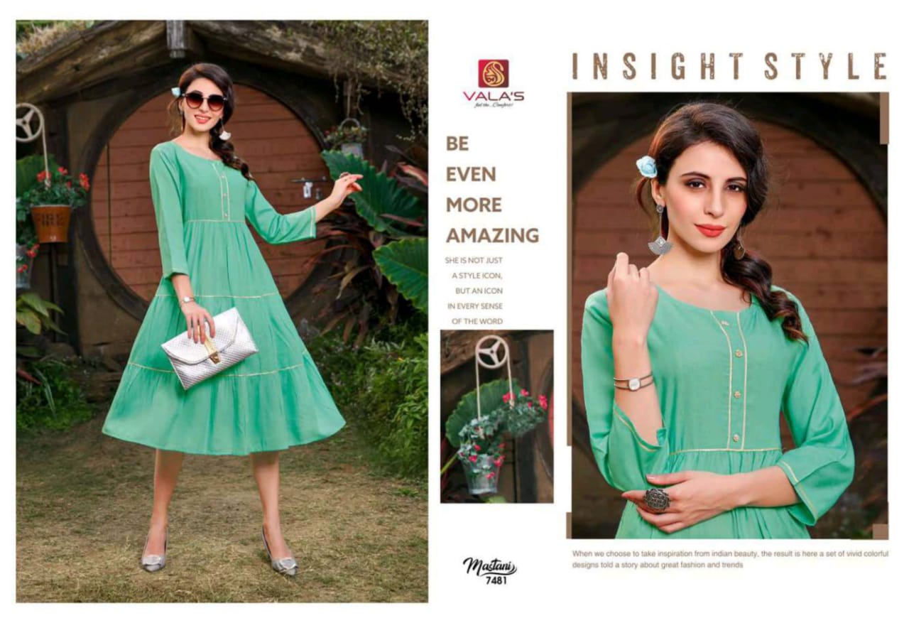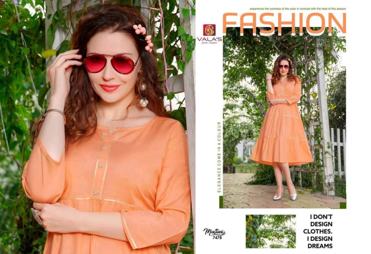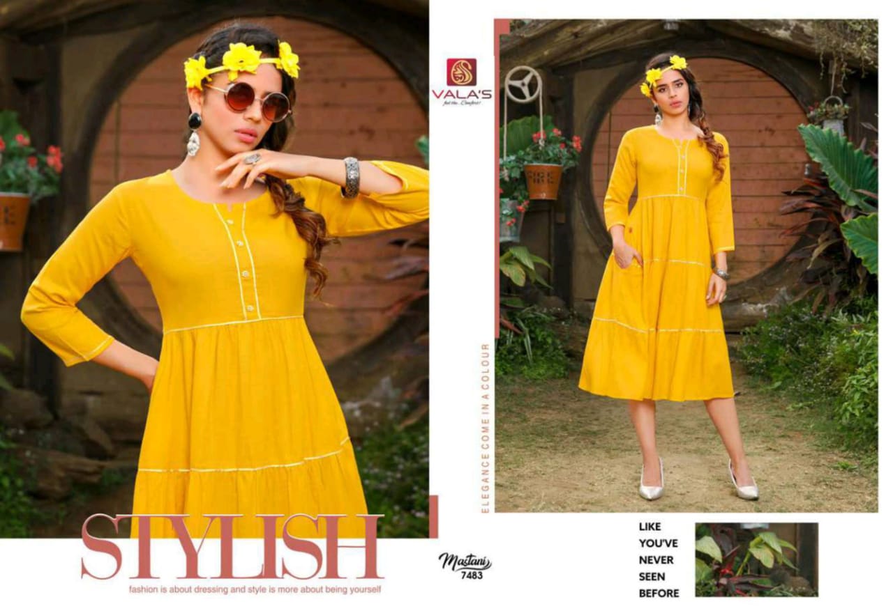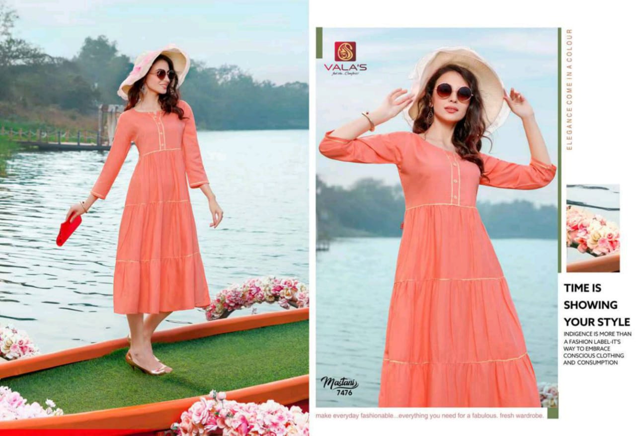 We are launching our new Kurtis Catalog Brand - VALAS . Catalog Name : MASTANI Fabrics - Rayon Plain Slub Flare Kurta Leanth :- 44 Sizes - M, L, XL, XXL, 3XL * Set to set * Rate 540/- only Pc - 08 GST 5 Percent Extra. Delivery 3-4 days Book your order now . |