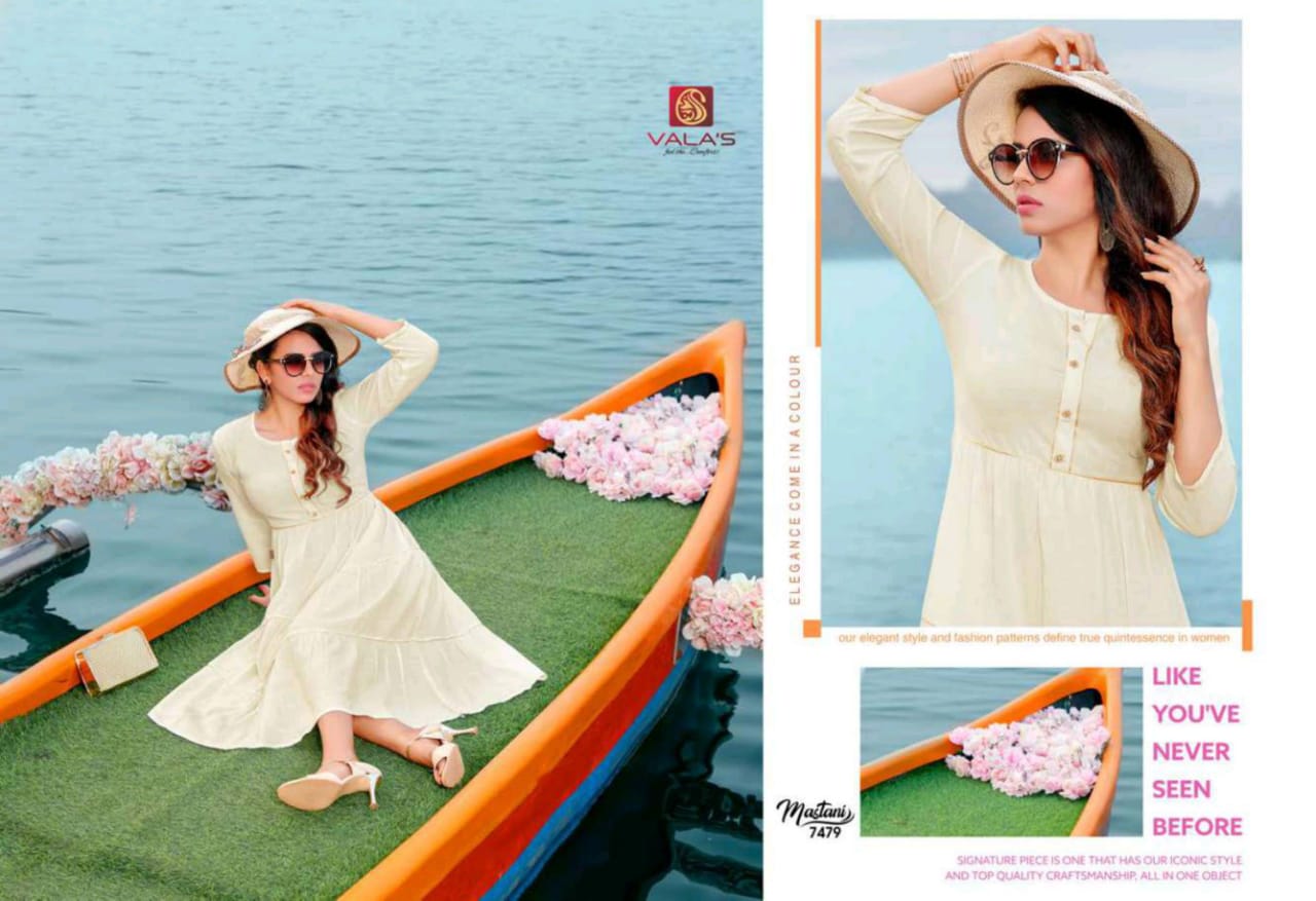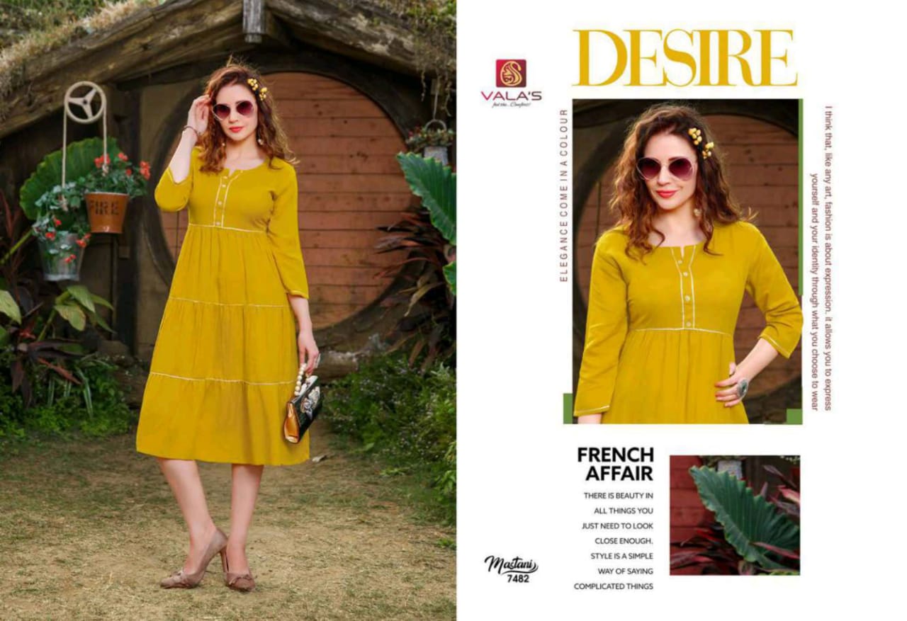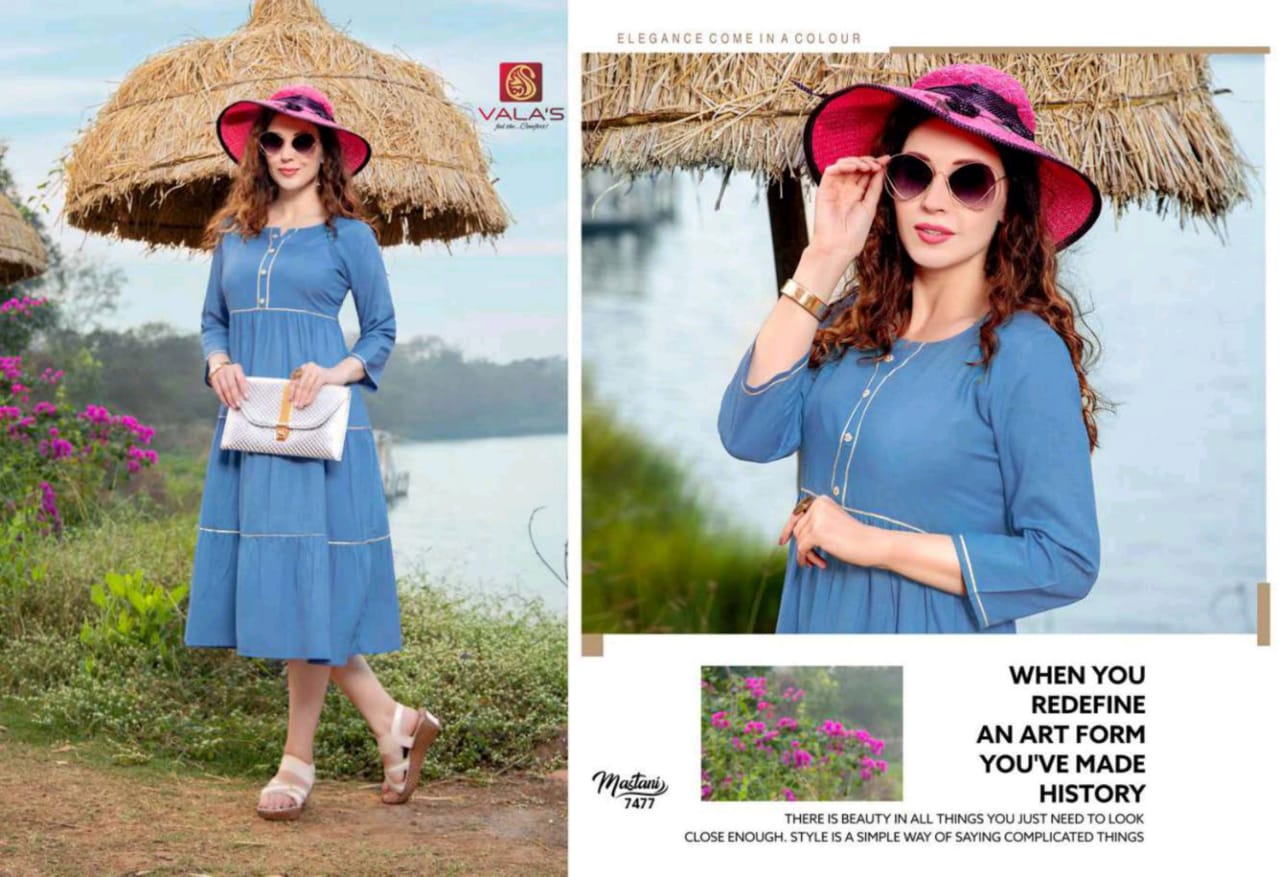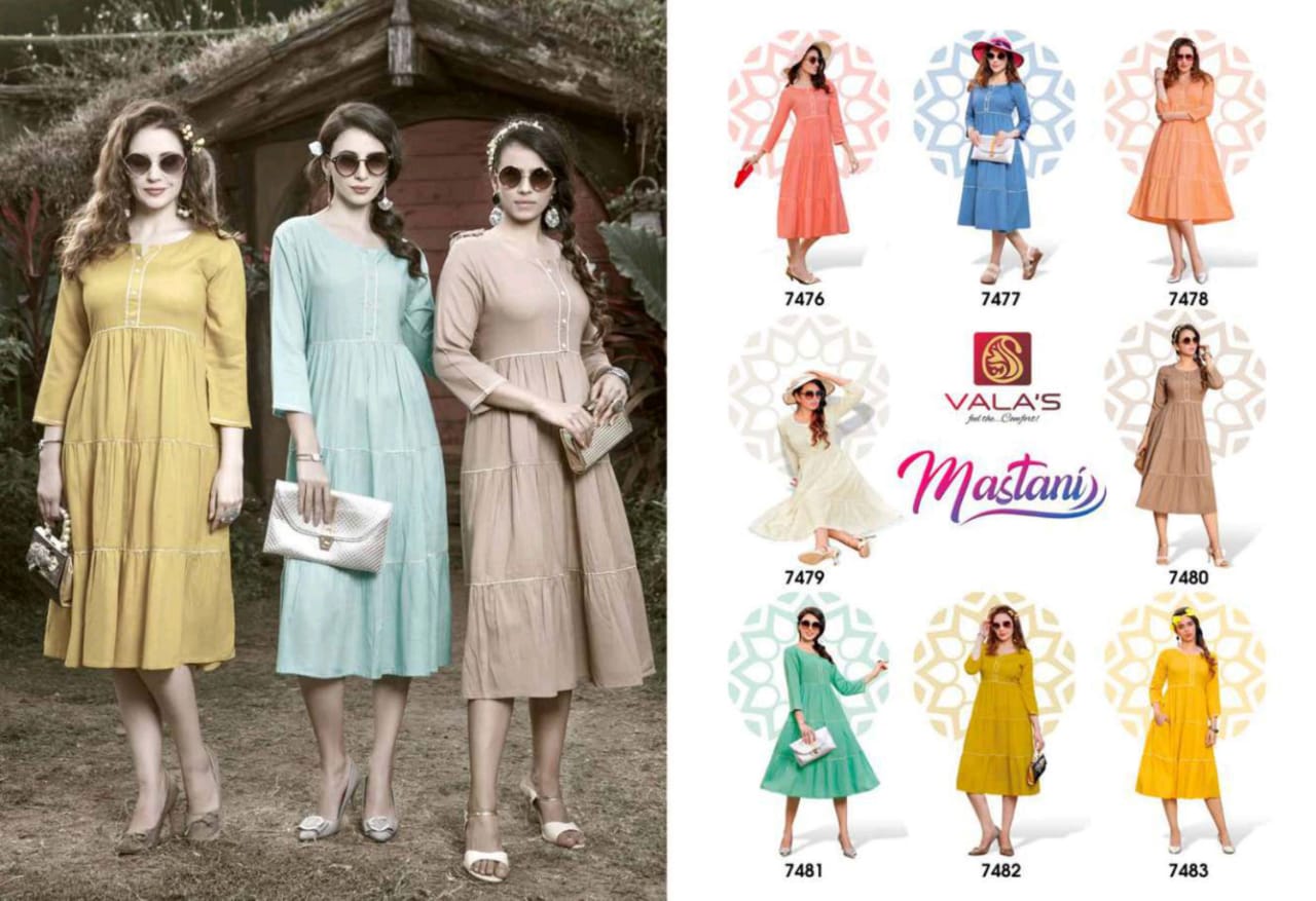 We are launching our new Kurtis Catalog Brand - VALAS . Catalog Name : MASTANI Fabrics - Rayon Plain Slub Flare Kurta Leanth :- 44 Sizes - M, L, XL, XXL, 3XL * Set to set * Rate 540/- only Pc - 08 GST 5 Percent Extra. Delivery 3-4 days Book your order now . |