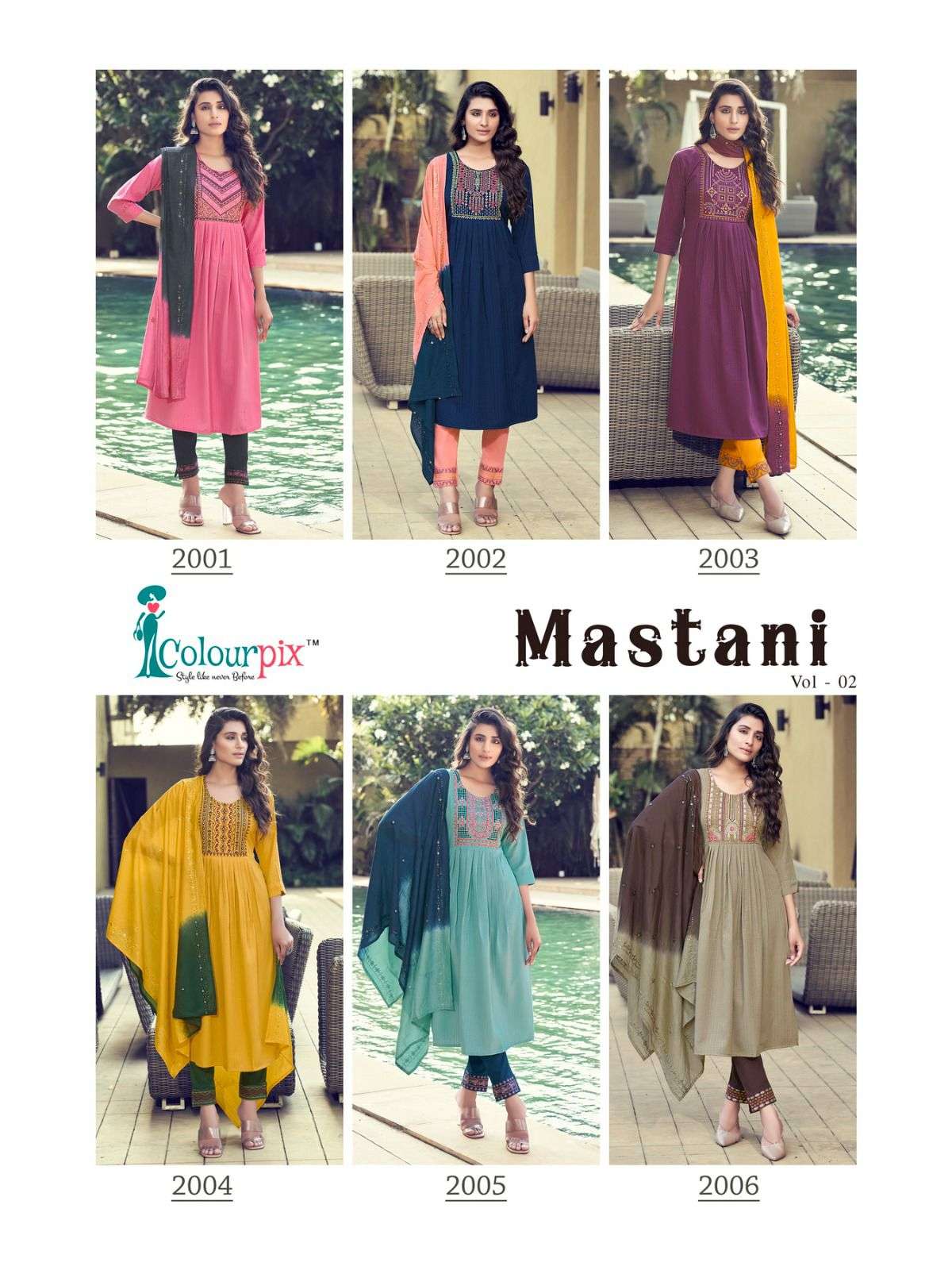 mastani vol 2 by colourpix fancy neck work readymade nayra cut salwar kameez catalog