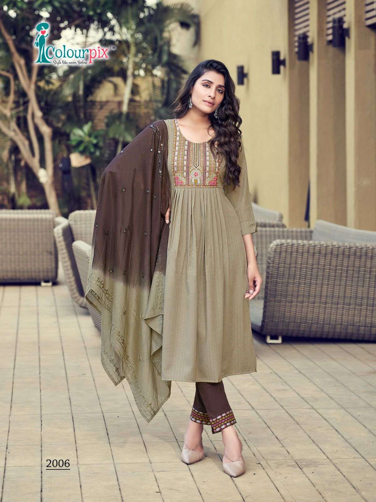 COLOURPIX ...🥳🥳 Presenting our new catalogue 🌸 Brand name🌸 *COLOURPIX 🌟 MASTANI VOL.2⭐ ( kurti with pant & dupatta) TOP :- HEAVY FANCY VISCOSE REYON BOTTOM:- Reyon slub Lycra with Embroidery work DUPPATTA :- Heavy Fancy chanderi Duppatta PATTERN:- NYRA CUT 🌻 Embroidery work + Hand work 💃Designs:- 6 pcs Rate- 950+ GST Regards |