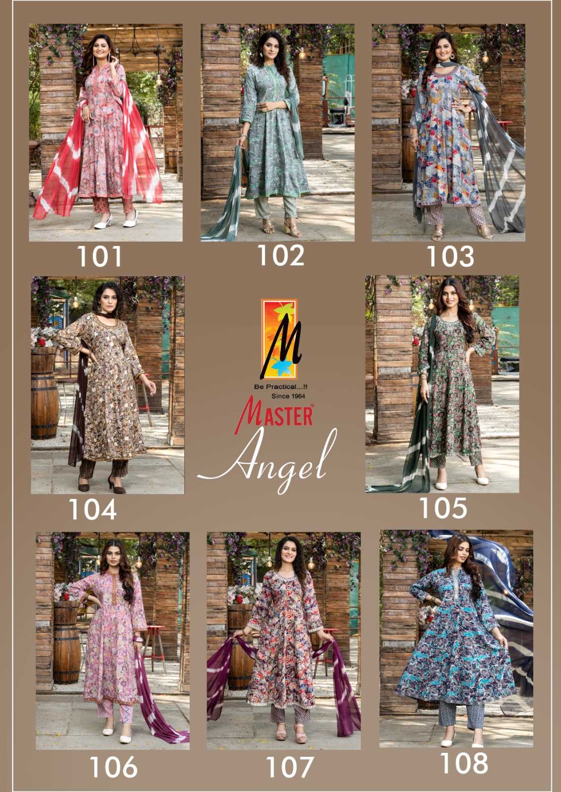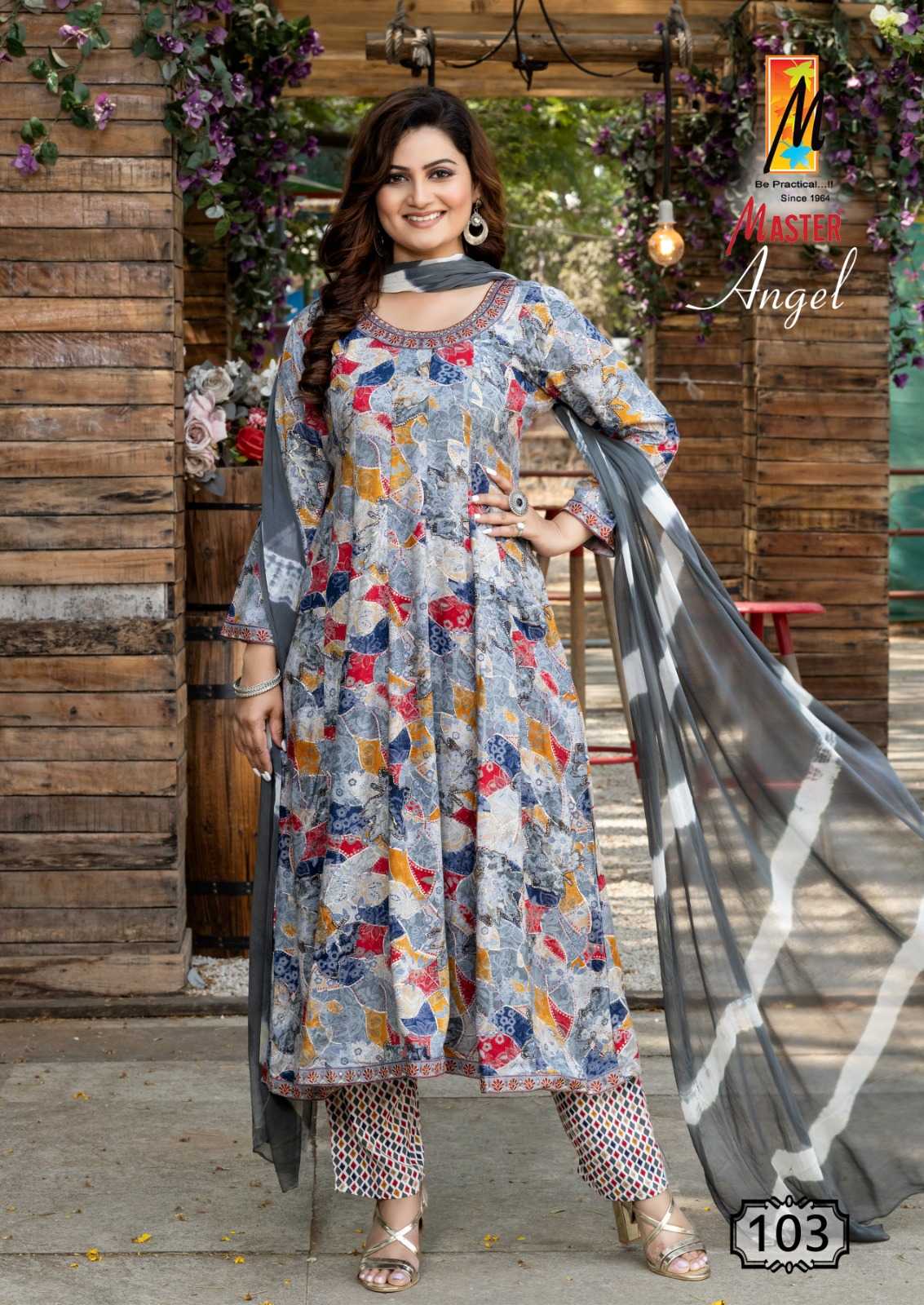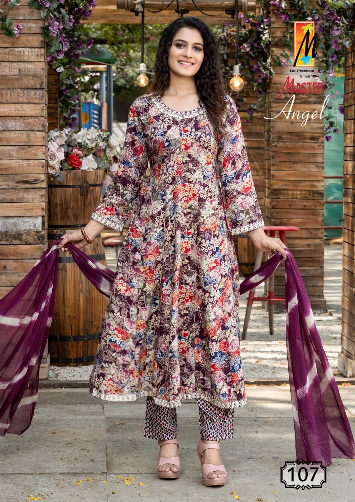 master angel 101-108 series fancy rayon foil ghera fully stitch salwar kameez