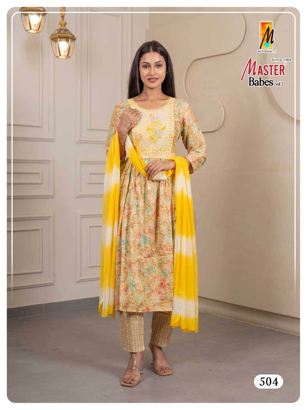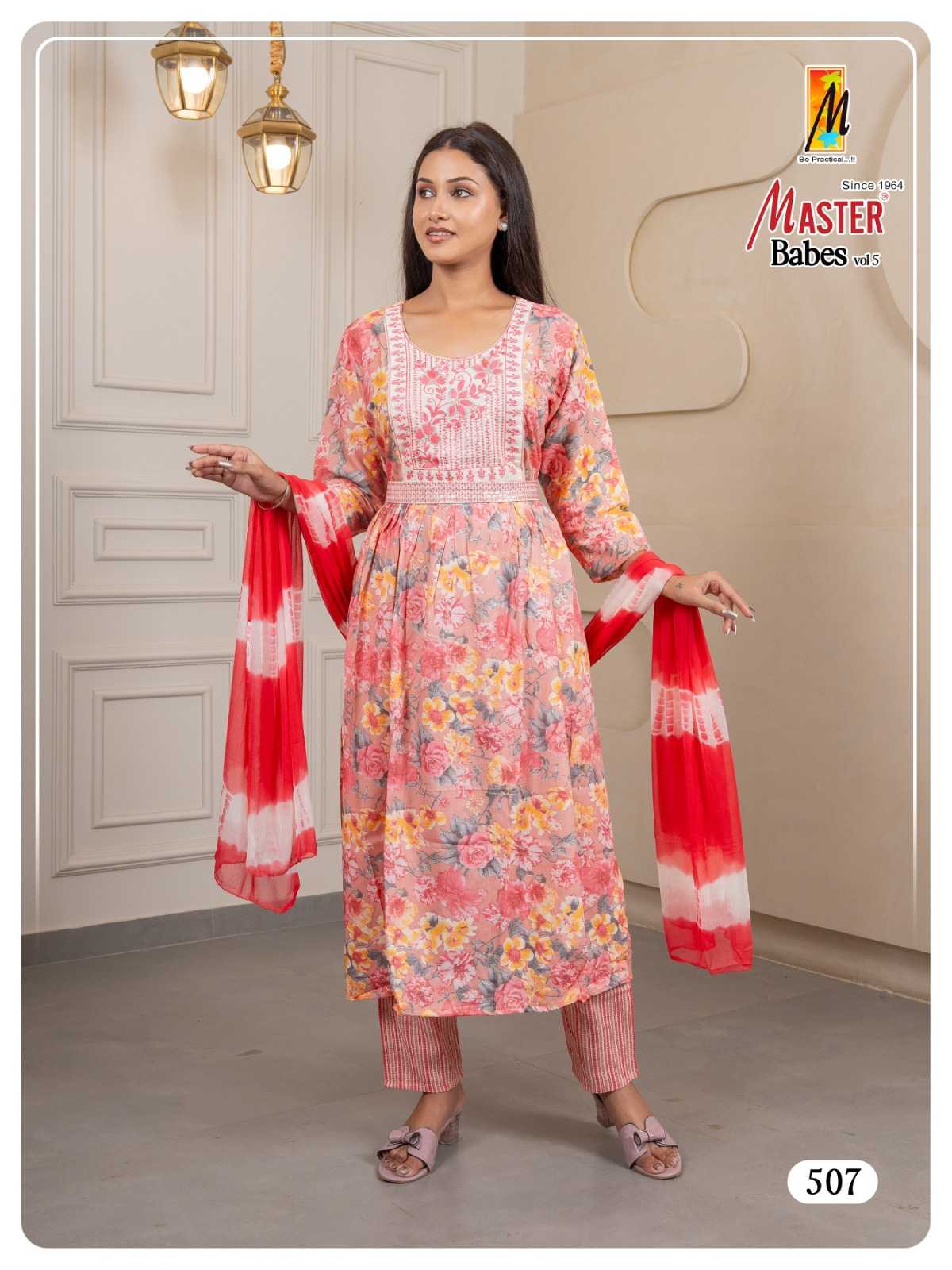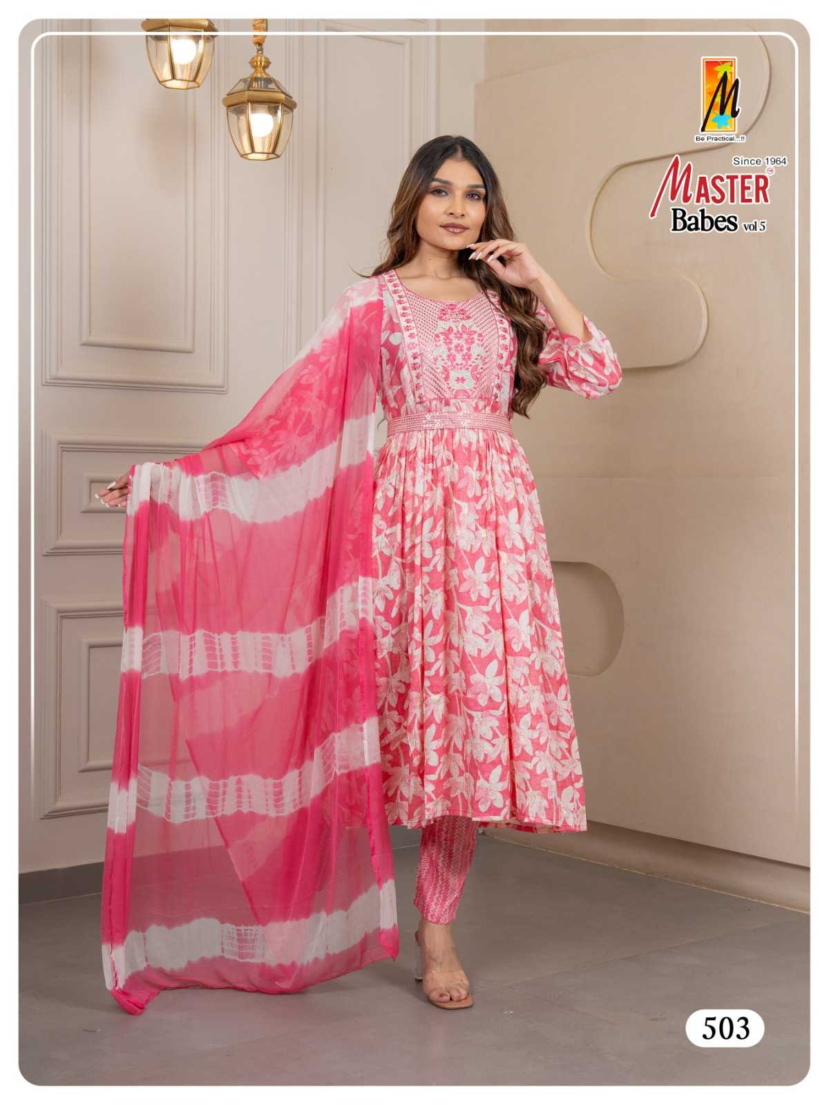 master babes vol 5 full stitch capsule print belt style casual salwar suit