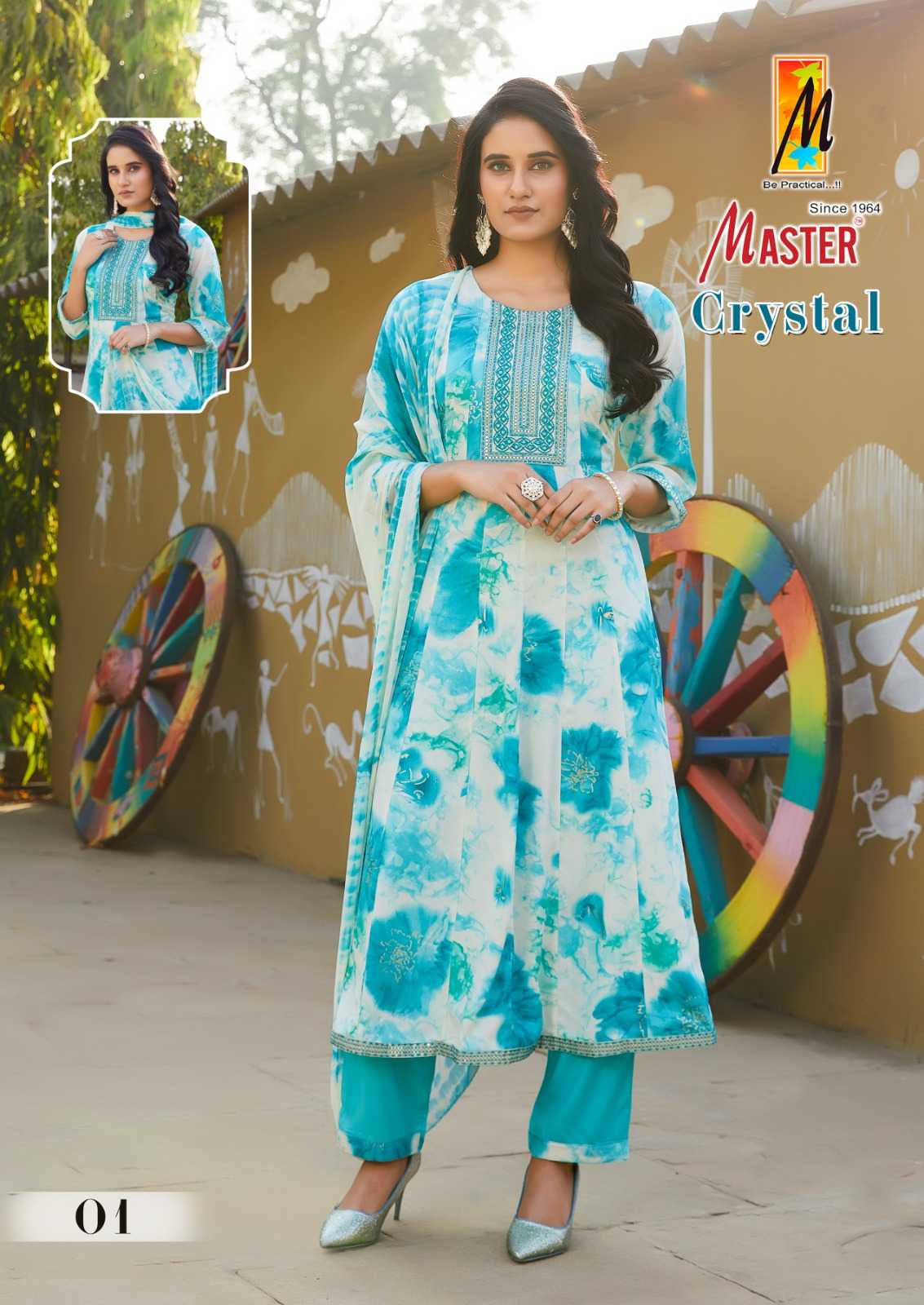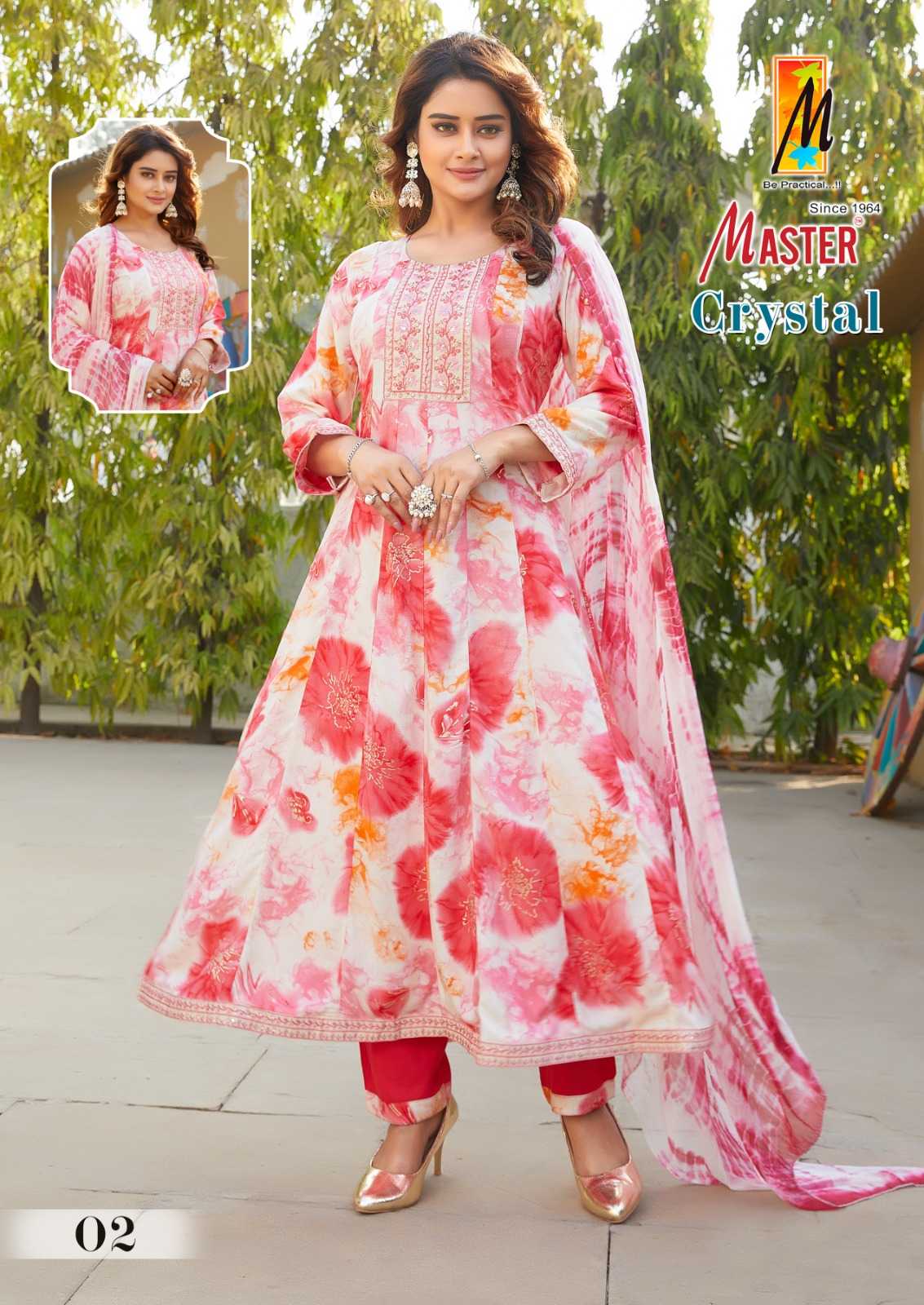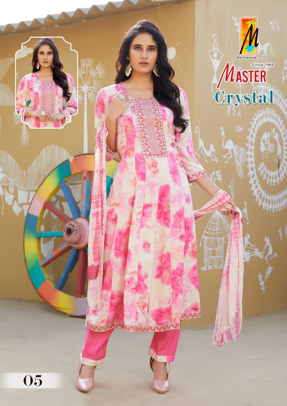master crystal ghera rayon print readymade casual wear 3pcs dress