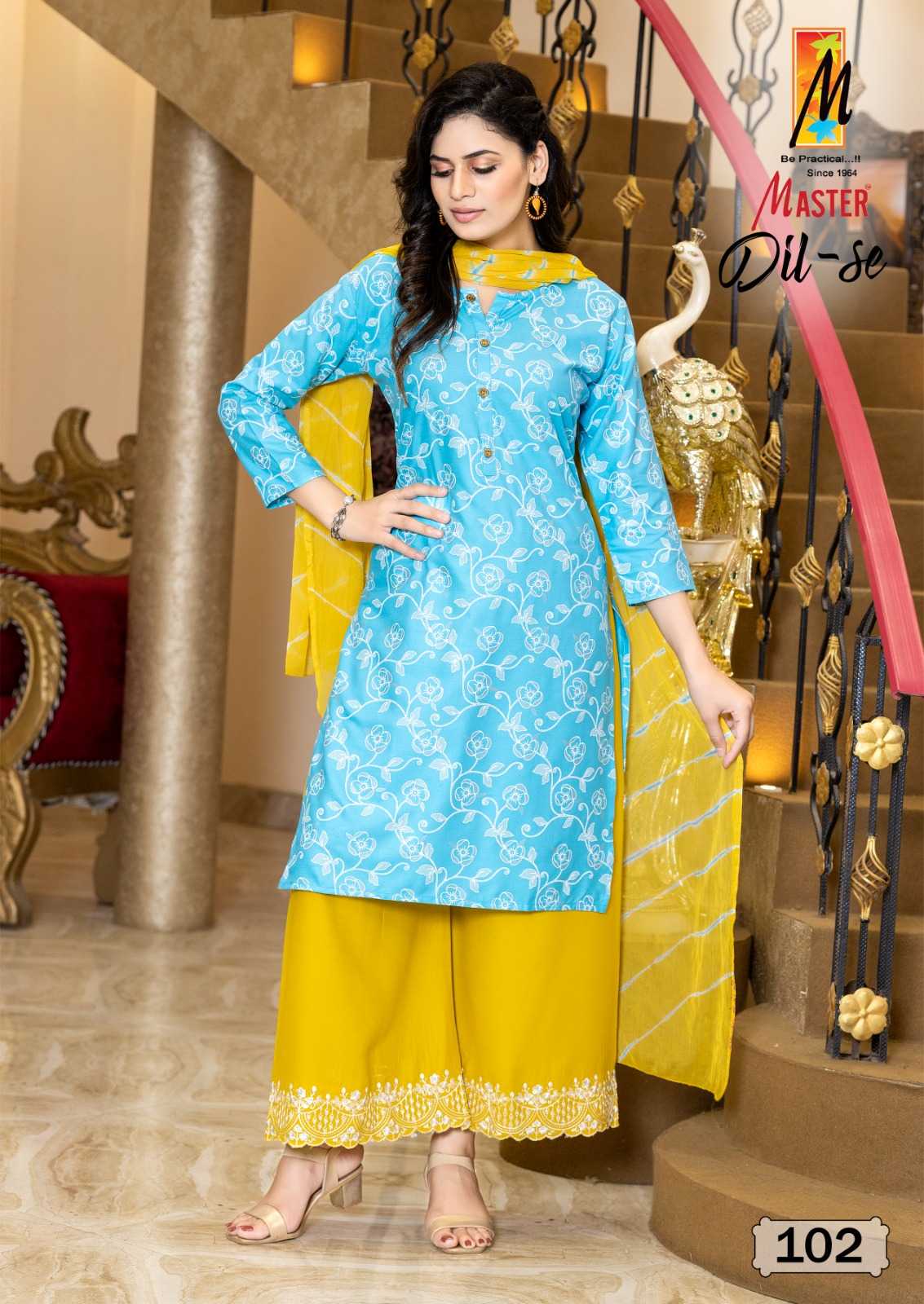 master dil se fullstitch casual wear plazzo kurti with lehariya dupatta