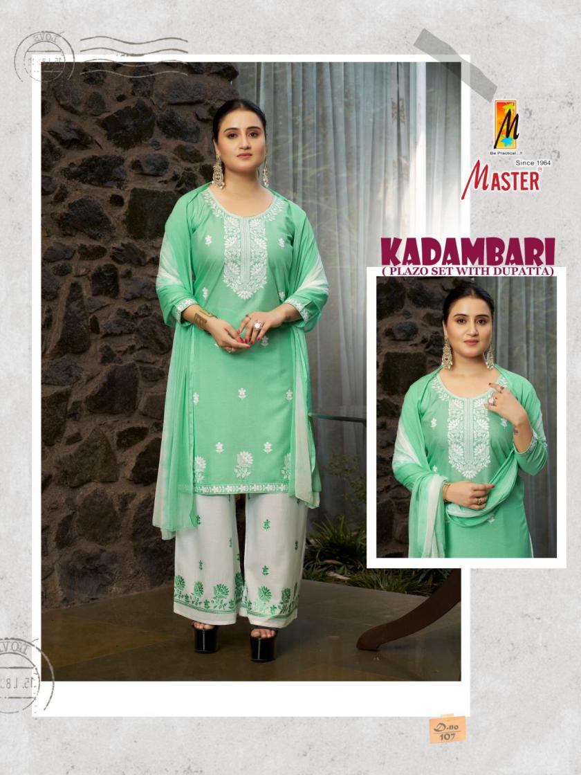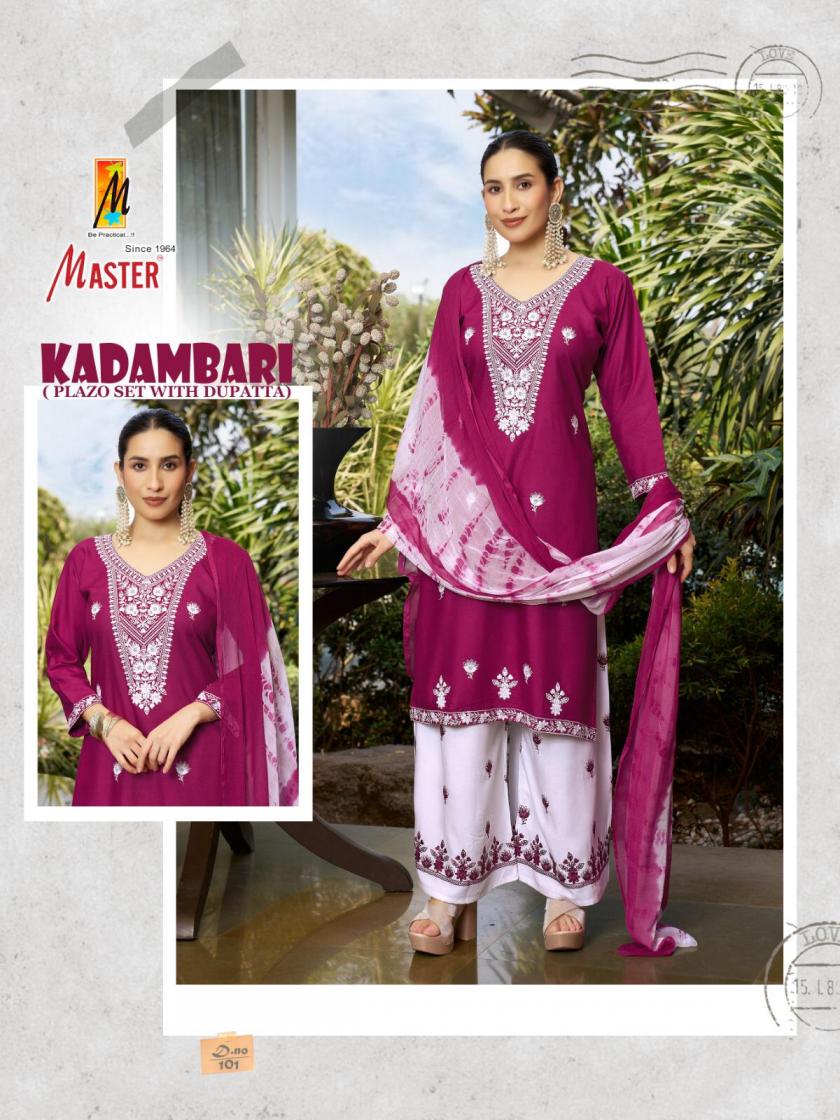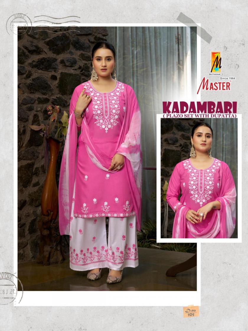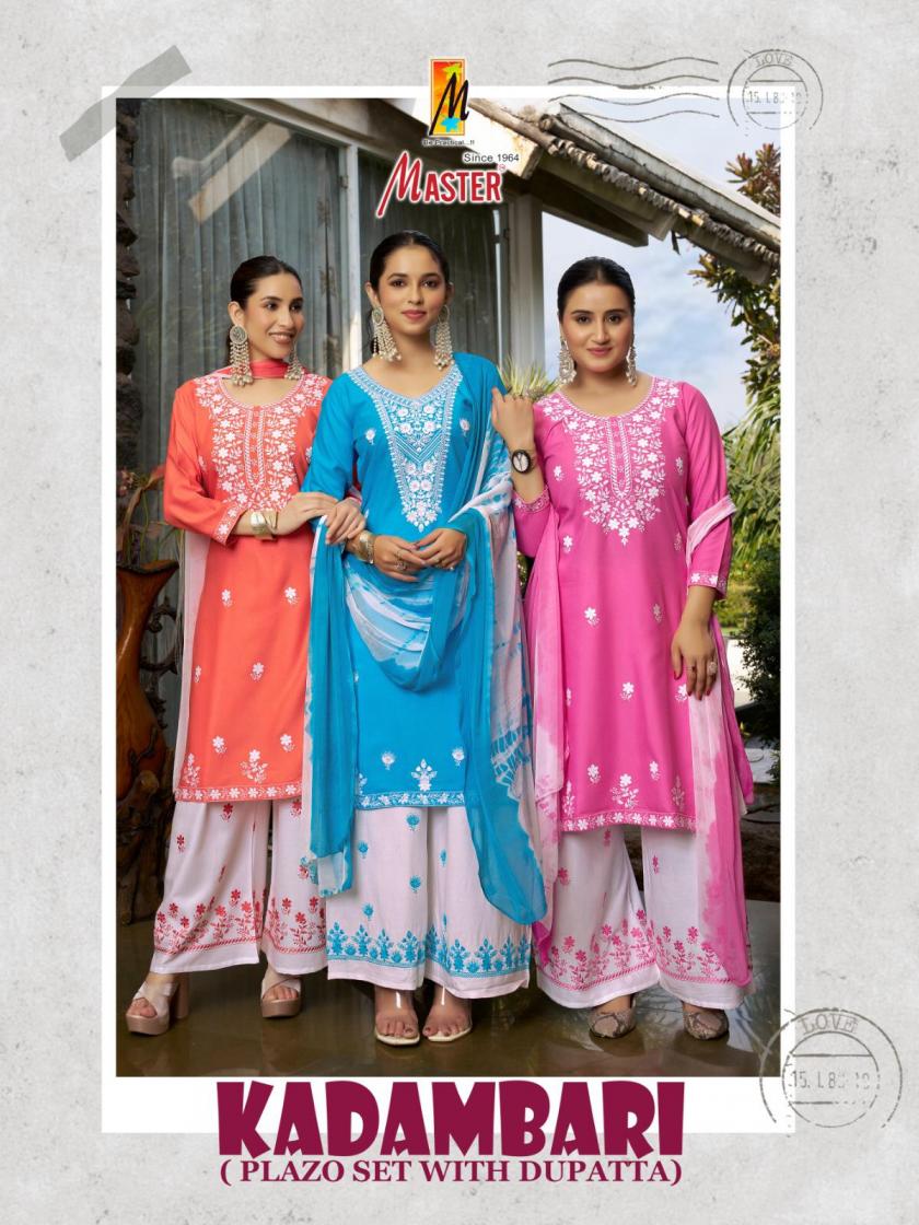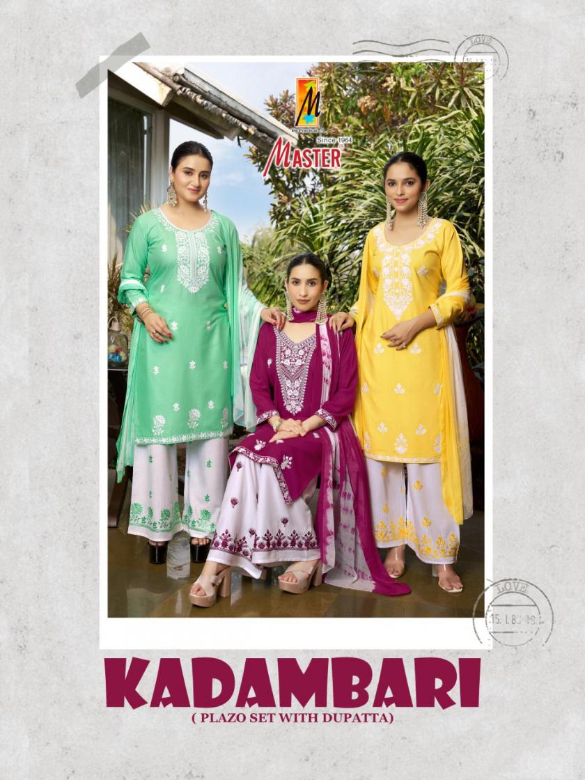 master kadambari rayon readymade classic plazzo style 3pcs dress