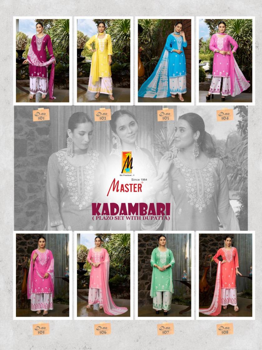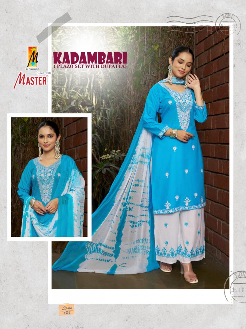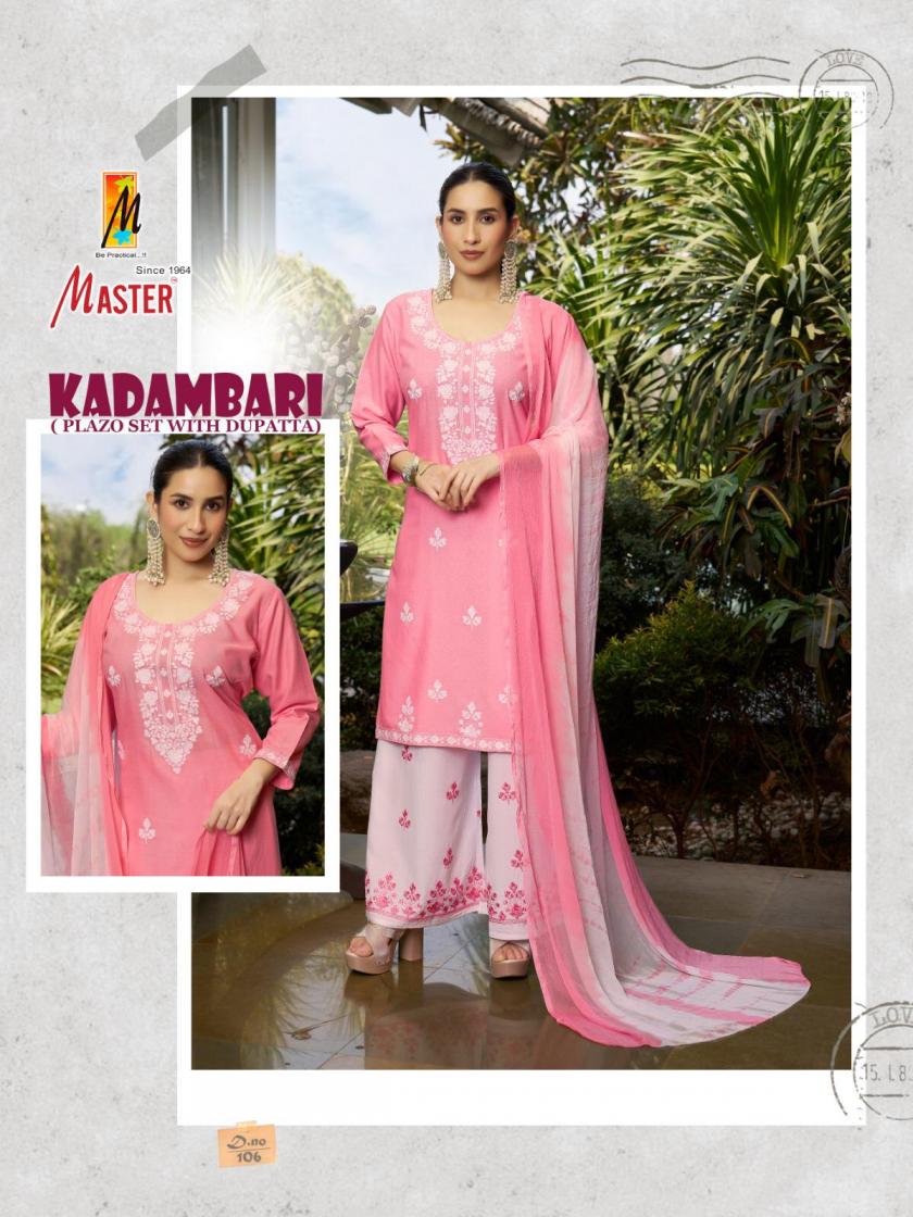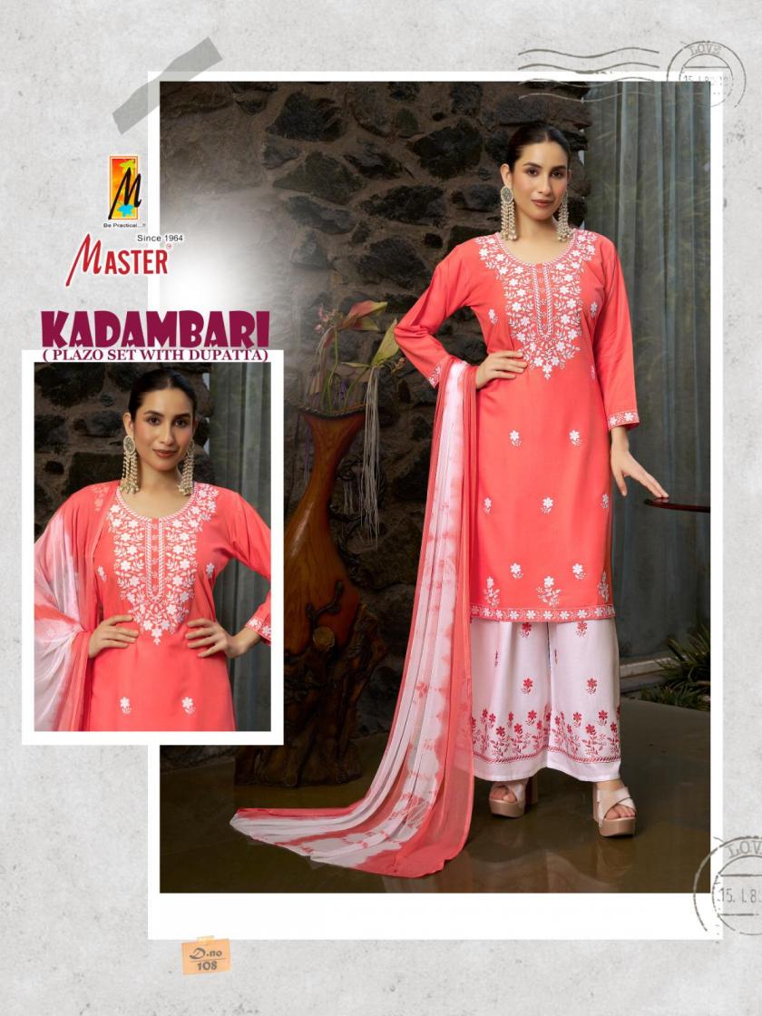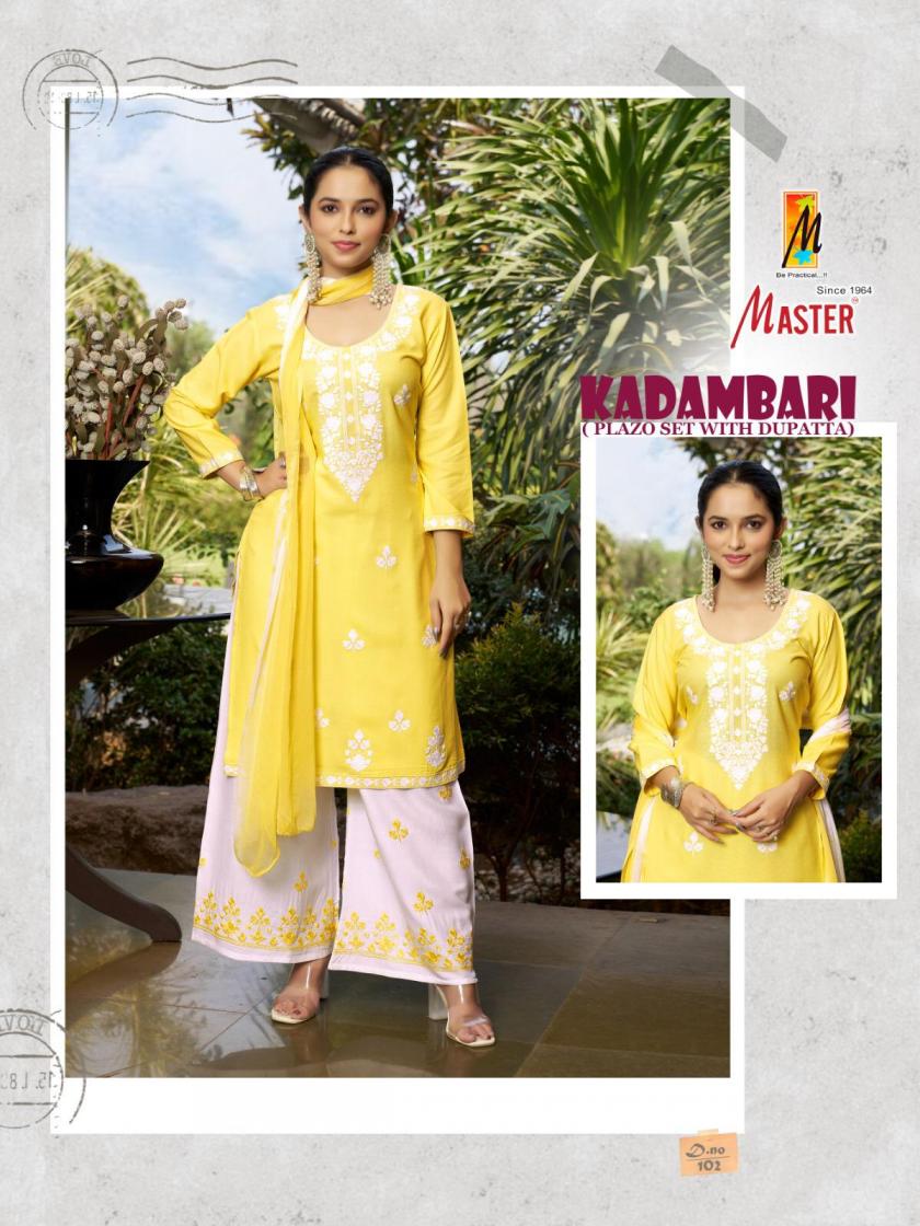 master kadambari rayon readymade classic plazzo style 3pcs dress