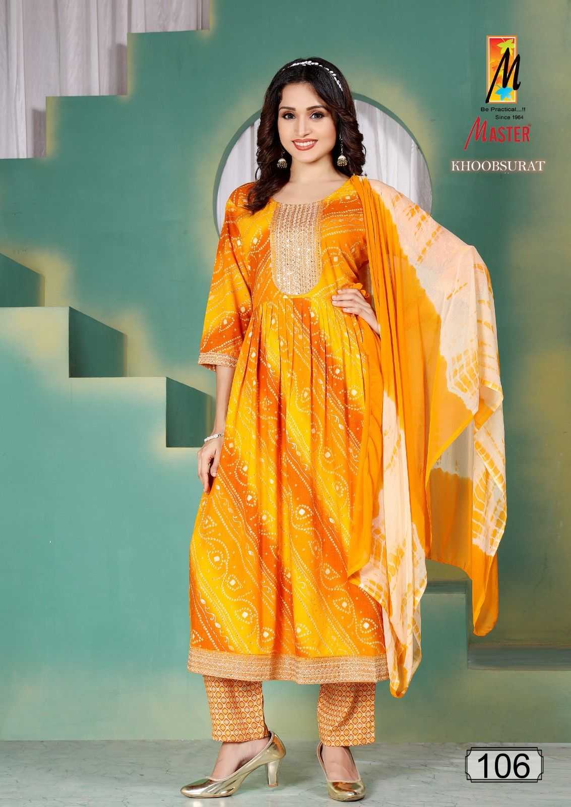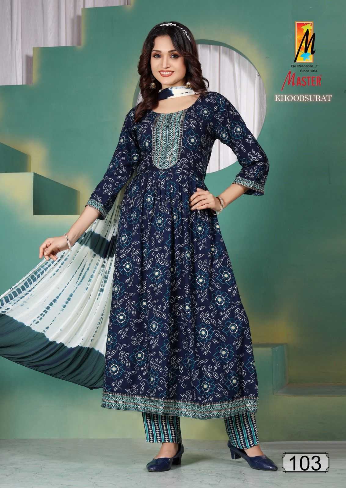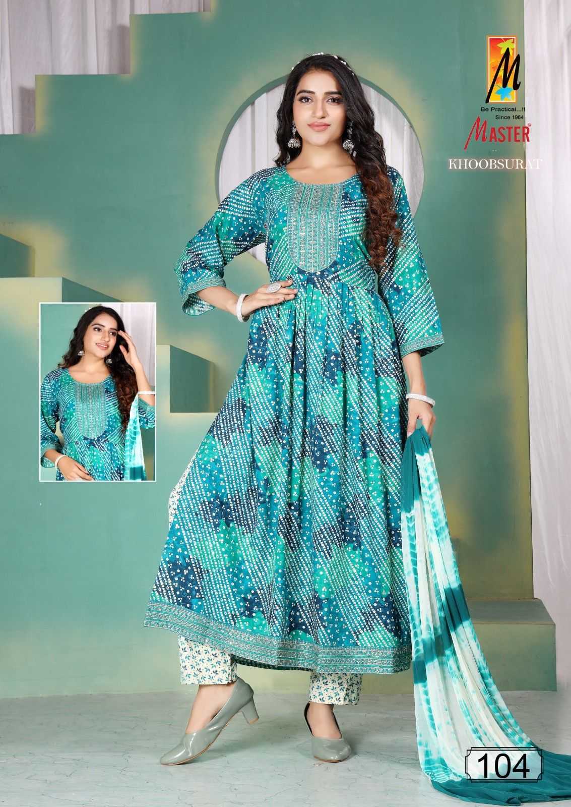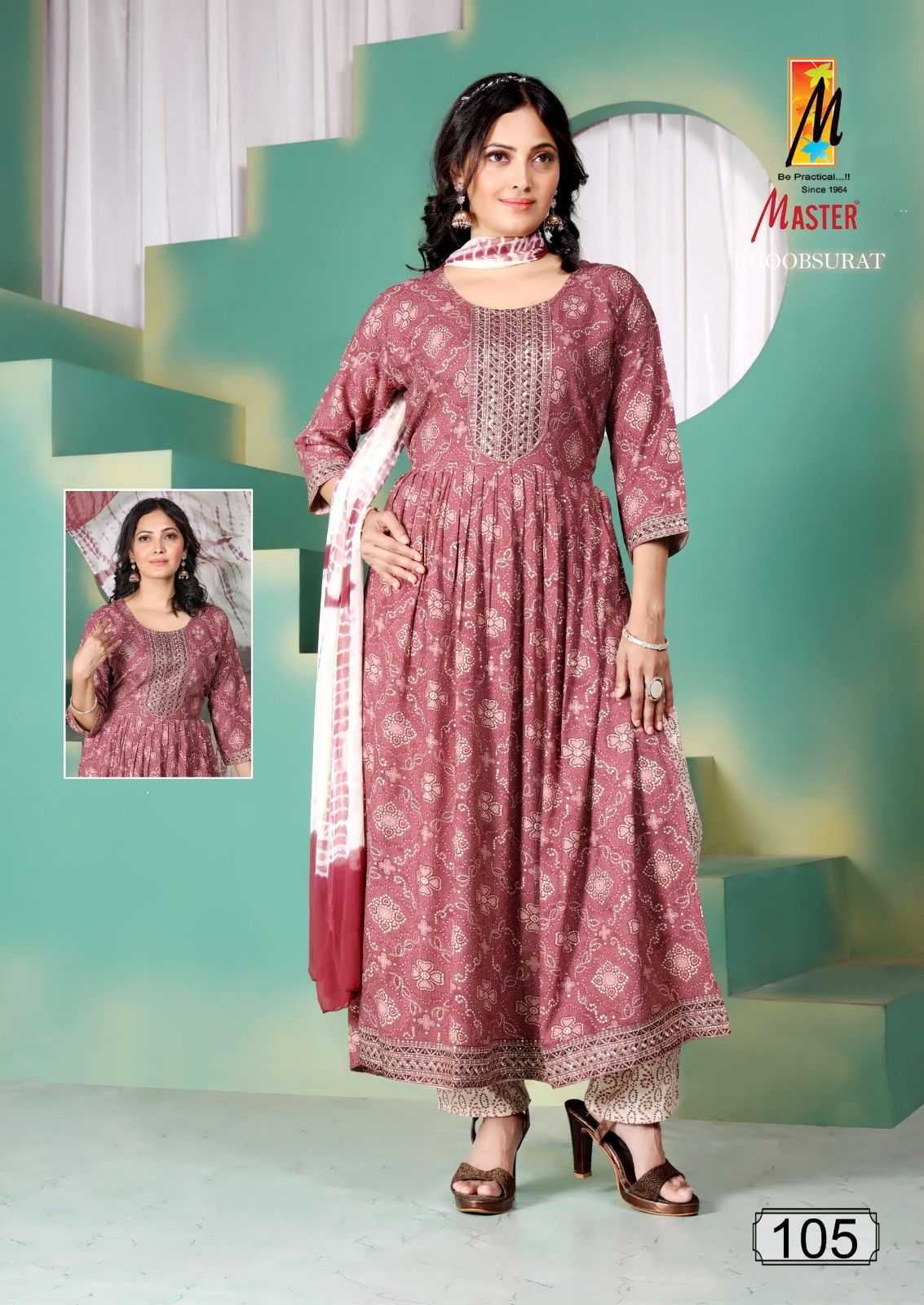 master khoobsurat rayon print nayra cut casula wear full stitch 3pcs dress
