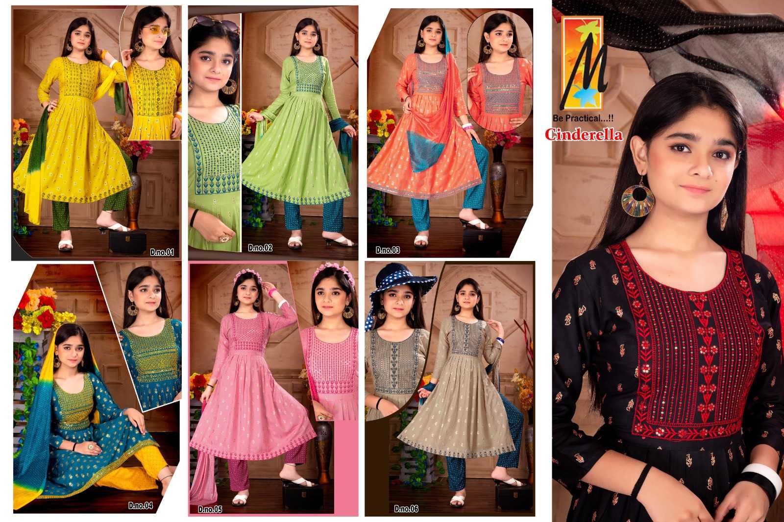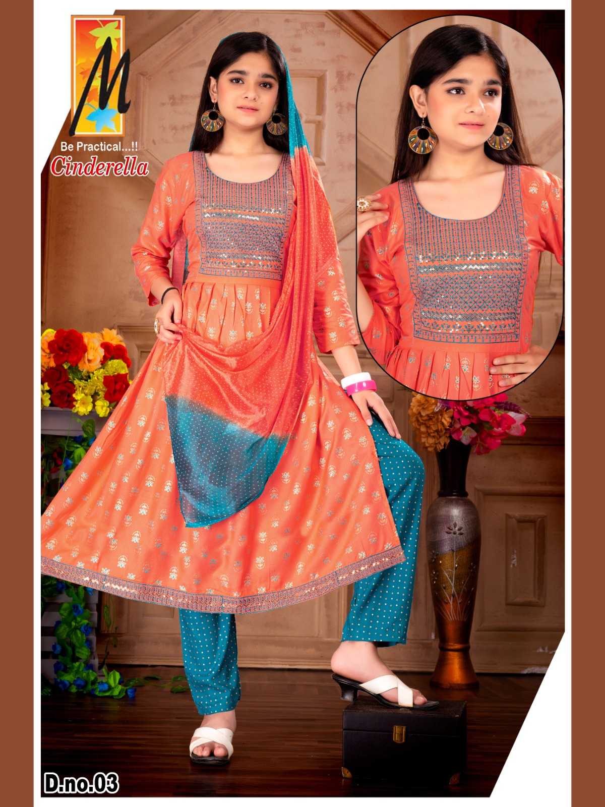 Girls wear Cinderella ( 3 pcs ) Pant: Dupatta: Total sizes: 36 38 40 Total Designs:4 RATE- 520/*- |