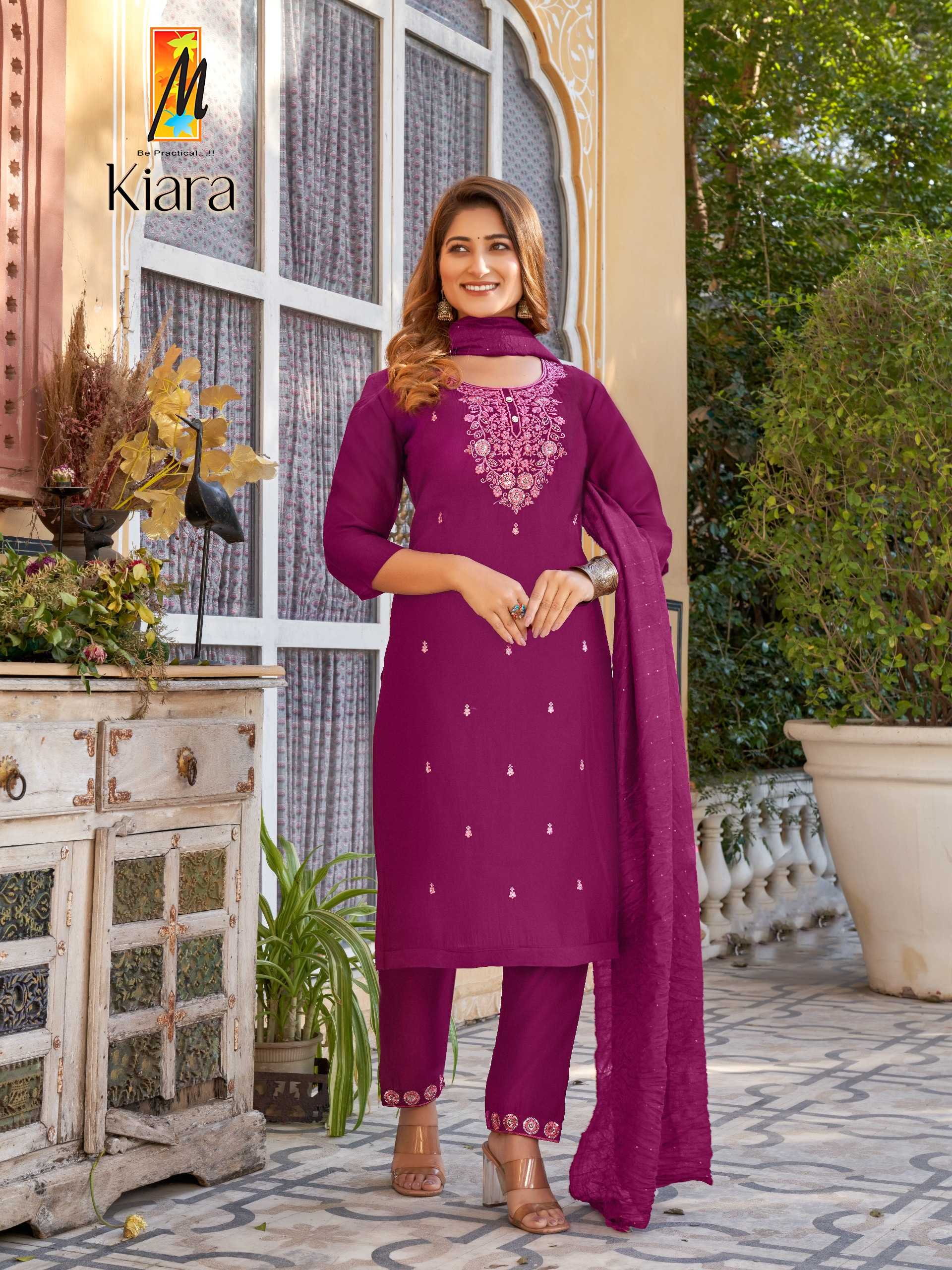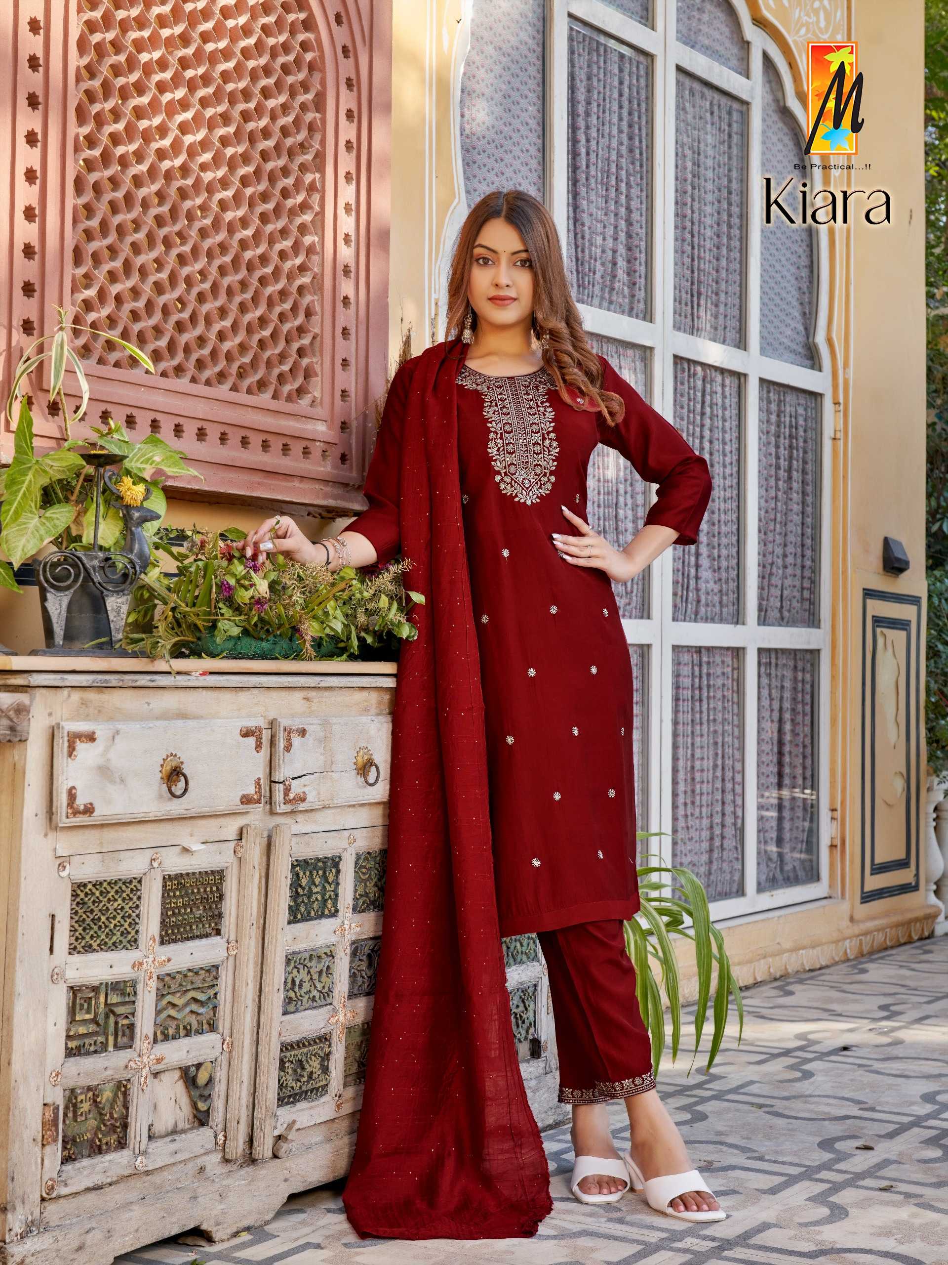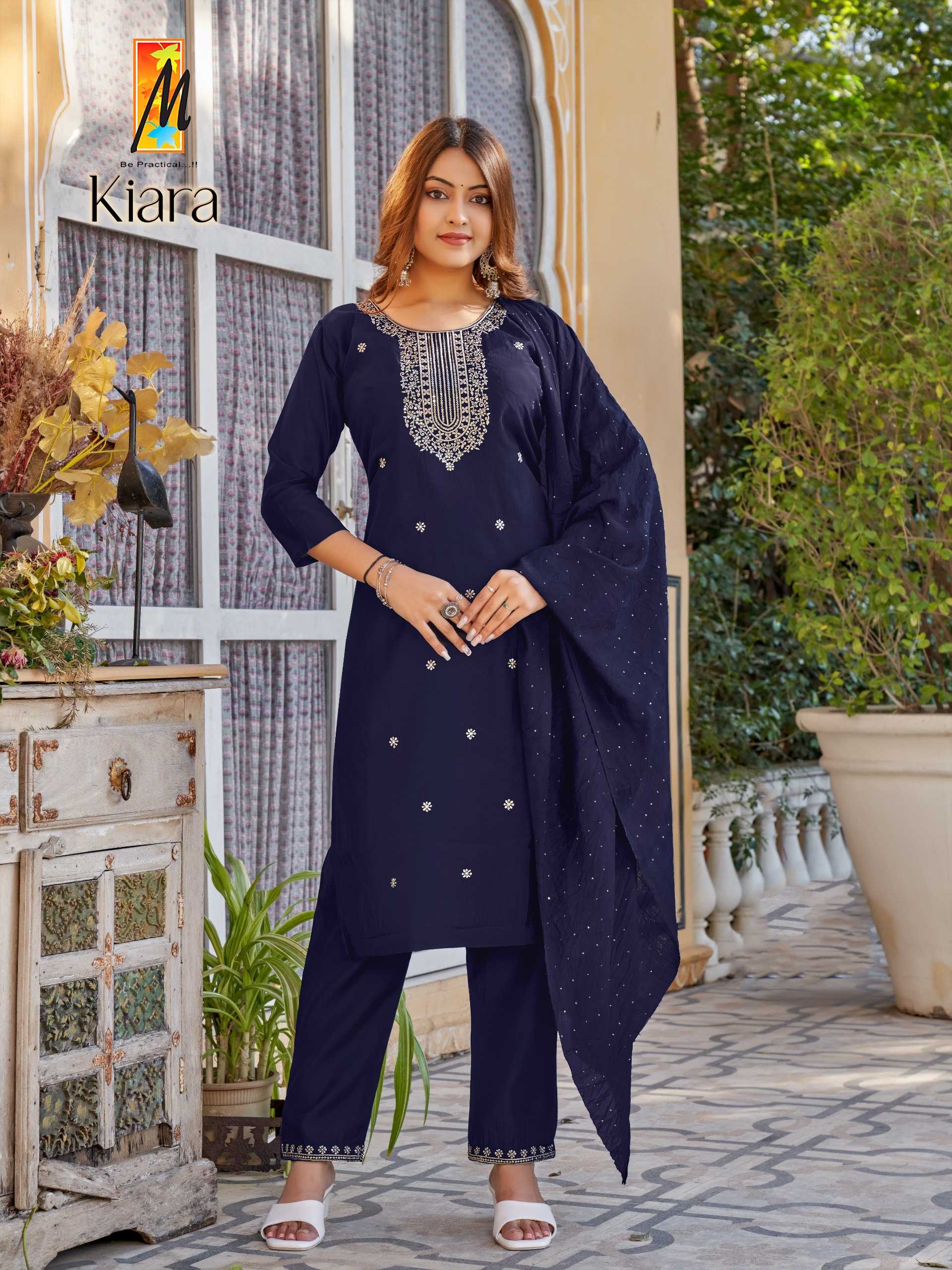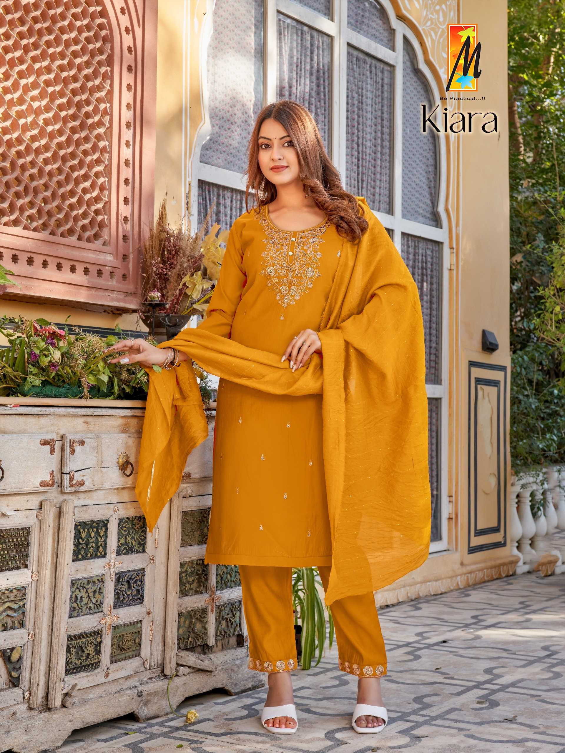 Kiara ( 3 pcs) Top: Bottom: Dupatta: Total design: Total size: RATE-620 |