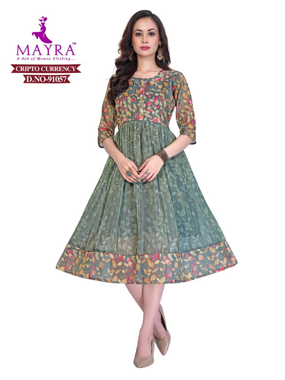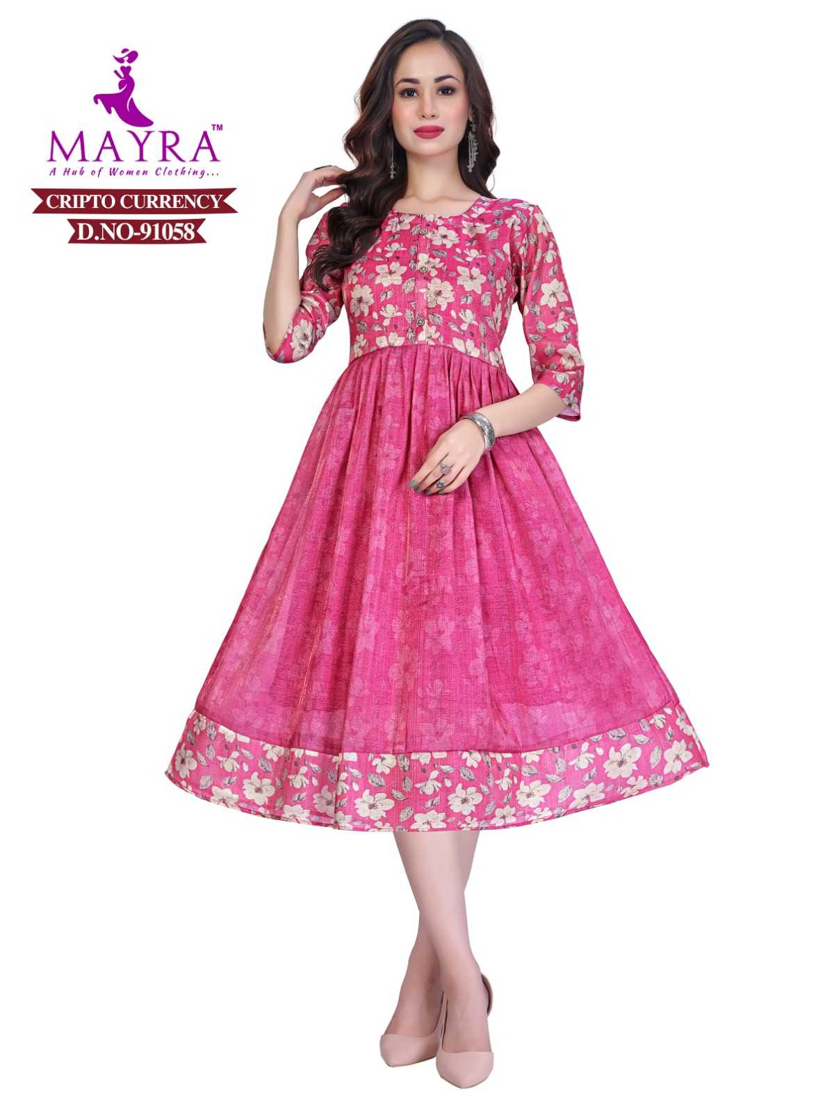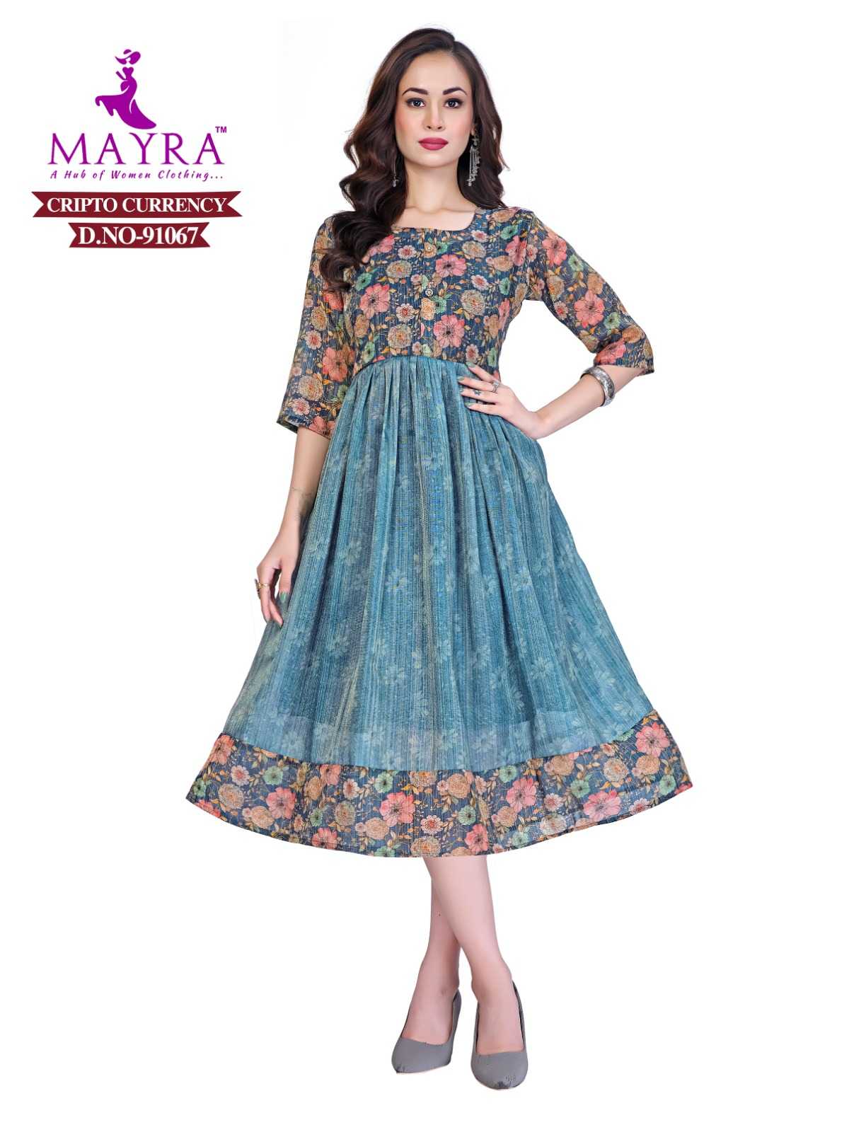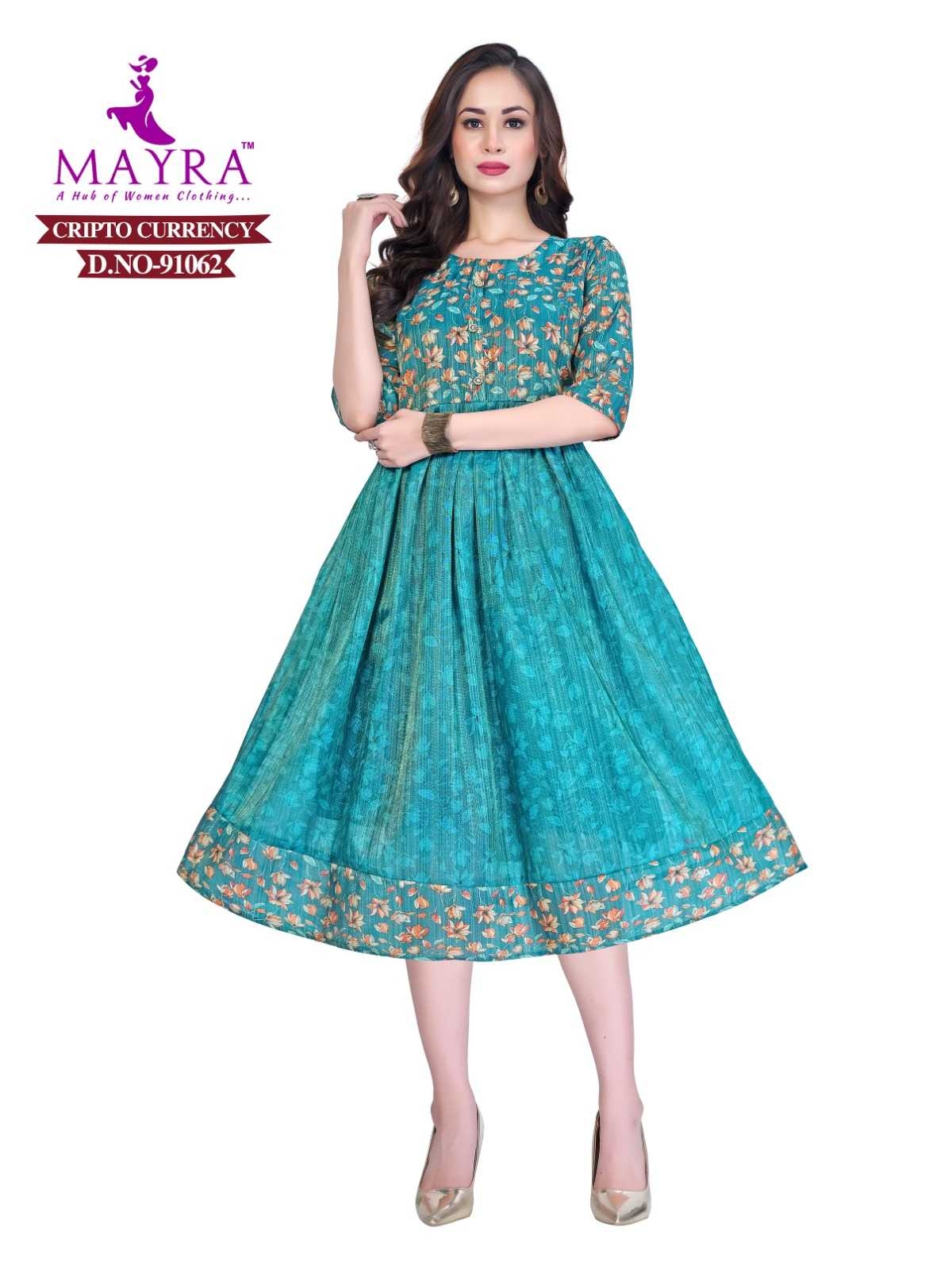 mayra cripto currency fancy silk readymade combo set frock style kurti