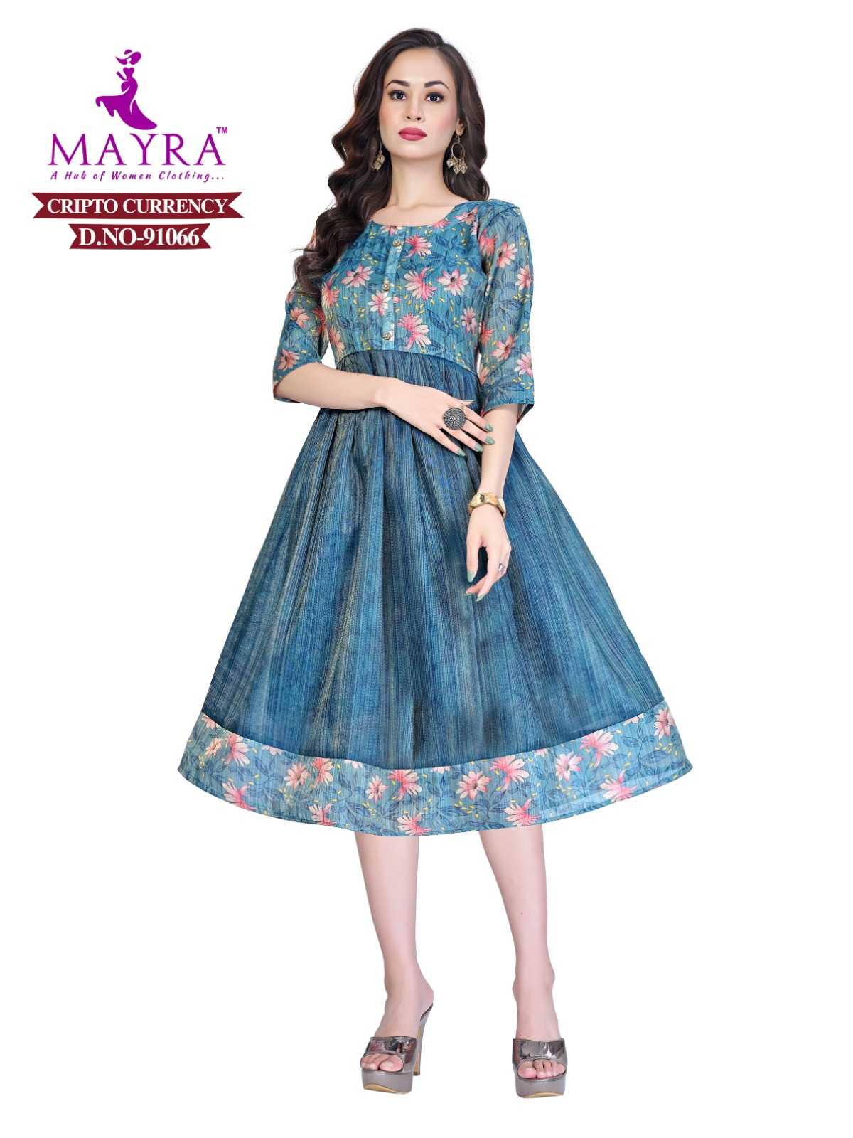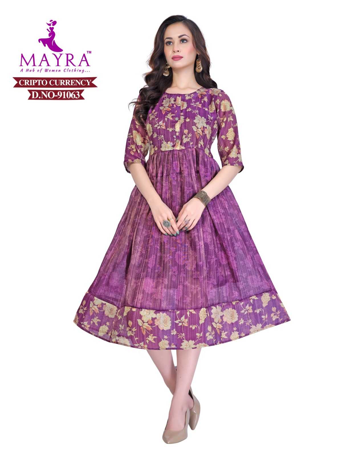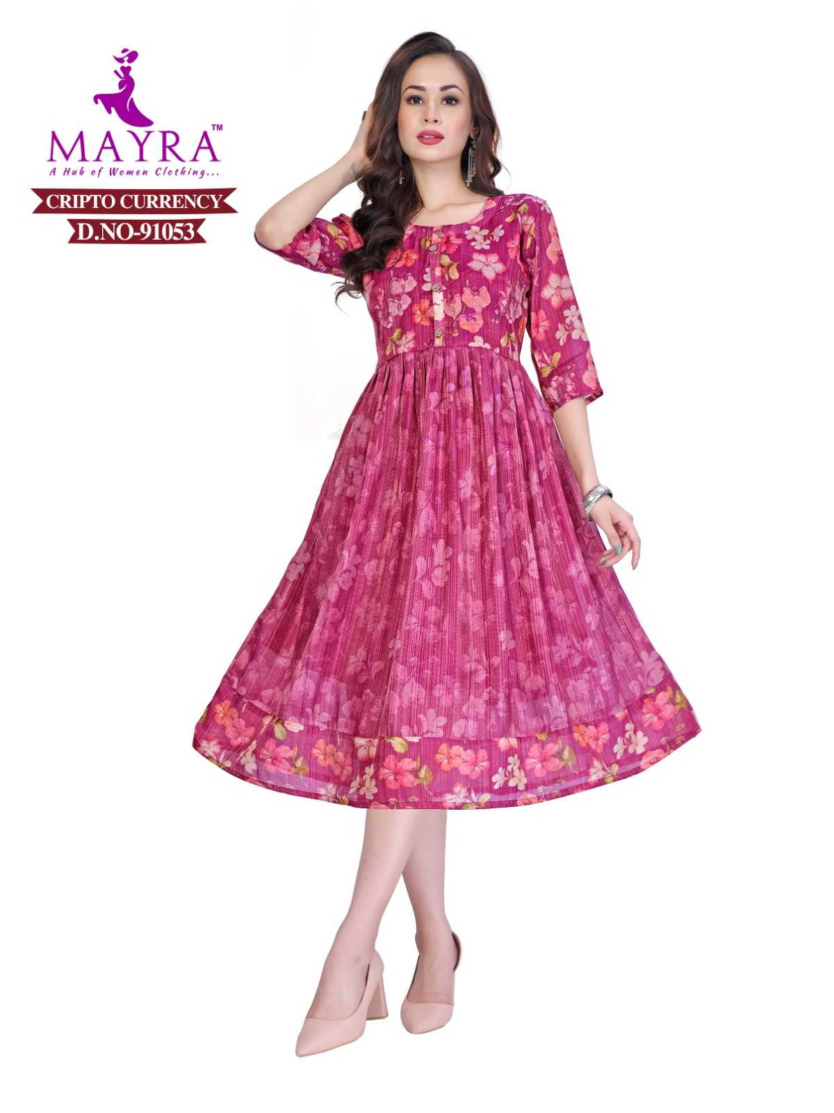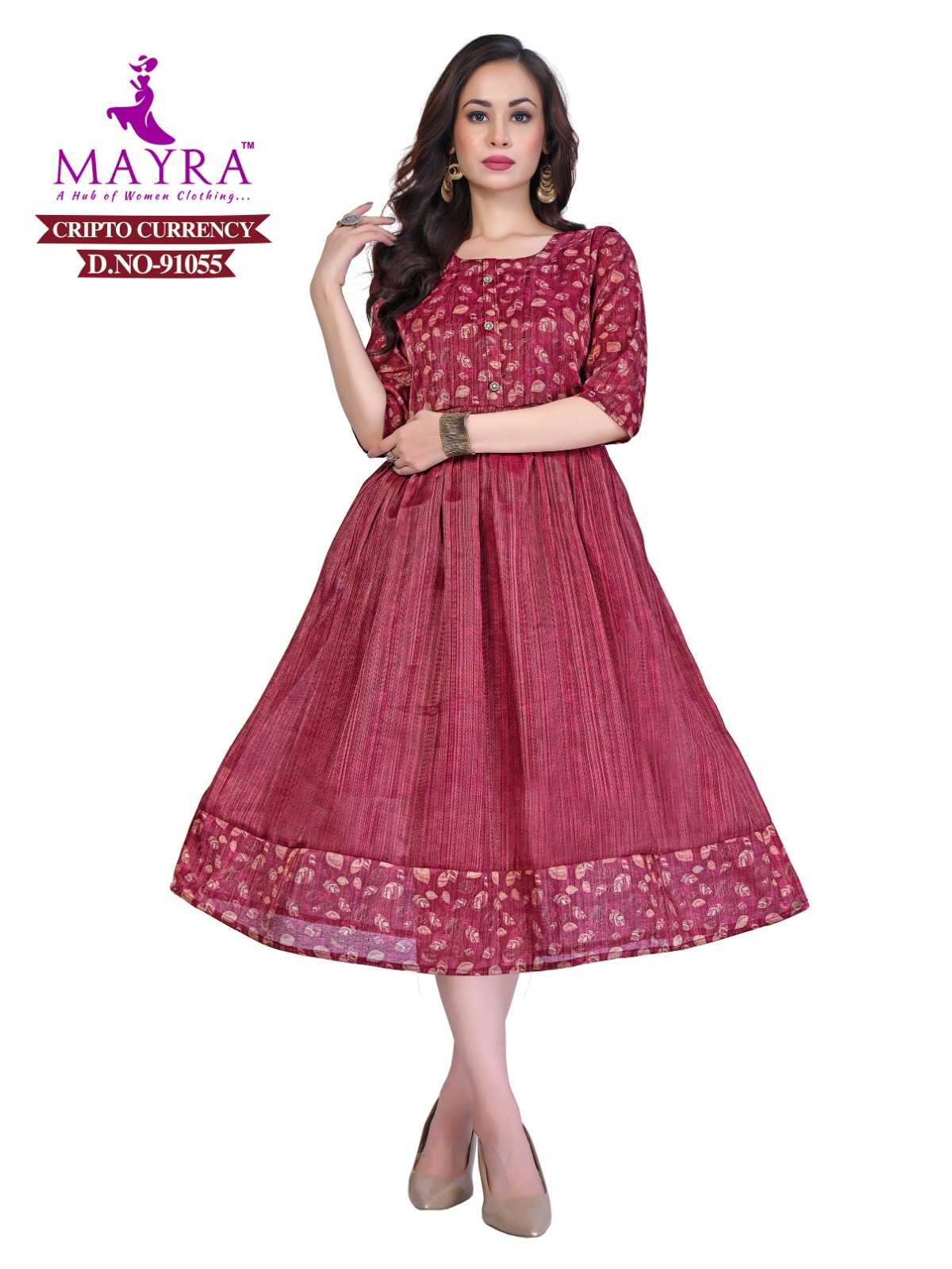 mayra cripto currency fancy silk readymade combo set frock style kurti