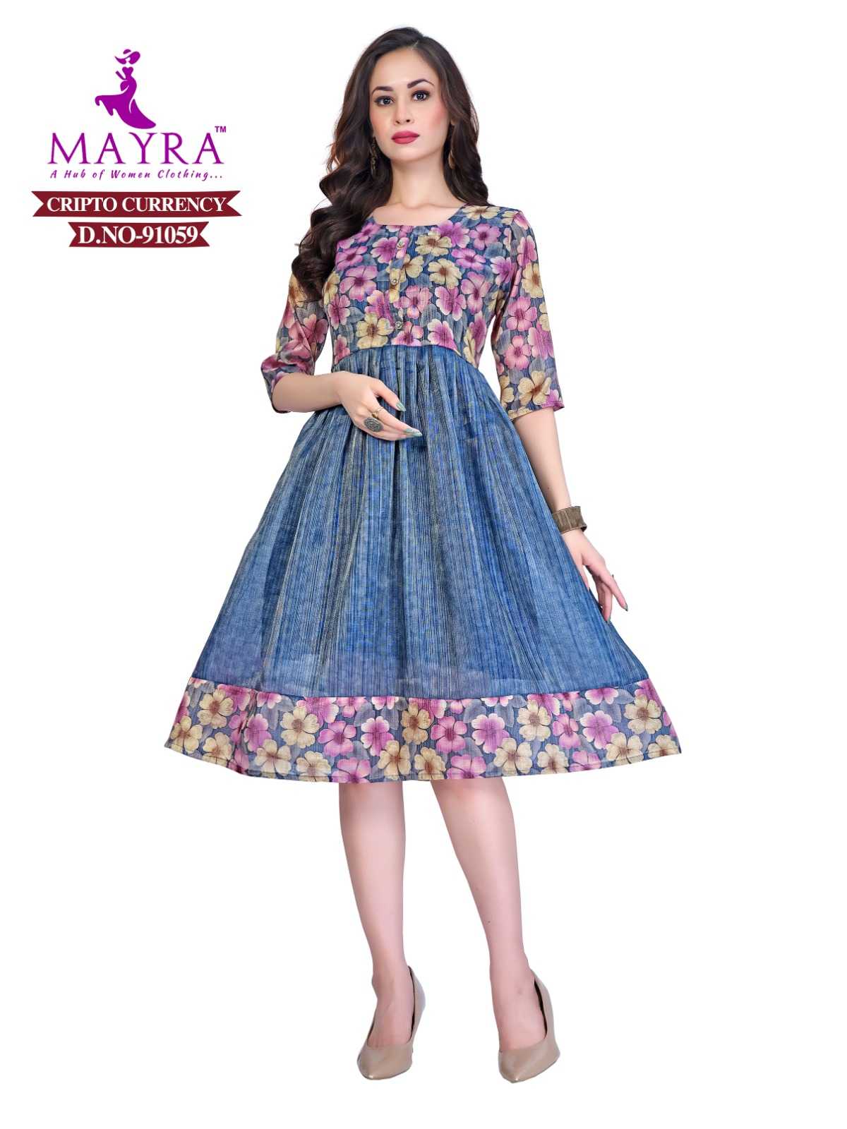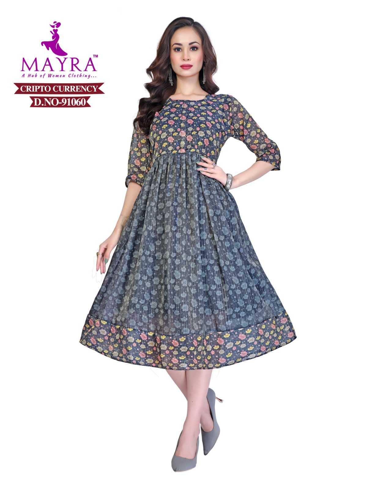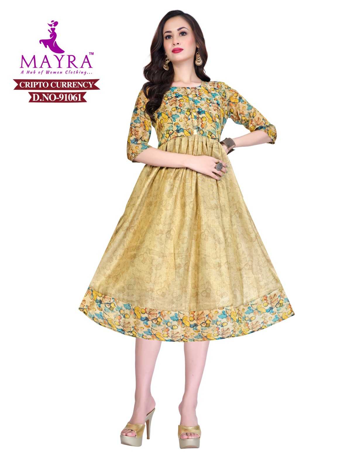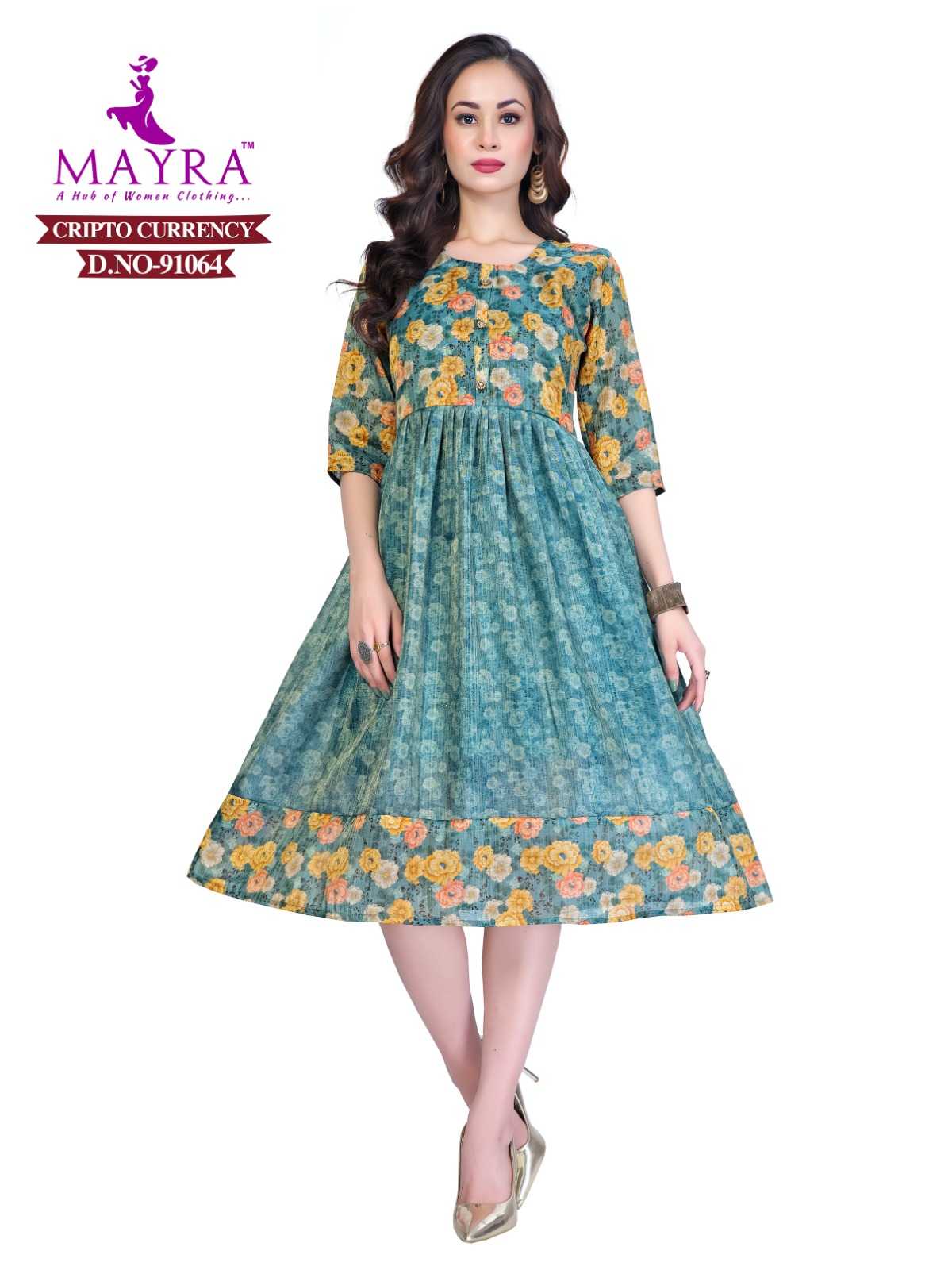 mayra cripto currency fancy silk readymade combo set frock style kurti