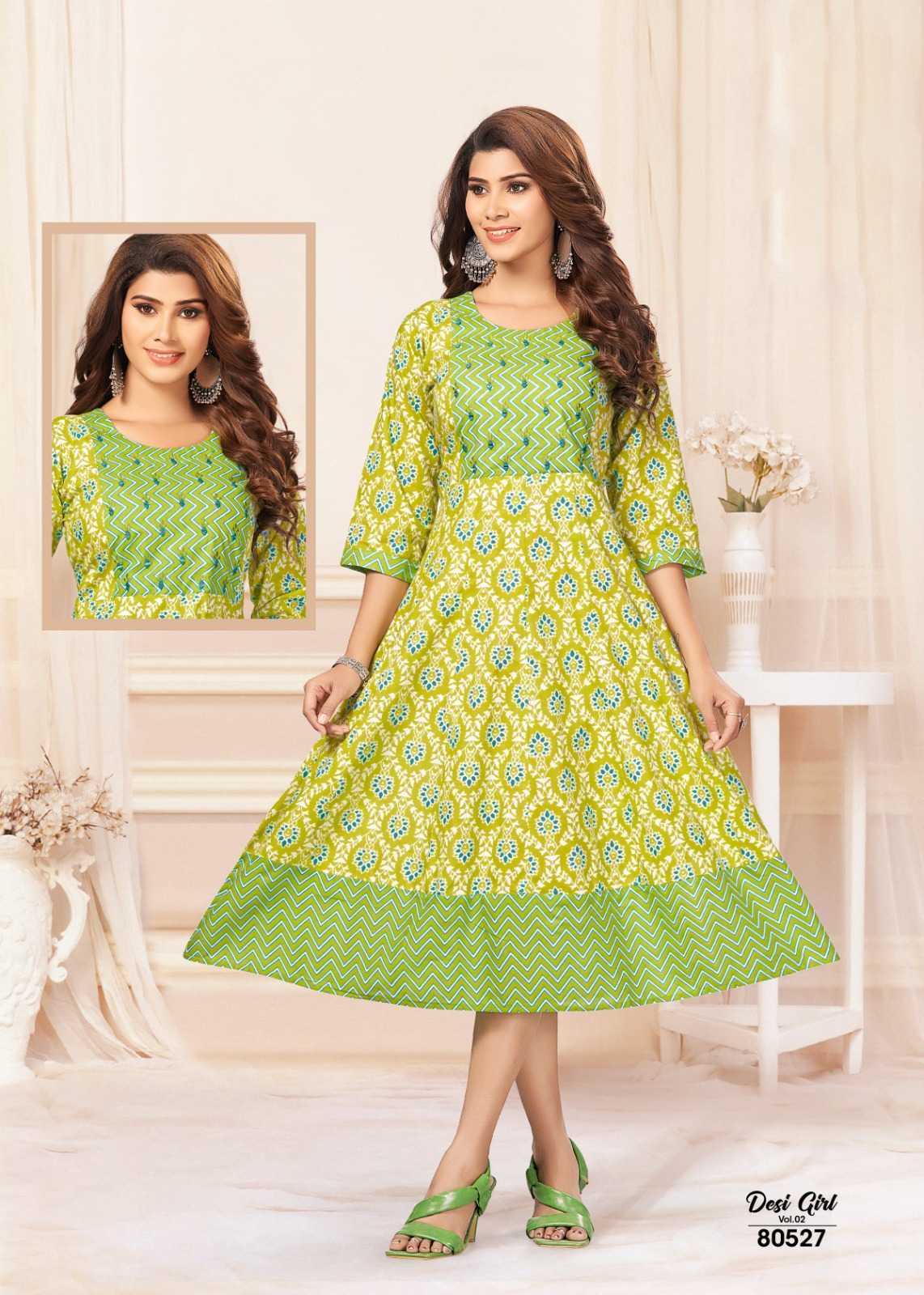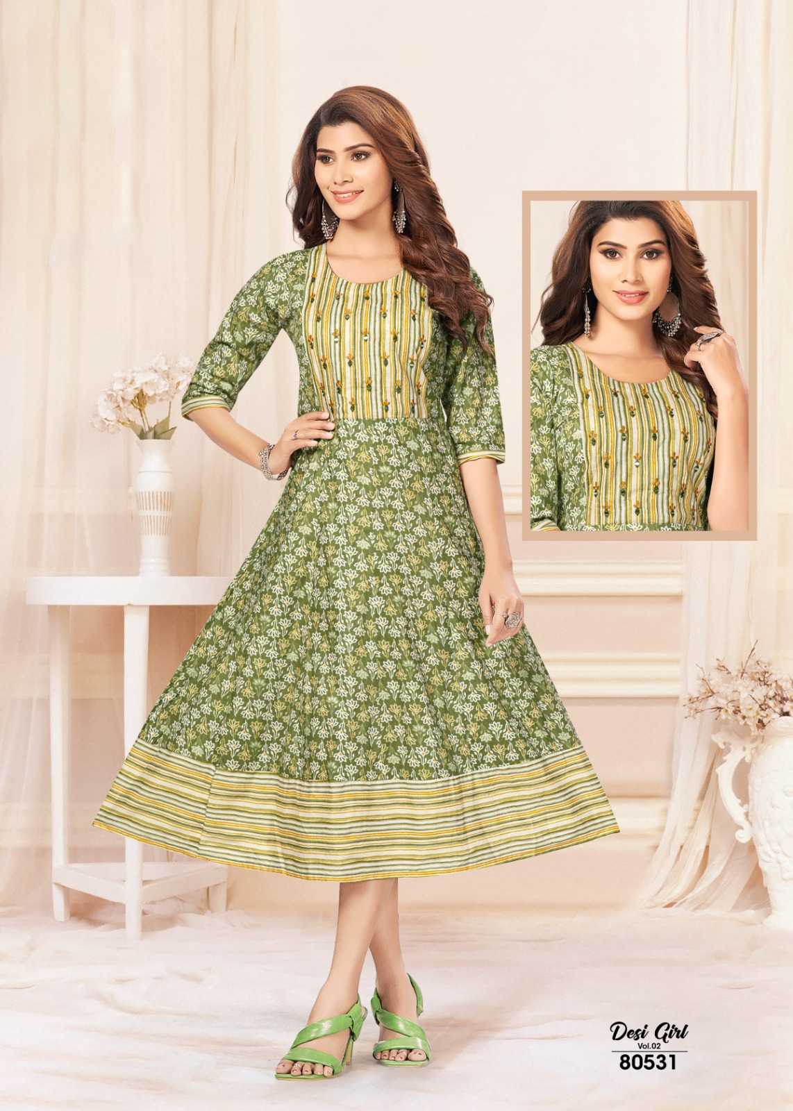 mayra desi girl vol 2 stitched jaipur cotton umbrella style long kurti