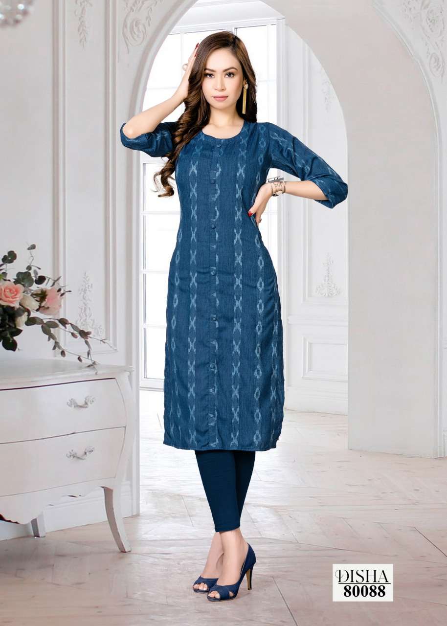 Welcome to MAYRA (KURTI) .., We are introducing MAYRA 'S new catalog 📕Catalogue:- DISHA 👗cloth :- *RAyon Ikkat heavy bombay base fabrics with Stiching pattern * ✅concept :- * Reyon Ikkat base havey bombay base fabrics with Stiching pattern* Length :- 45”MINIMUM