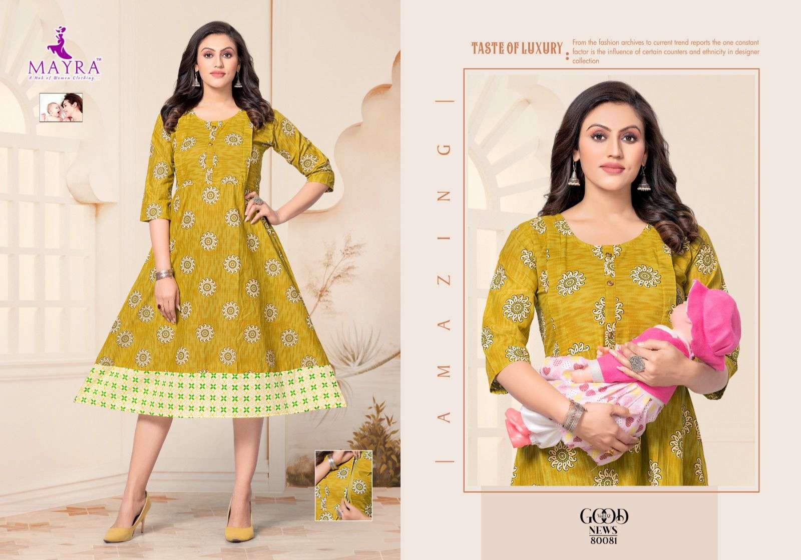 MAYRA GOOD NEWS VOl-2 Pure cambric jaipuri cotton umbrella ghera Feeding kurti with full interlock on each joint KURTI CATALOG WHOLESALER BEST RATE