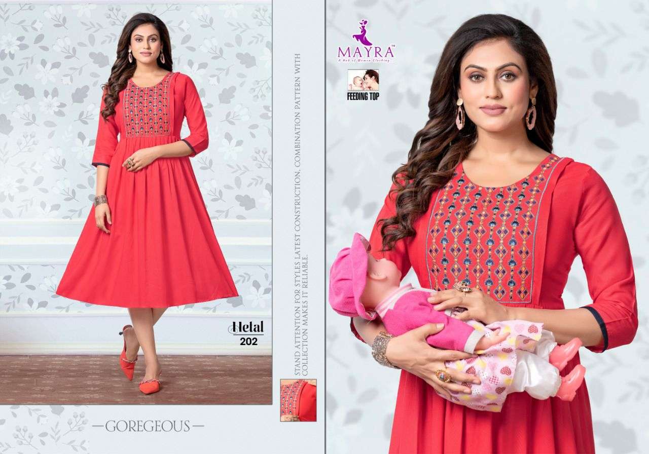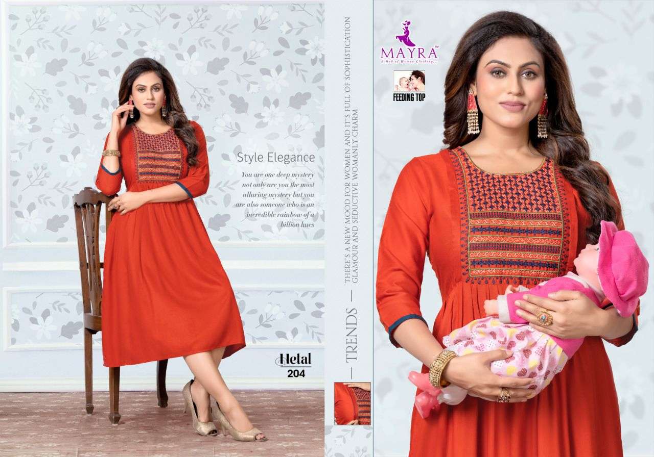MAYRA HETAL HEAVY REYON 14 kg Rayon Slub Embroydrey Feeding top CONCEPT KURTI CATALOG WHOLESALER BEST RATE