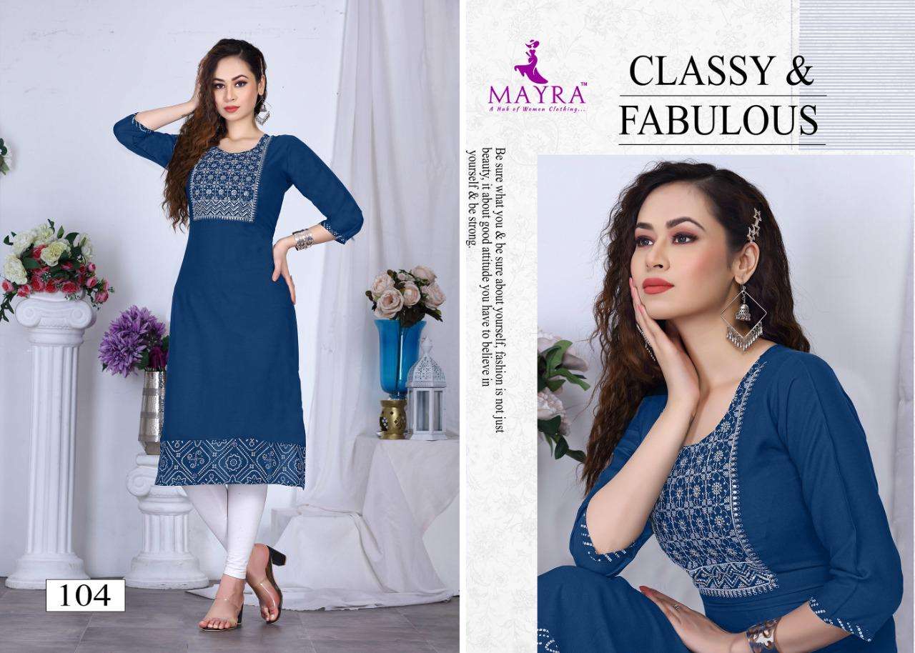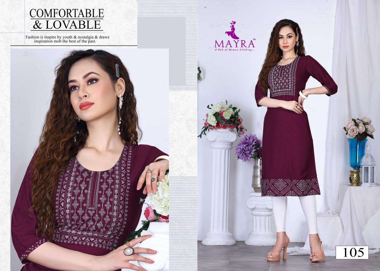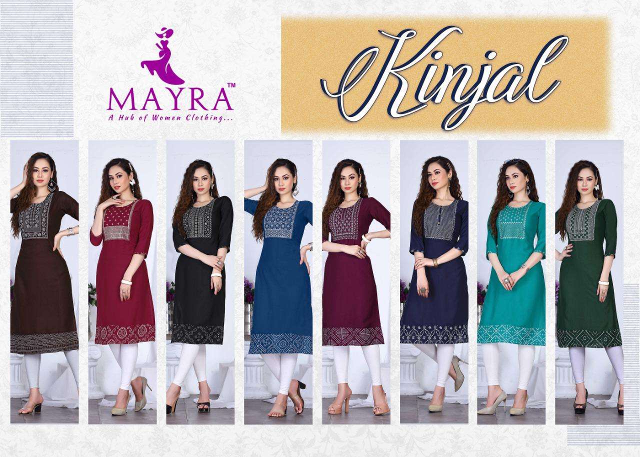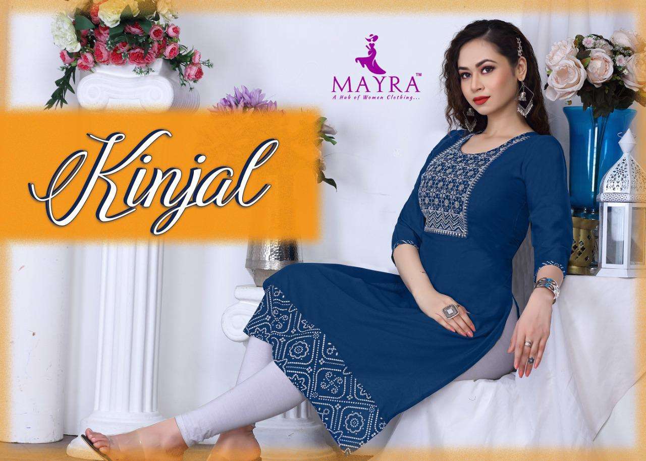 MAYRA KINJAL HEAVY Reyon plain 14kg with sequence Embroydrey and stiching pattern KURTI CATALOG WHOLESALER BEST RATE