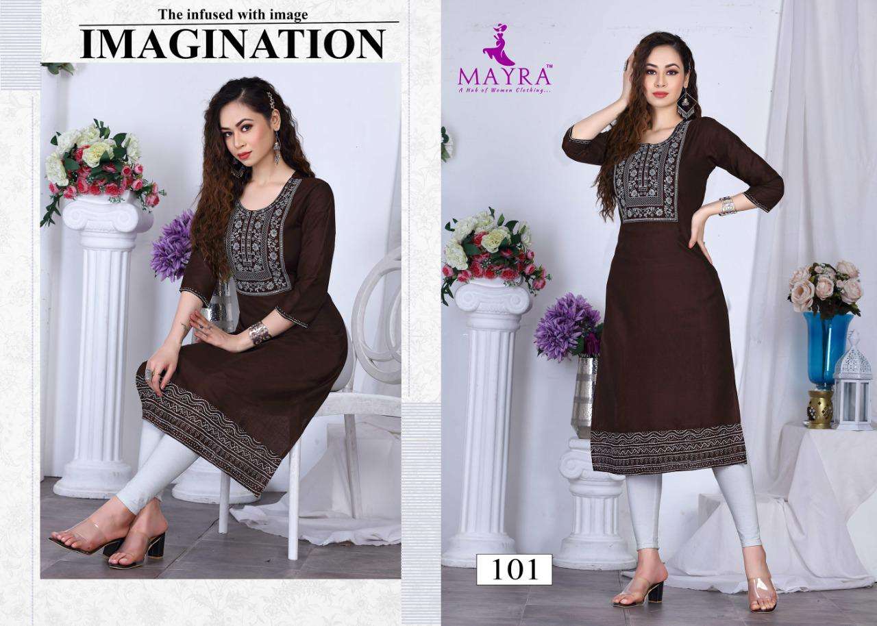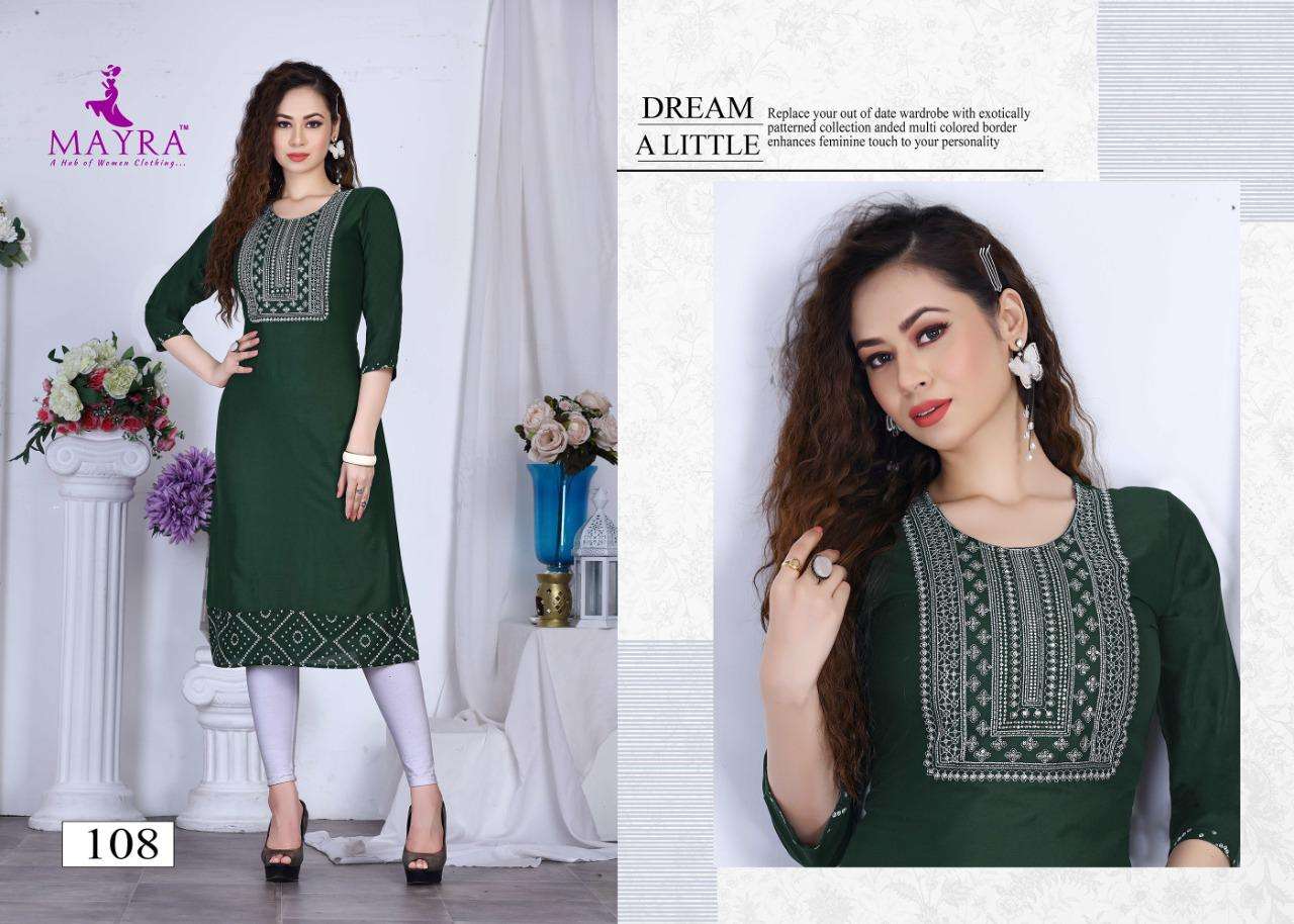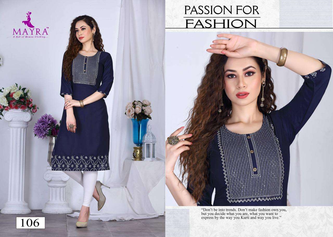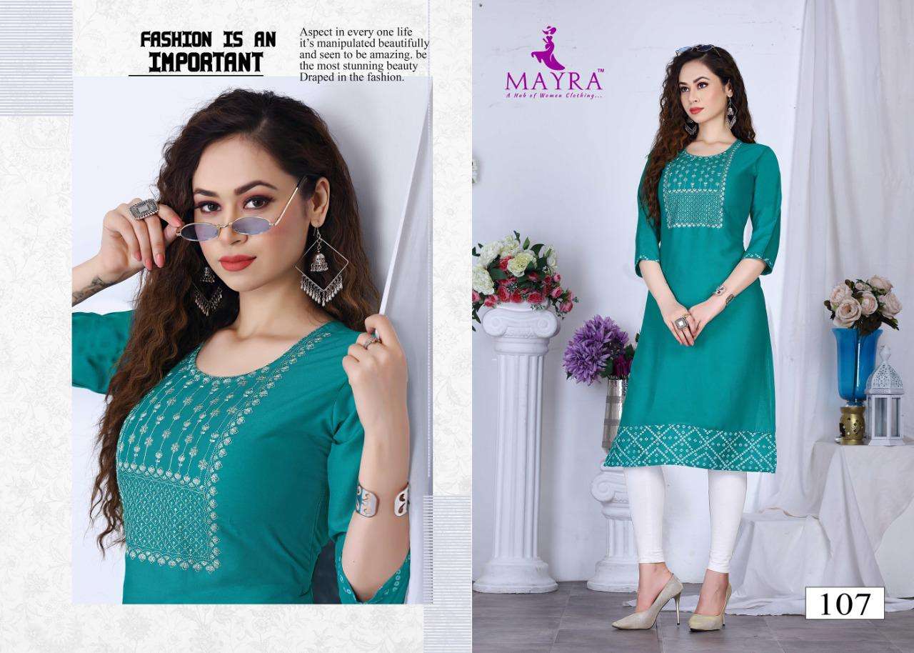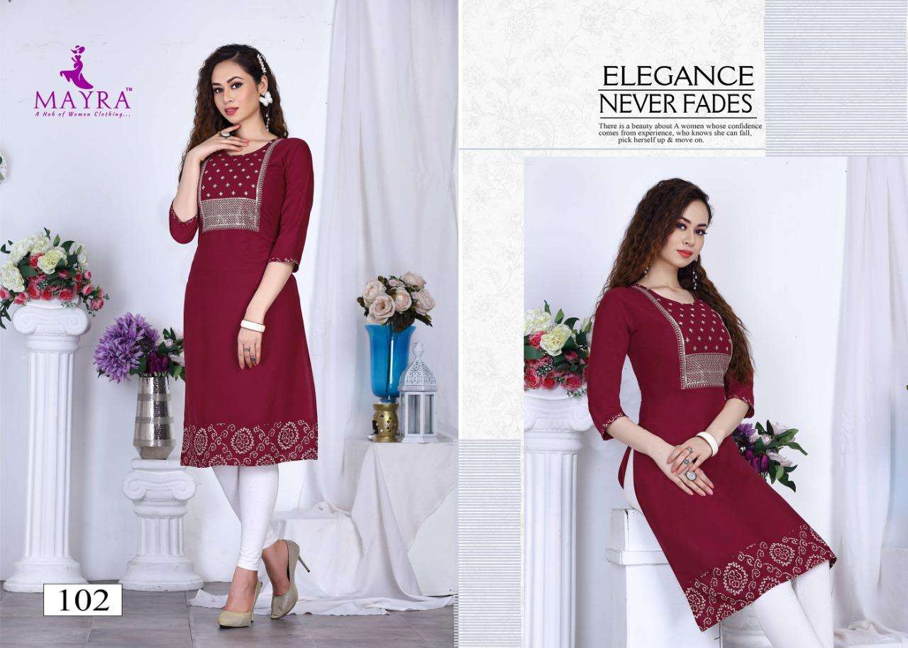 MAYRA KINJAL HEAVY Reyon plain 14kg with sequence Embroydrey and stiching pattern KURTI CATALOG WHOLESALER BEST RATE
