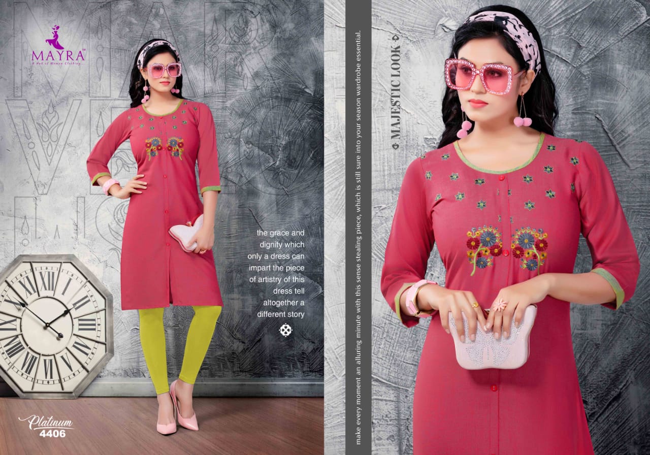 Mayra Launch Platinum Rayon Regular Wear Kurti At Cheapest Rate In Surat Market