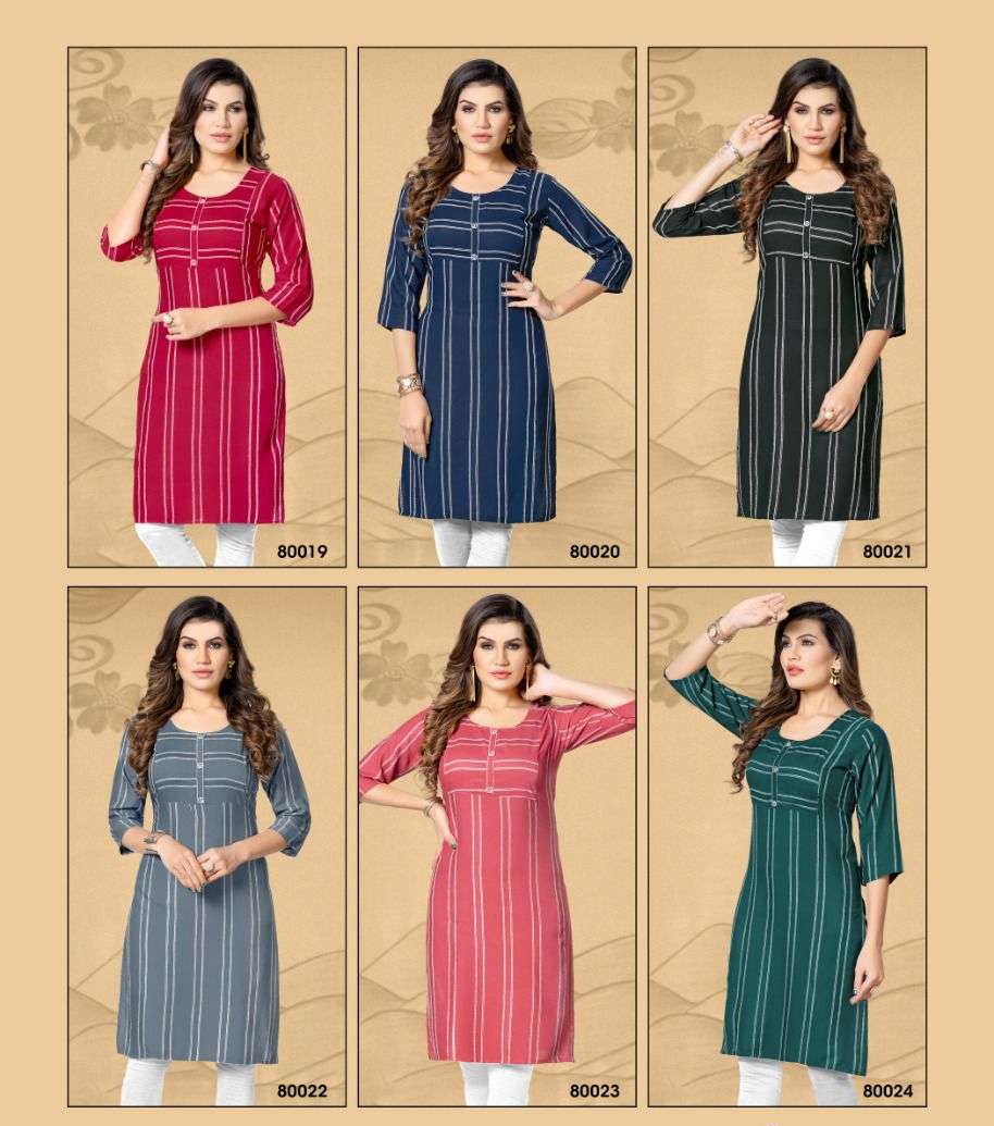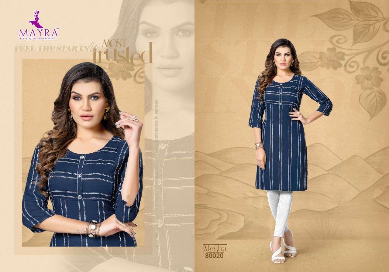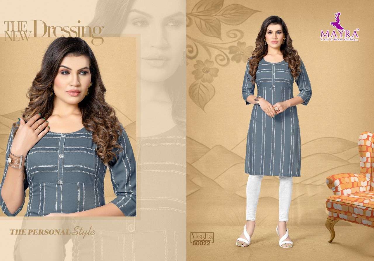 MAYRA Megha RAyon Stripes heavy bombay base fabrics with Stiching pattern KURTI CATALOG WHOLESALER BEST RATE