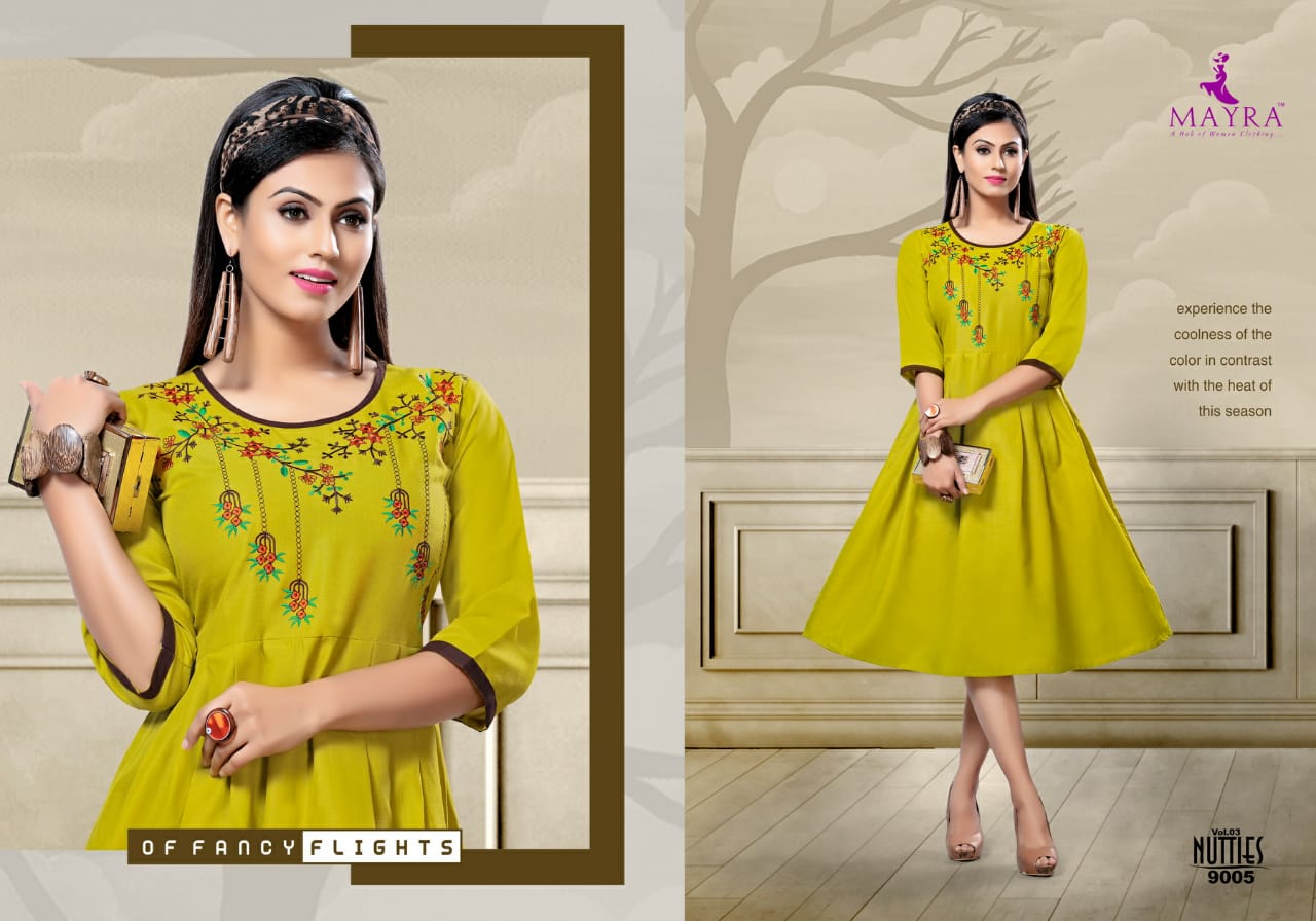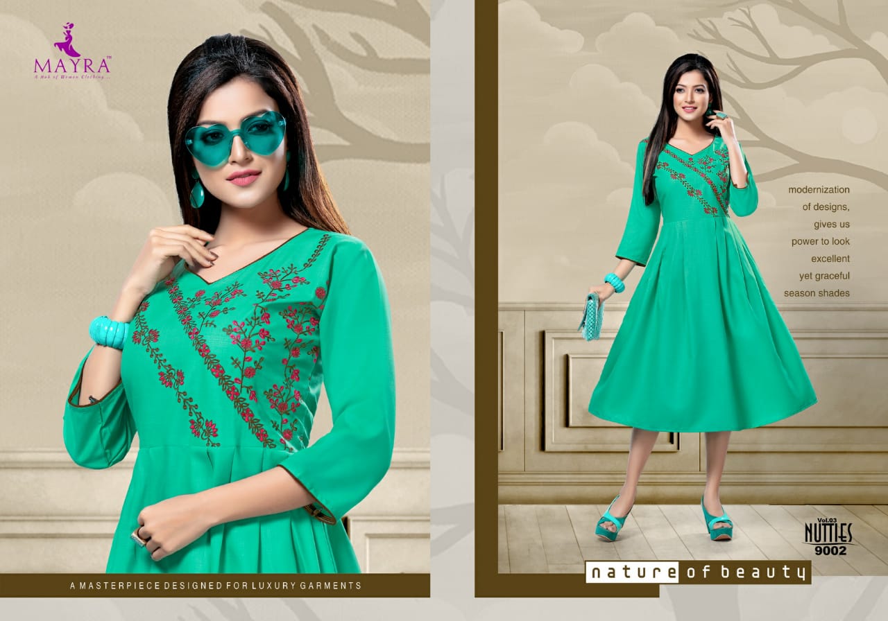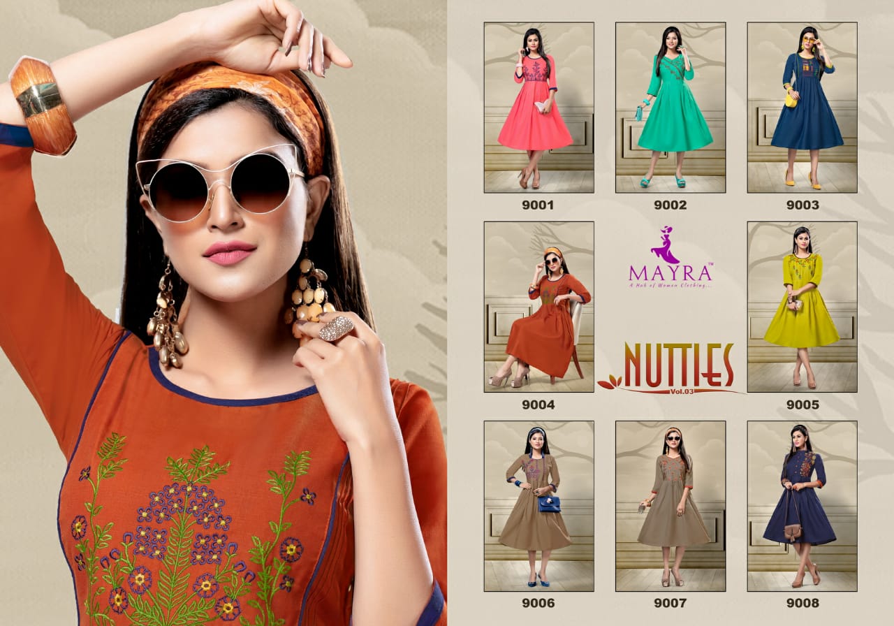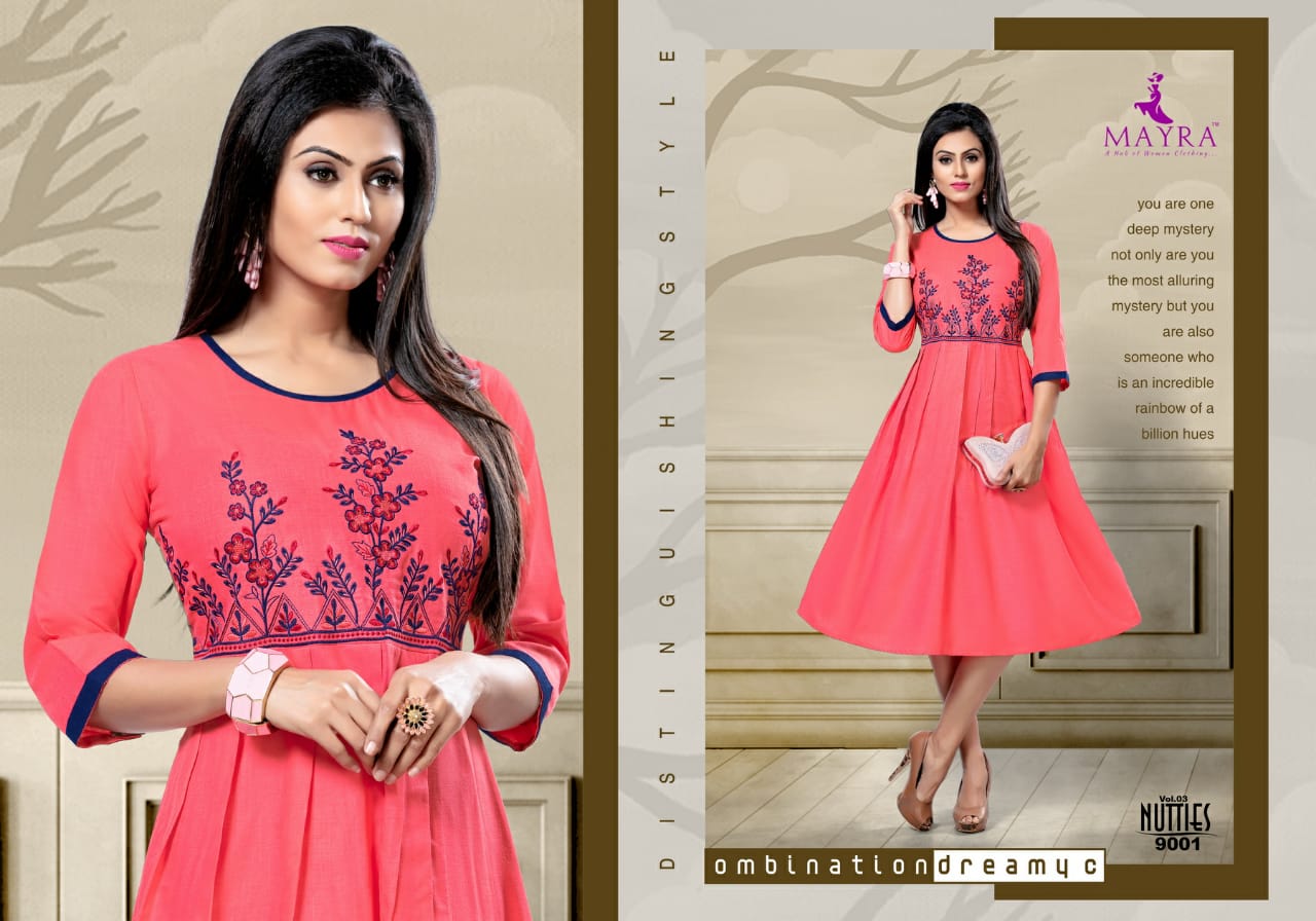Mayra Nutties Cotton Slub Regular Wear Anarkali Style9001-9008 Series Kurti Collection