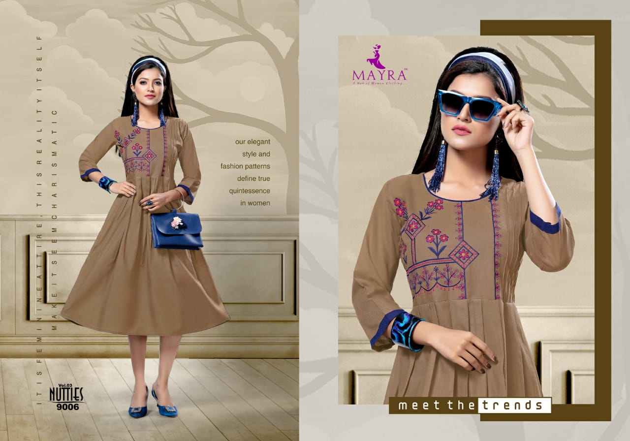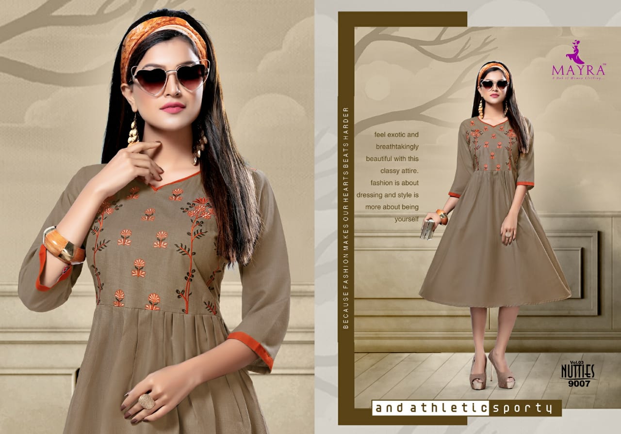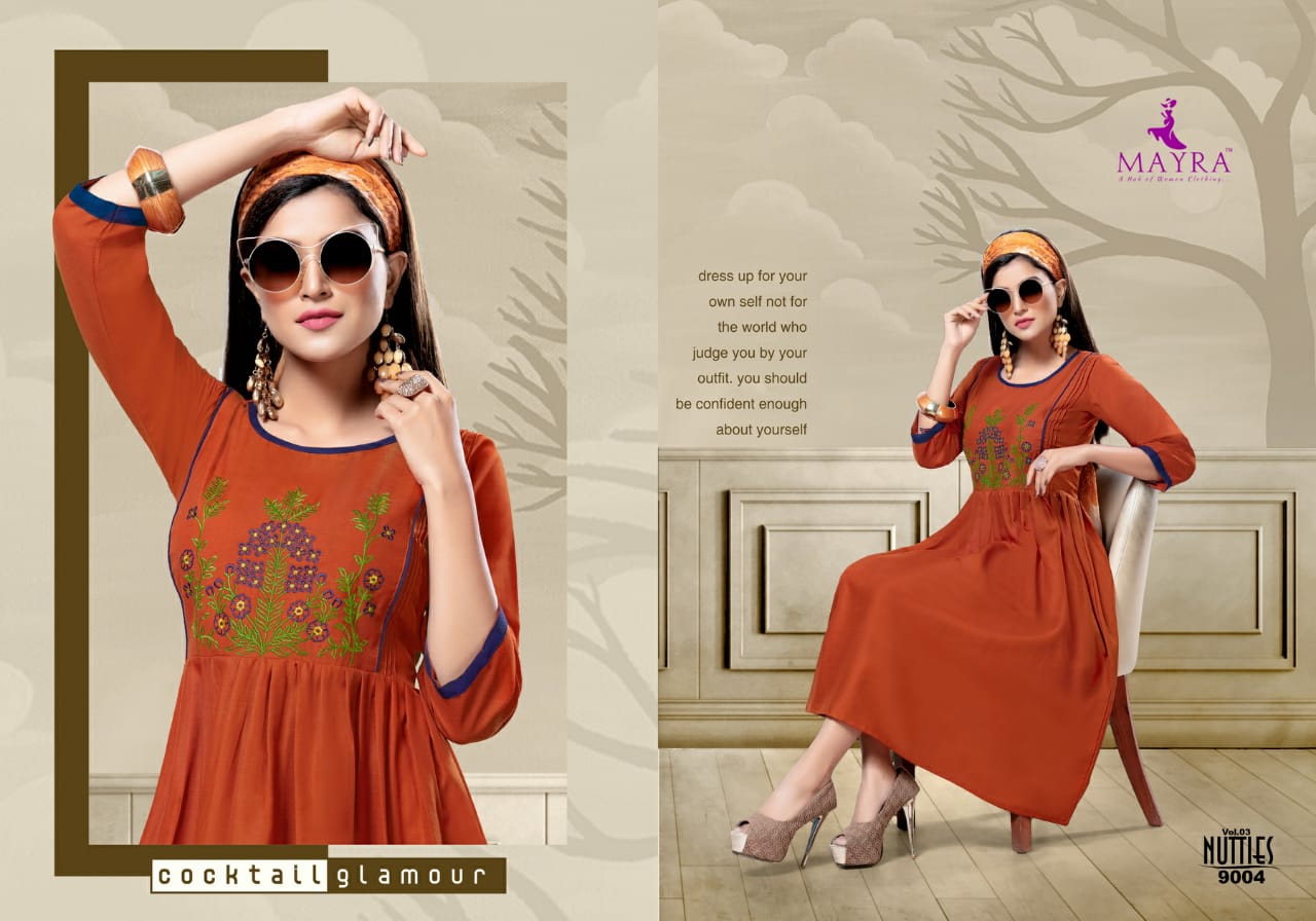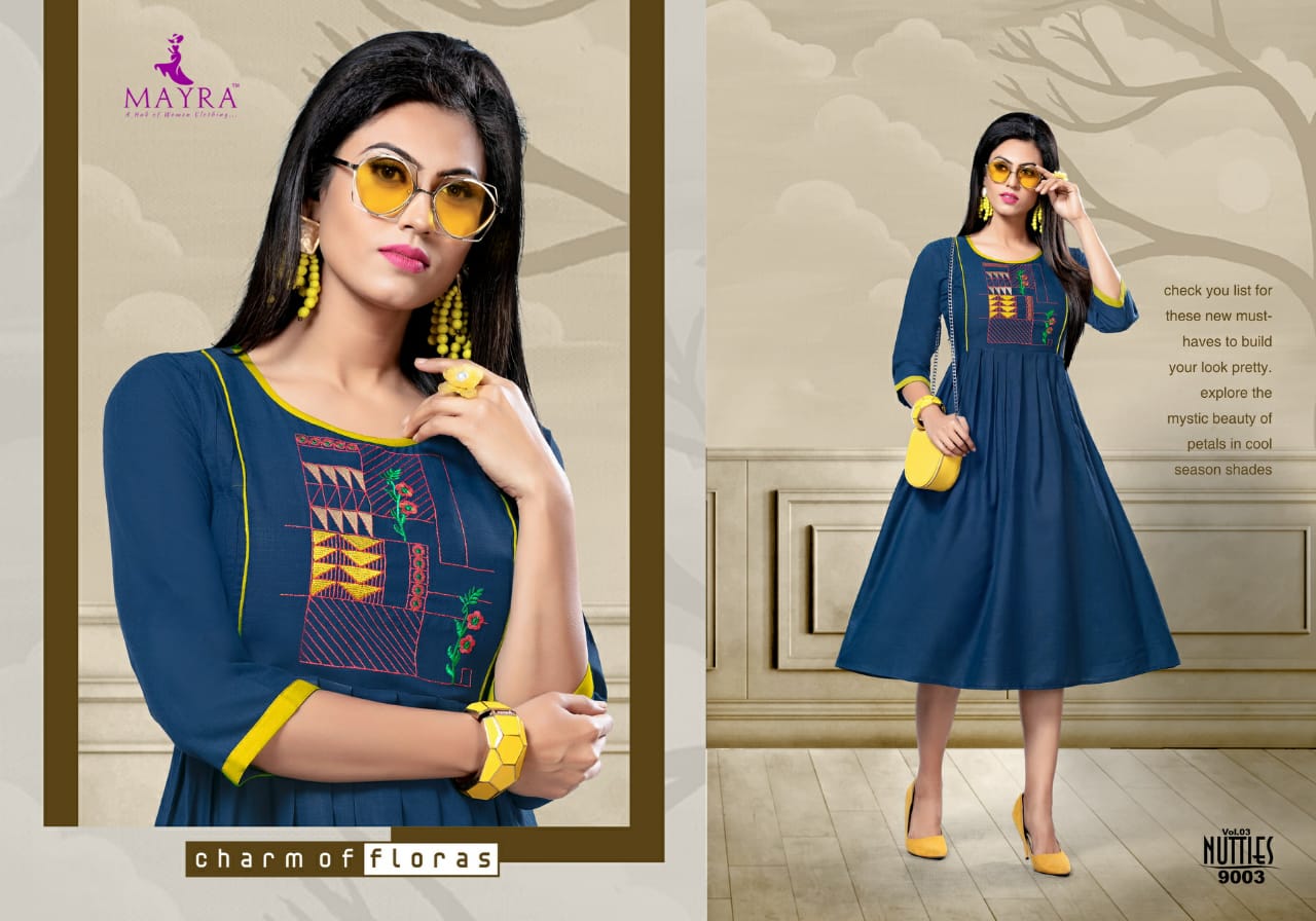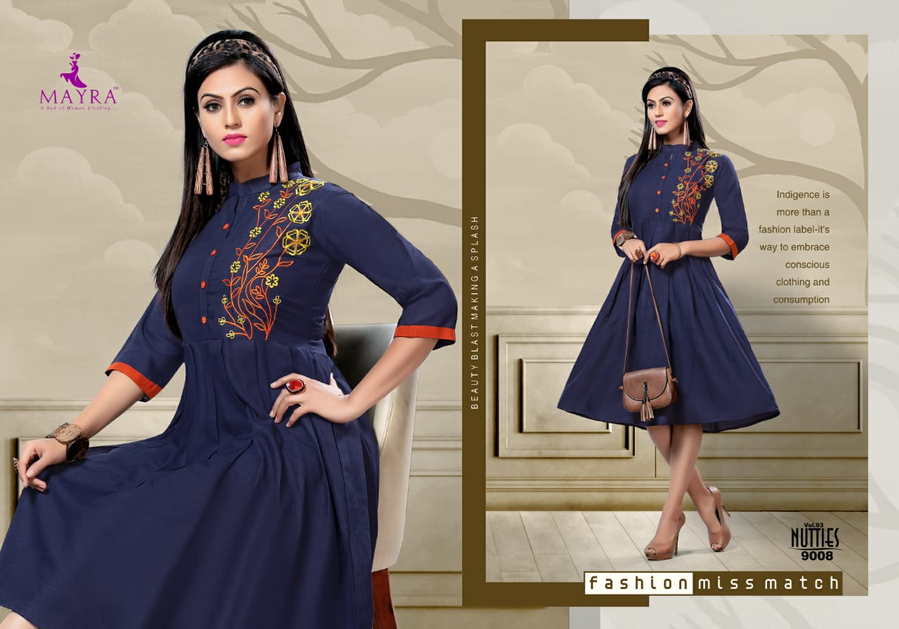 Mayra Nutties Cotton Slub Regular Wear Anarkali Style9001-9008 Series Kurti Collection