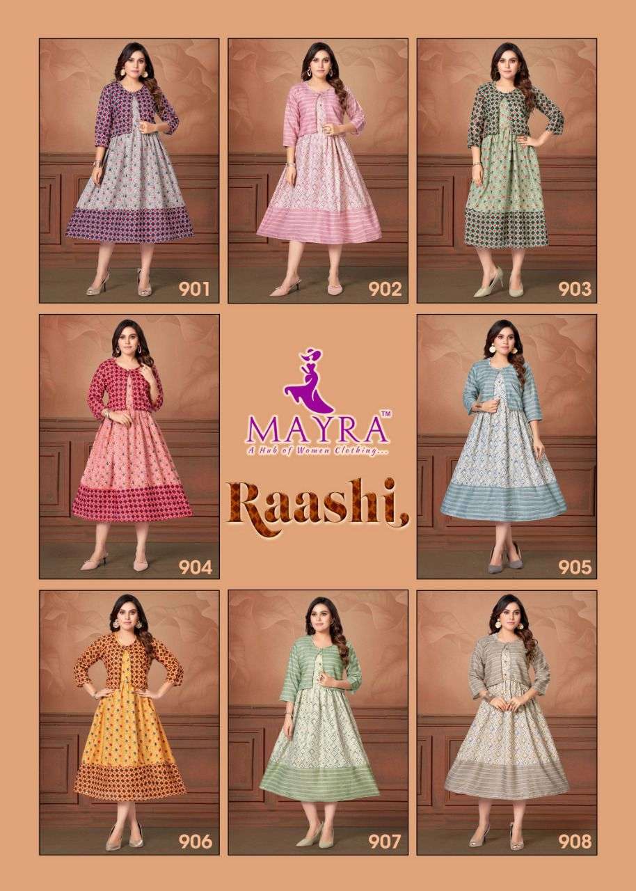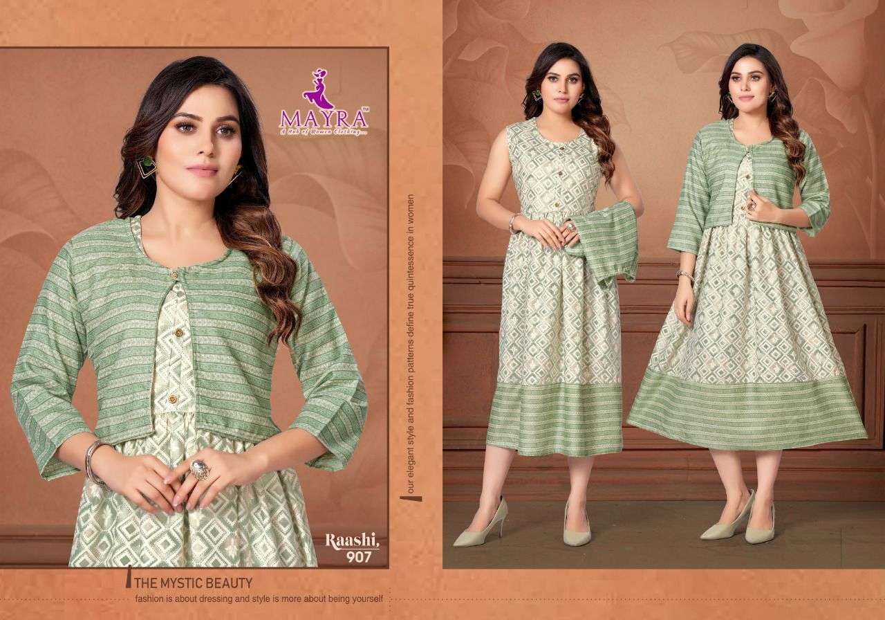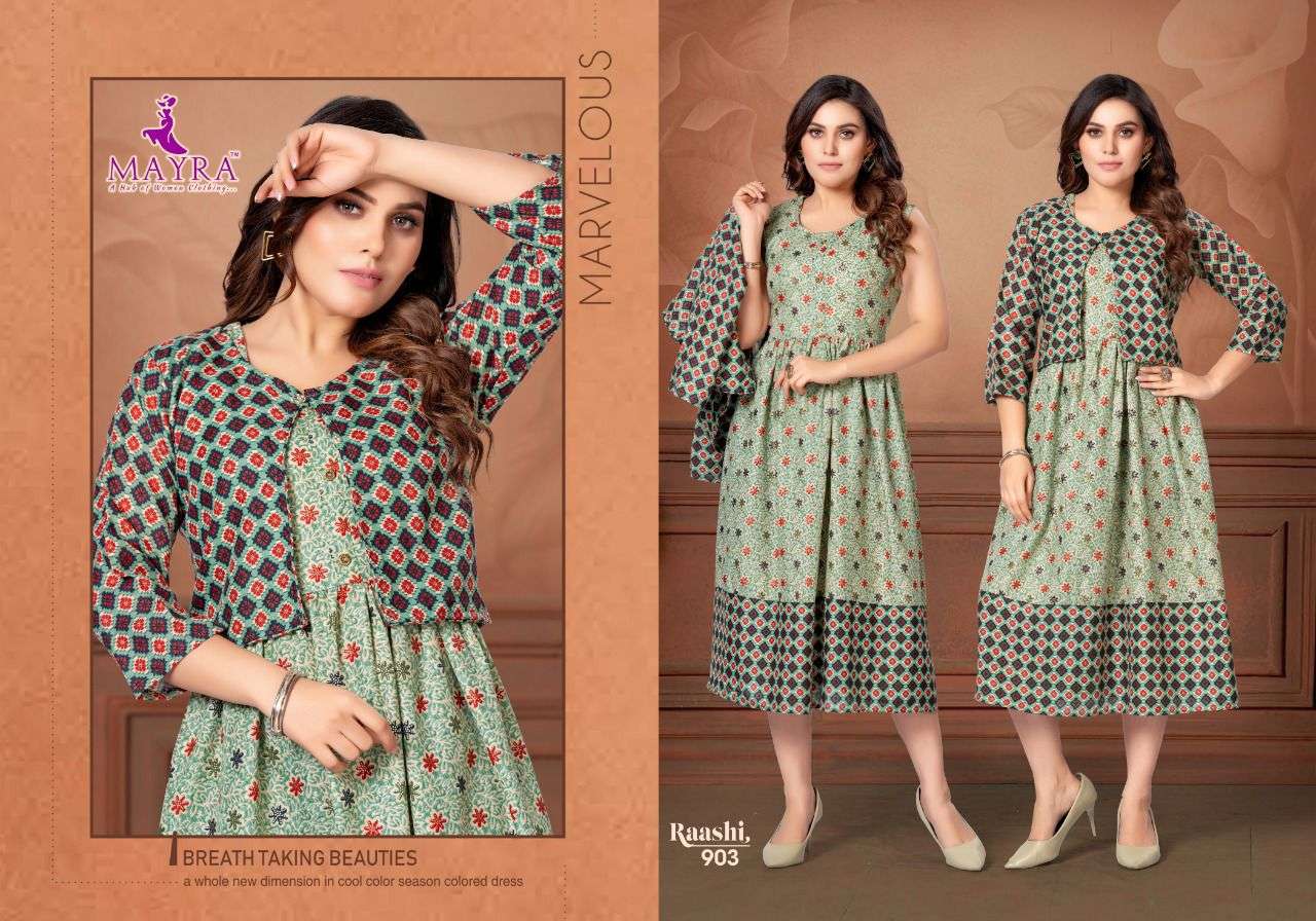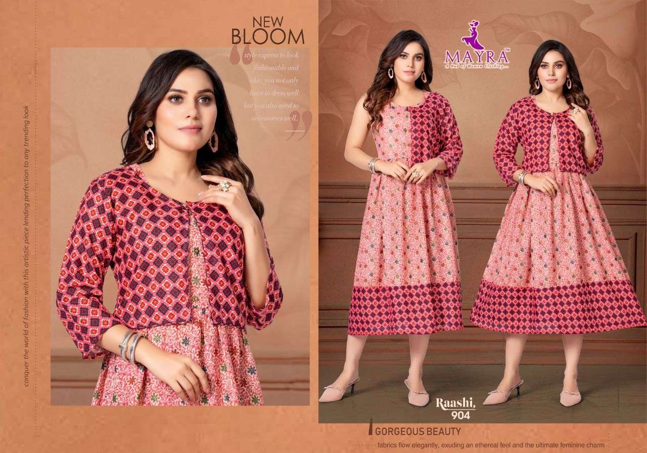 MAYRA RAASHI Rayon capsul foil print With separate capsul print Jacket KURTI CATALOG WHOLESALER BEST RATE