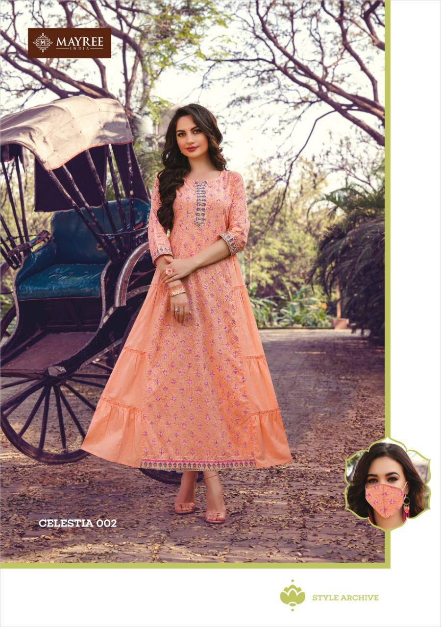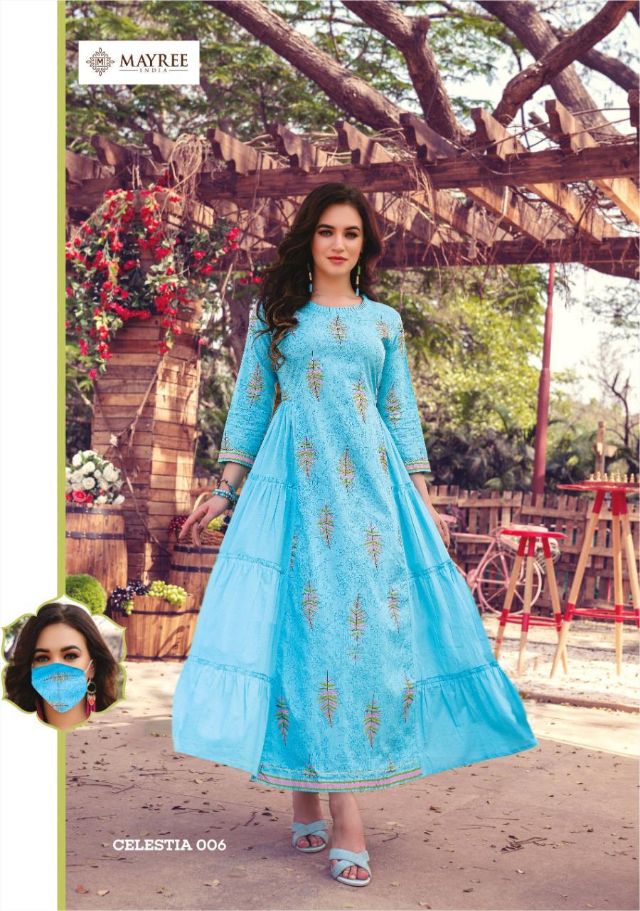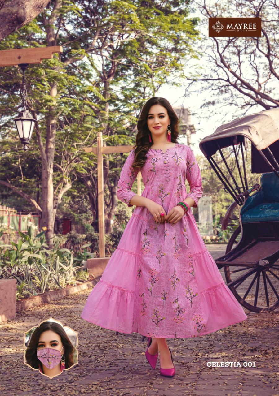 Mayree India Present Celestia Cotton Mal Gown Style Kurti With Three Layer Mask