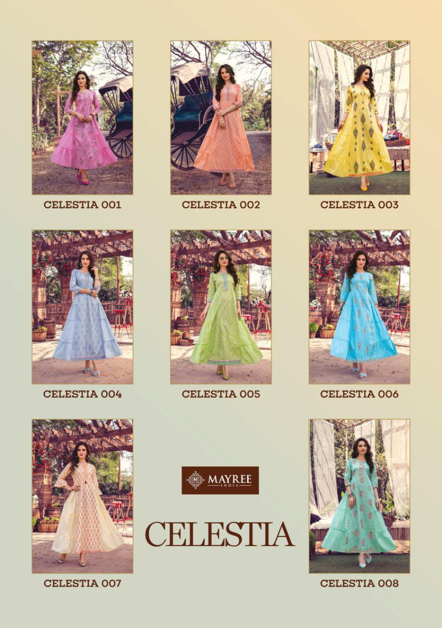 ⭐MAYREE-INDIA⭐ The Test of Festival Collection Catalogue Name- New series CELESTIA ✨Details Fabrics :- Cotton mal with Hand mannual work MASK:- Three layer printed heavy mask attach Size :- L(20) XL(21) XXL(22) Rate - 625 per Pcs Set to set. GST 5 Percent Extra. Delivery soon ☣Designs :- 8pcs |