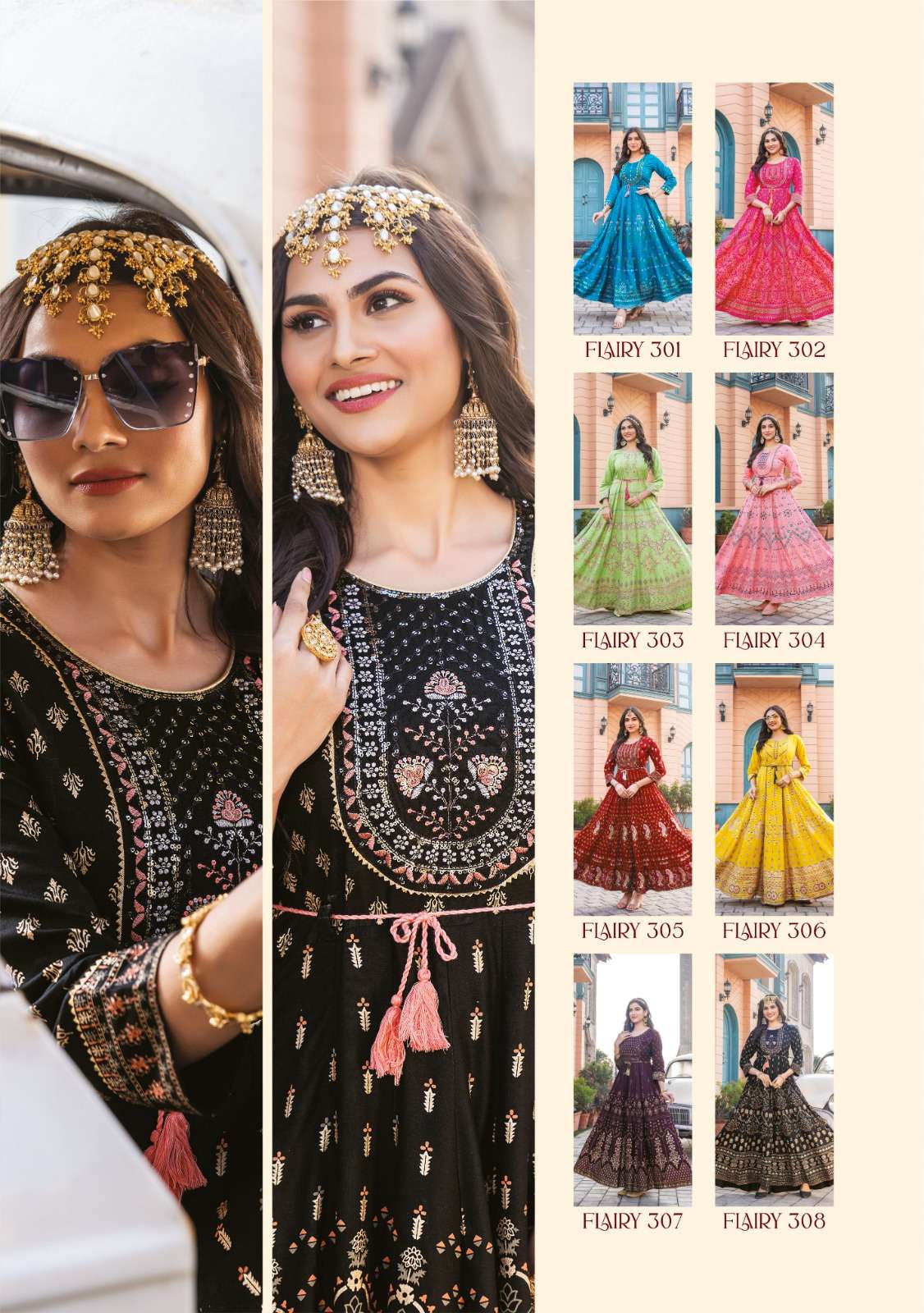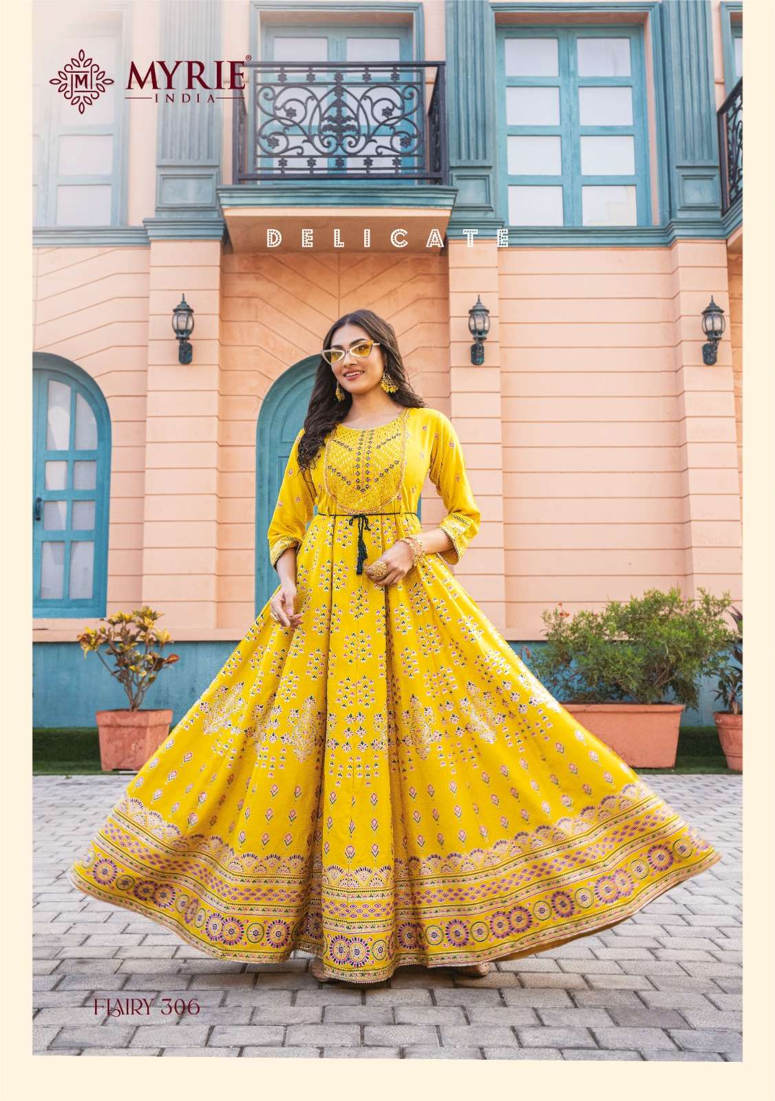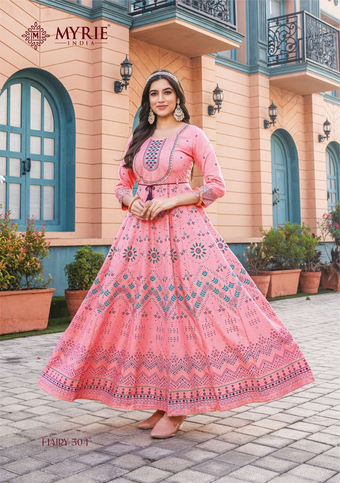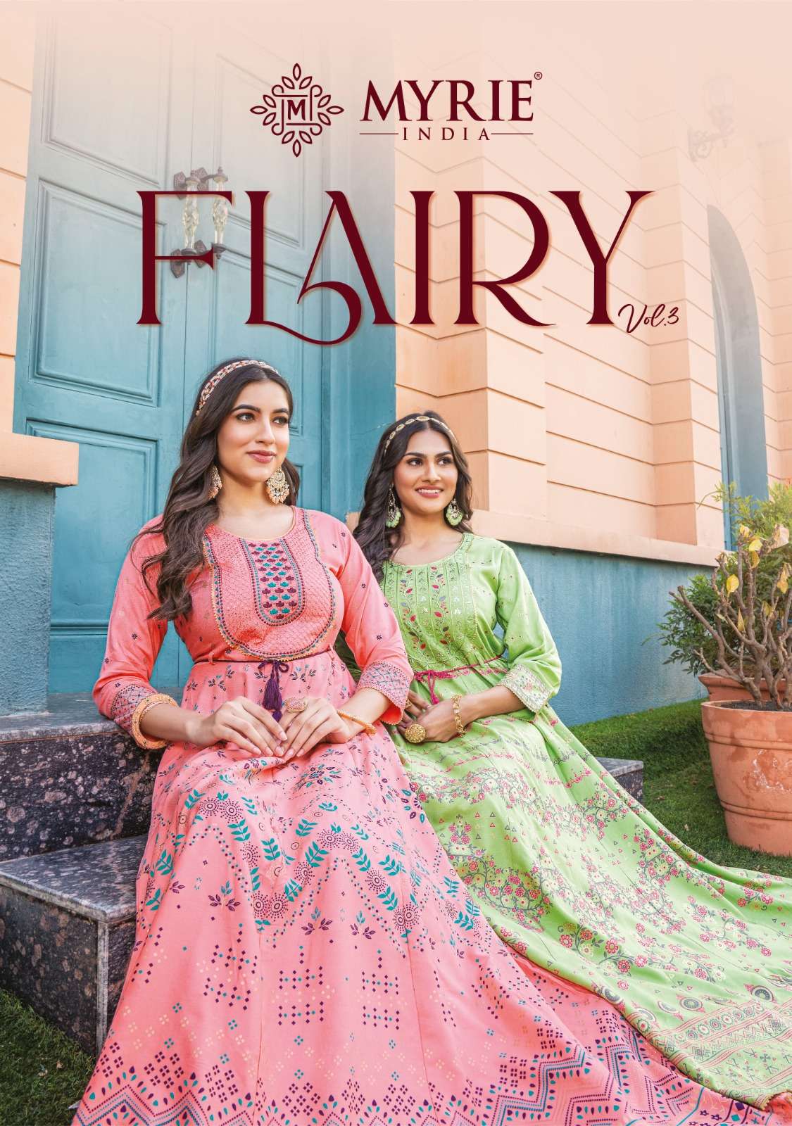 mayree india present flairy vol 3 designer rayon printed fancy long gowns collection