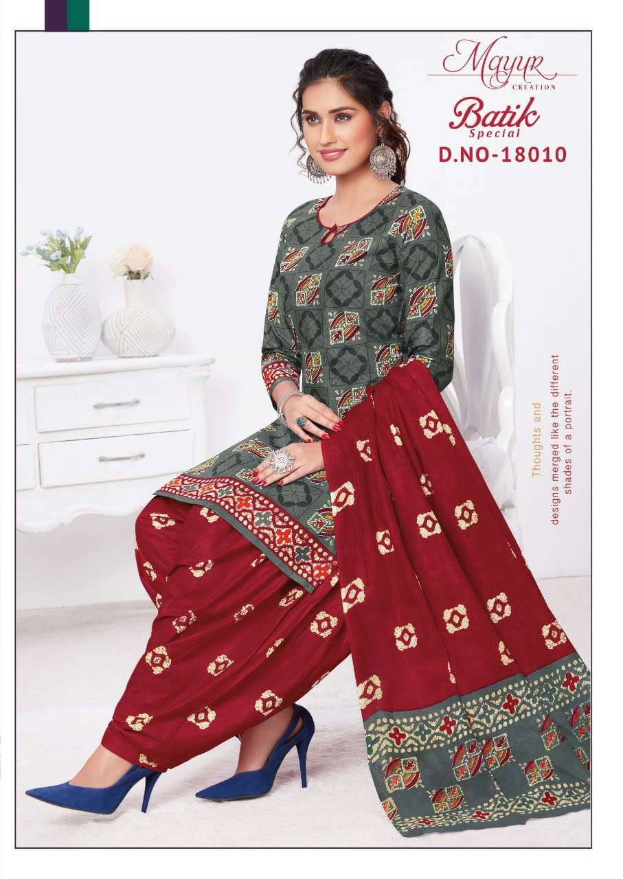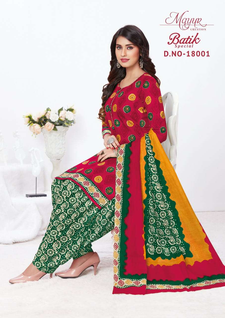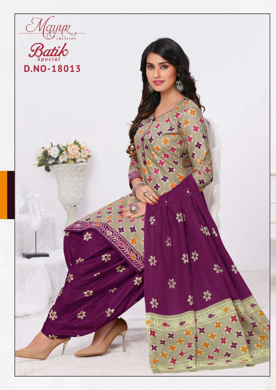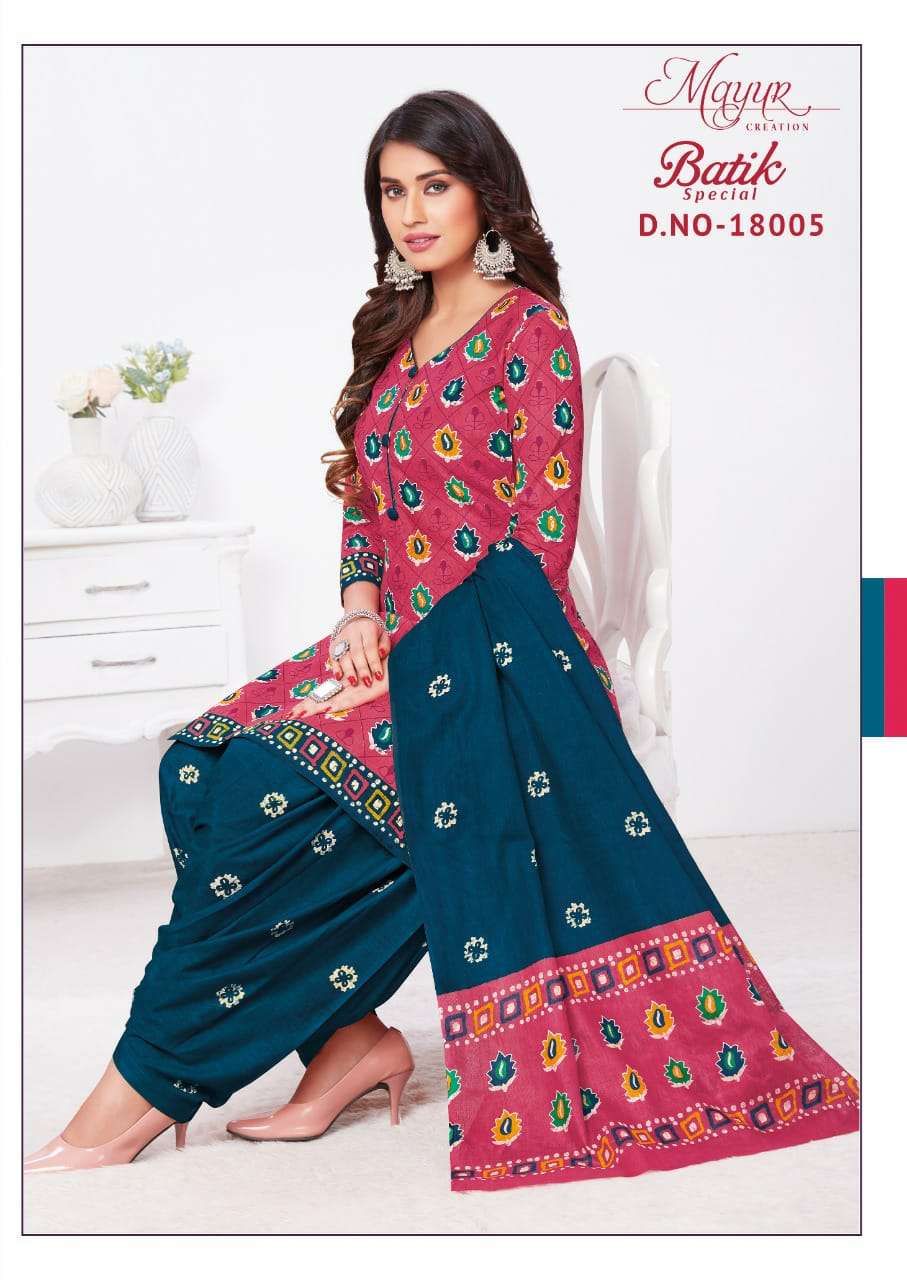 MAYUR CREATION New launch BATIK SPECIAL VOL-18 15 pcs Catalog RATE ~ 350/- Batik Printed Ladies Chudidar Materials Wholesaler in Surat Market |