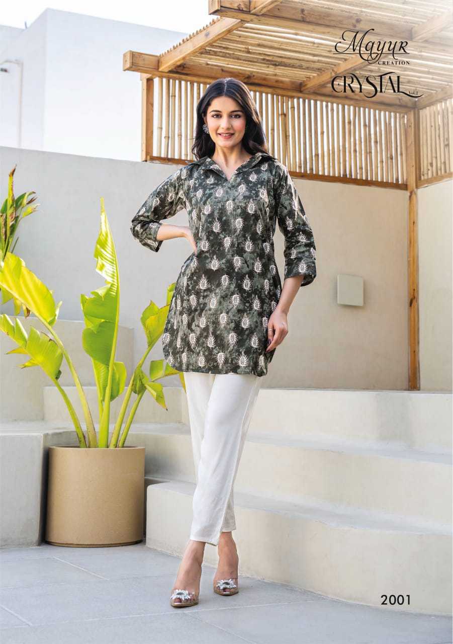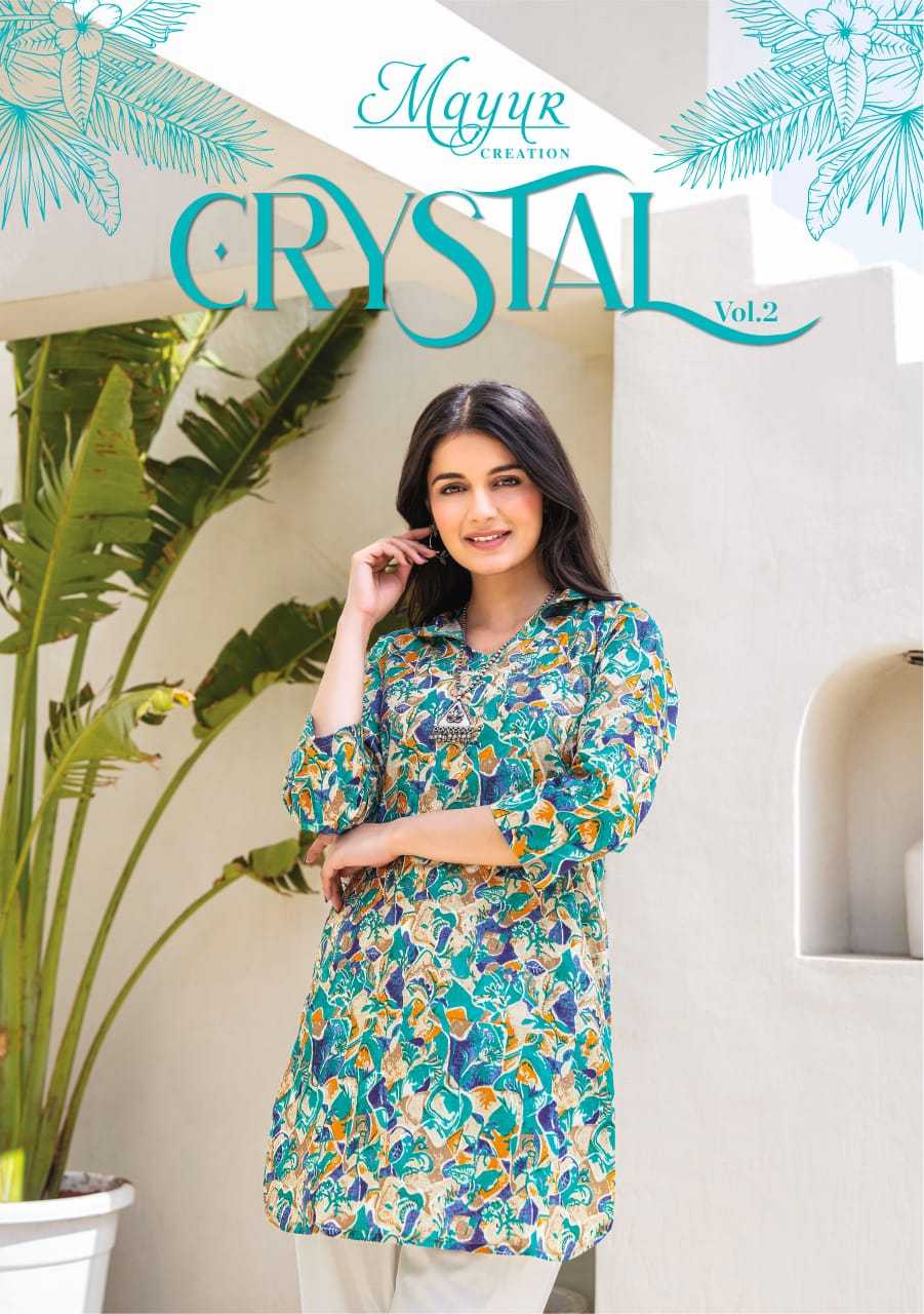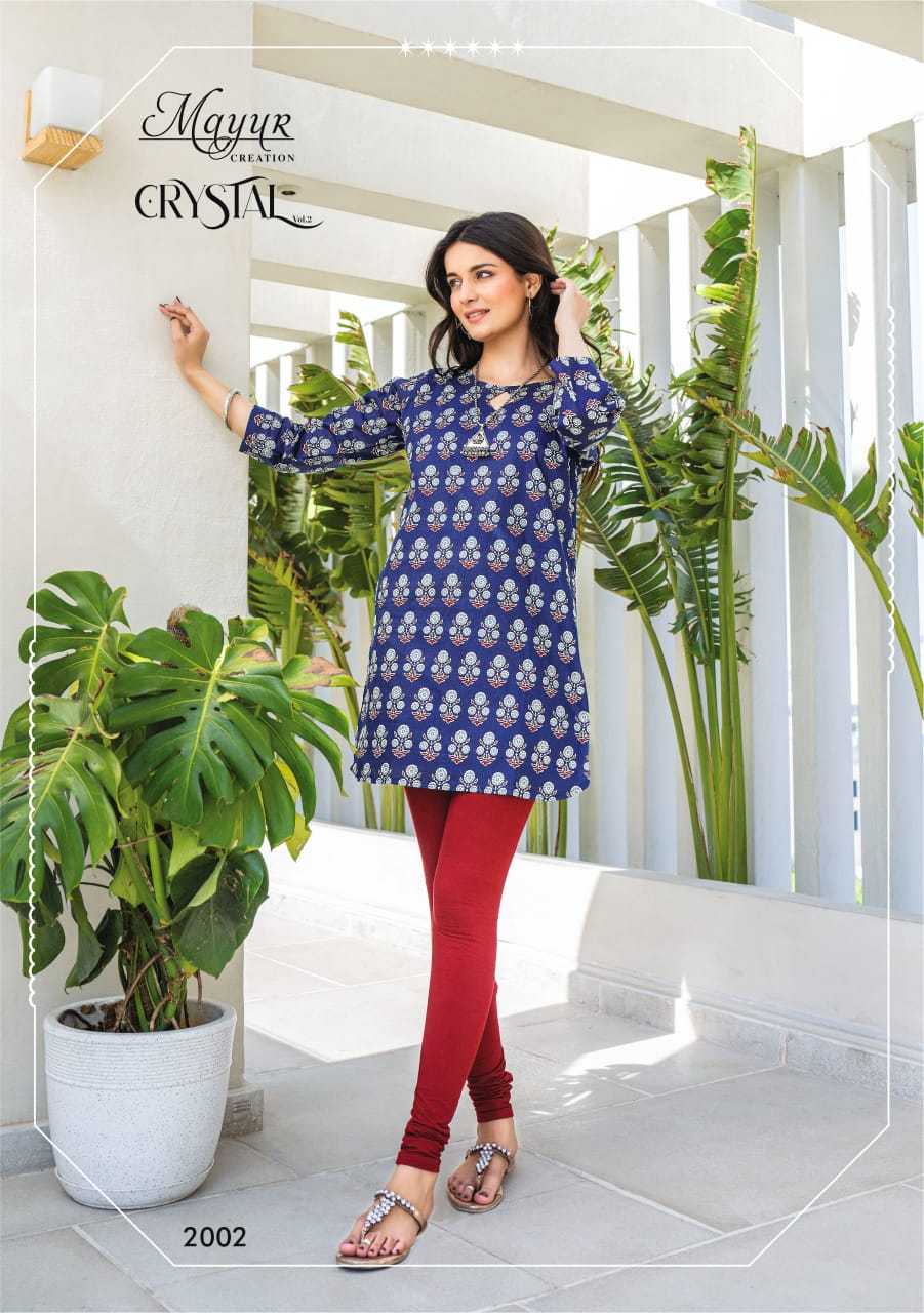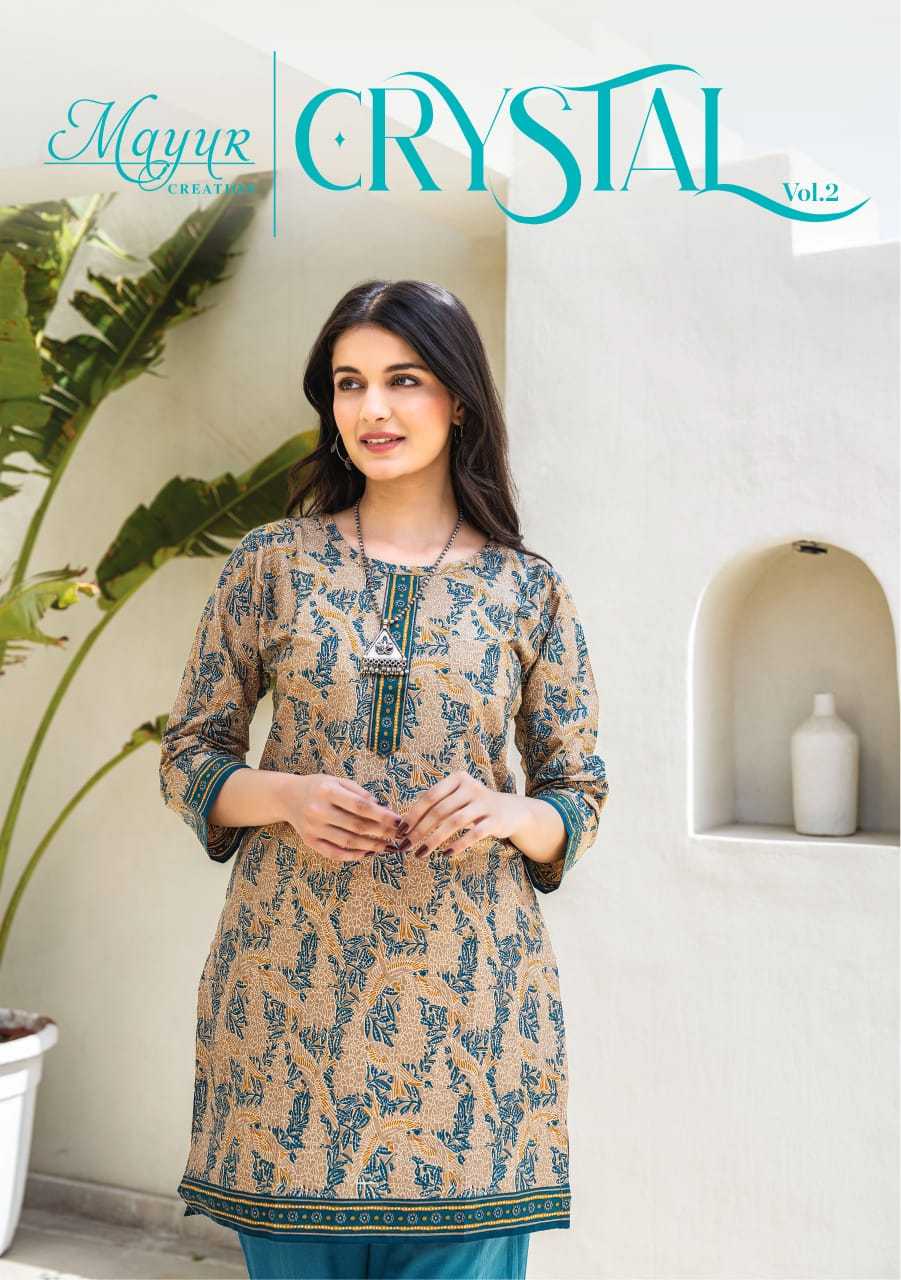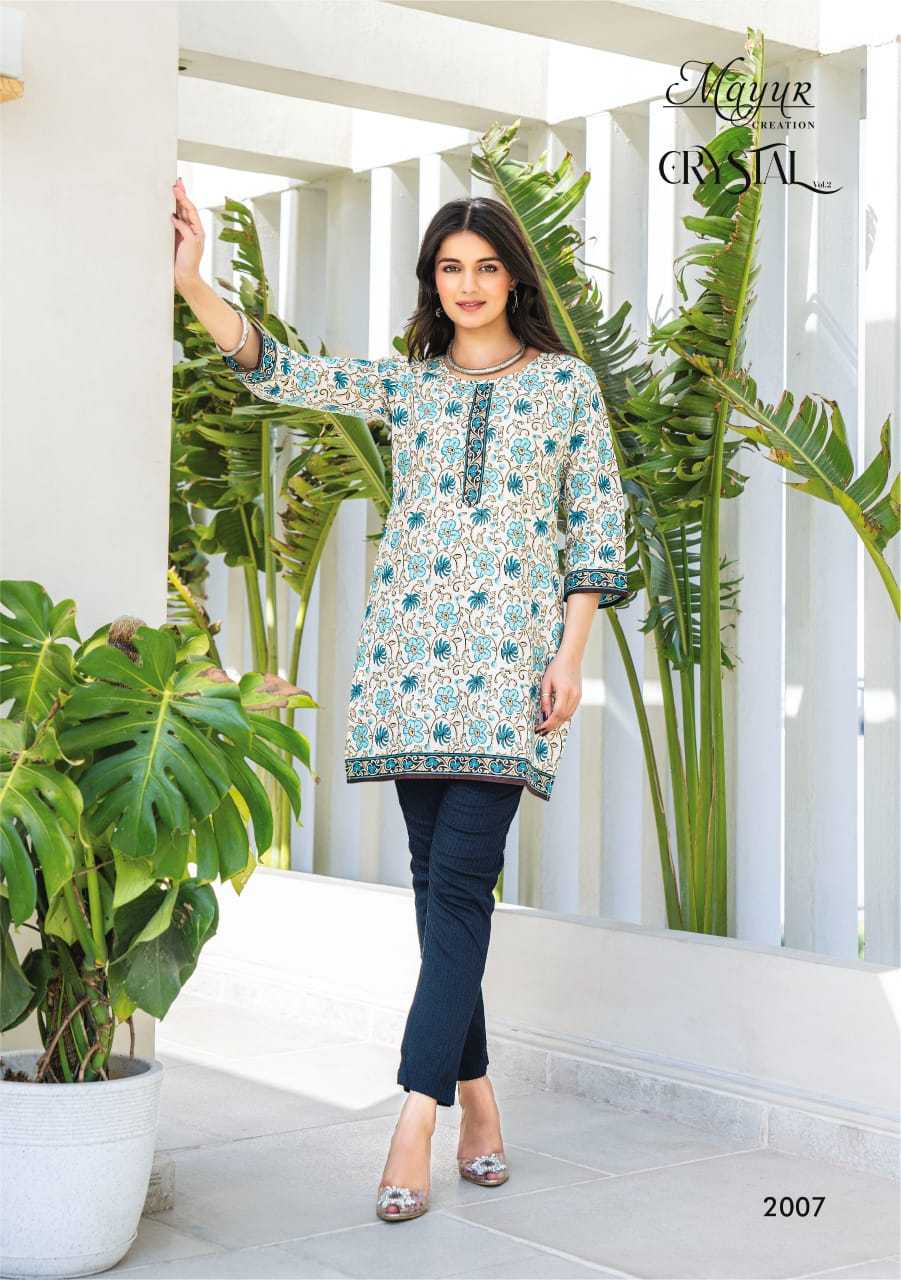 mayur creation crystal vol 2 new trendy outfit poplin cotton full stitch short kurti